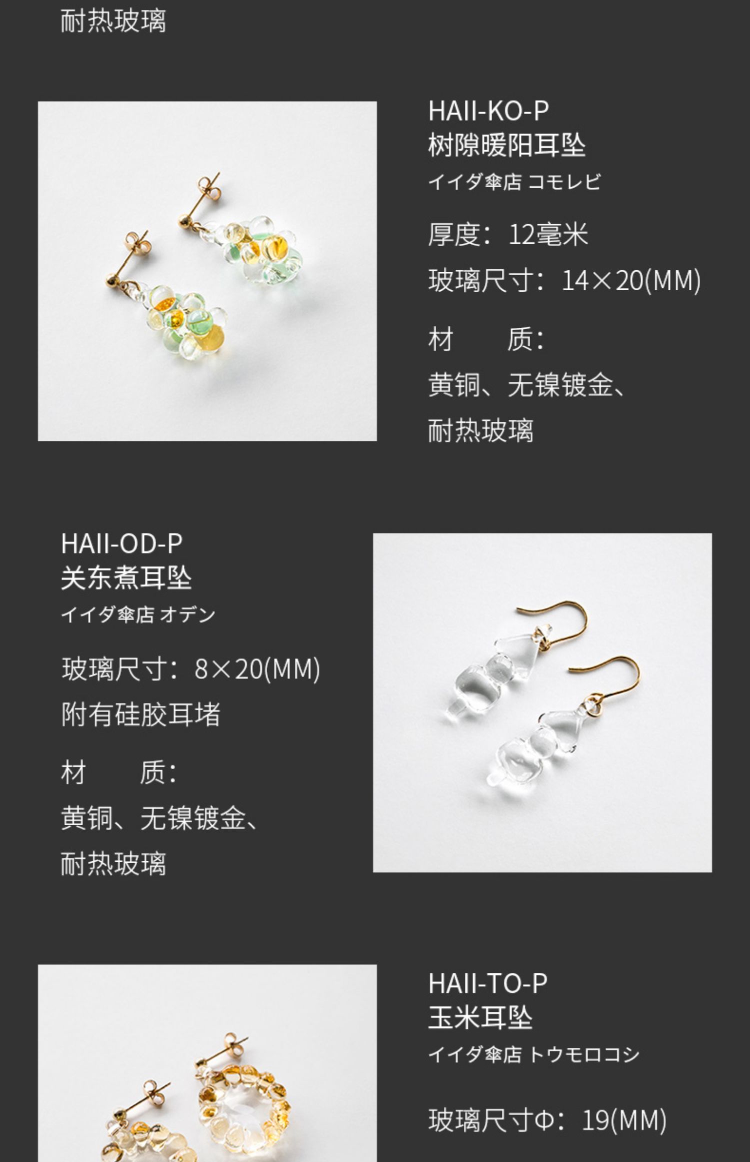 【HARIO】日本IIDA伞店联名系列手工玻璃耳饰耳环项链耳坠