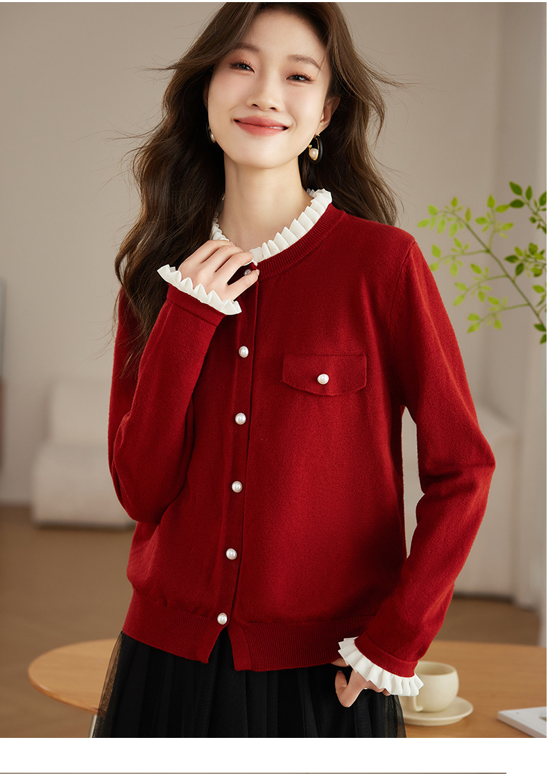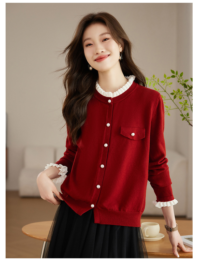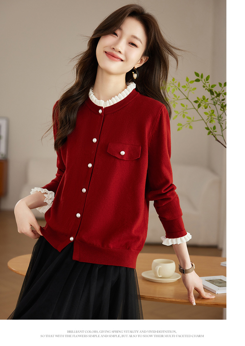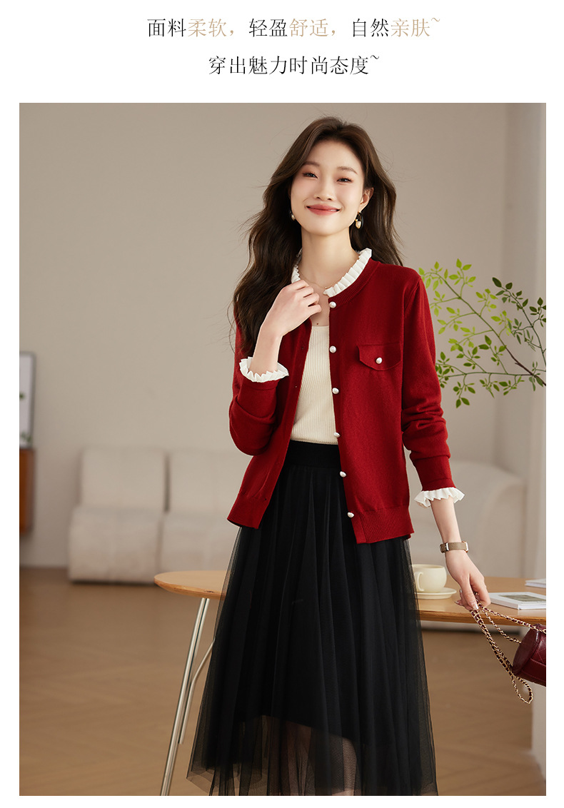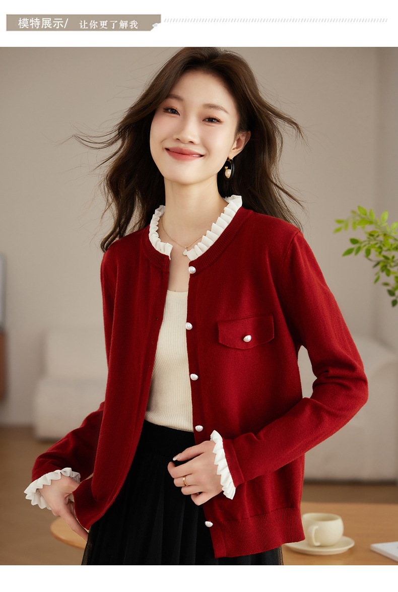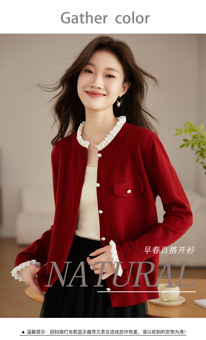CC-J483木耳边针织开衫女短款外套春秋2024新款春季红色毛衣洋气早秋外搭