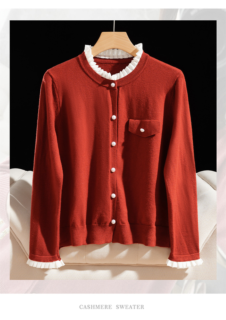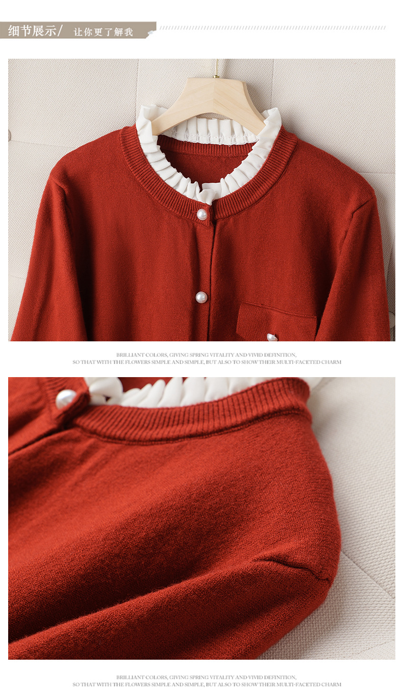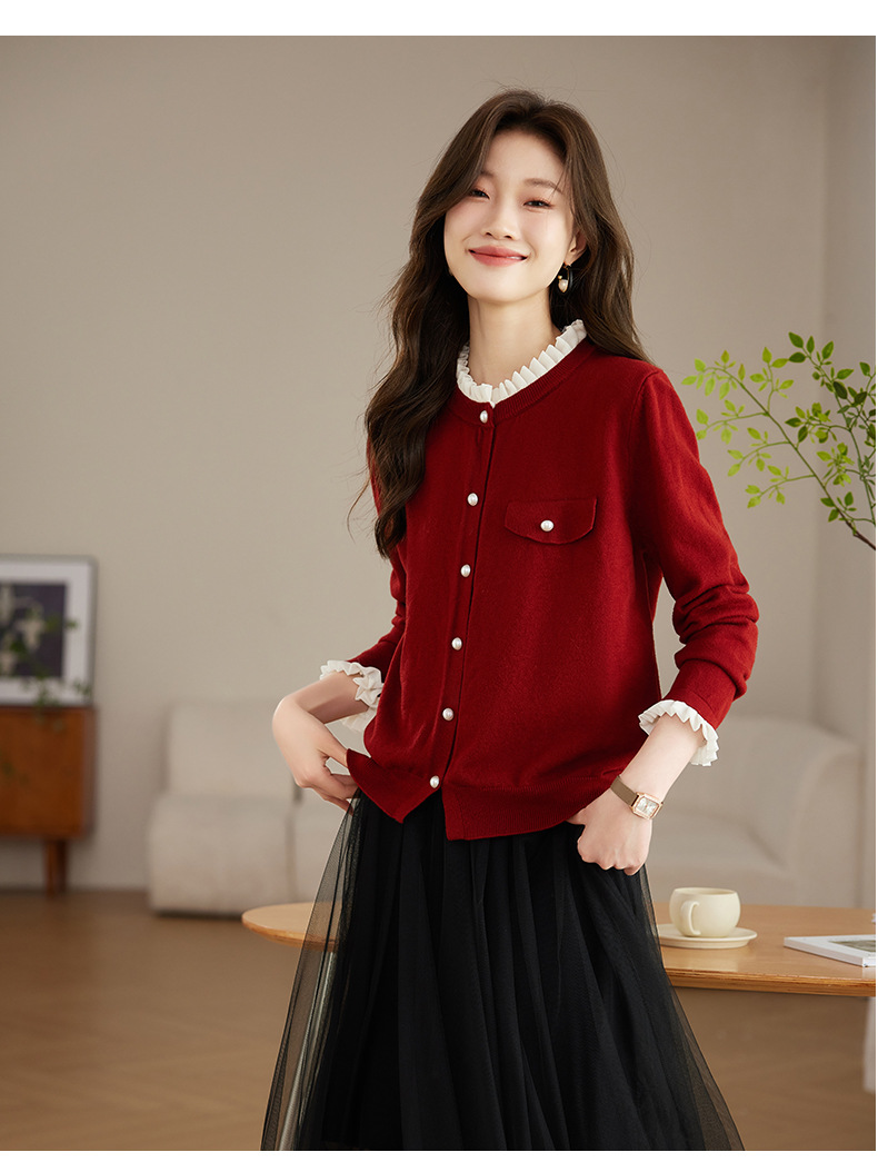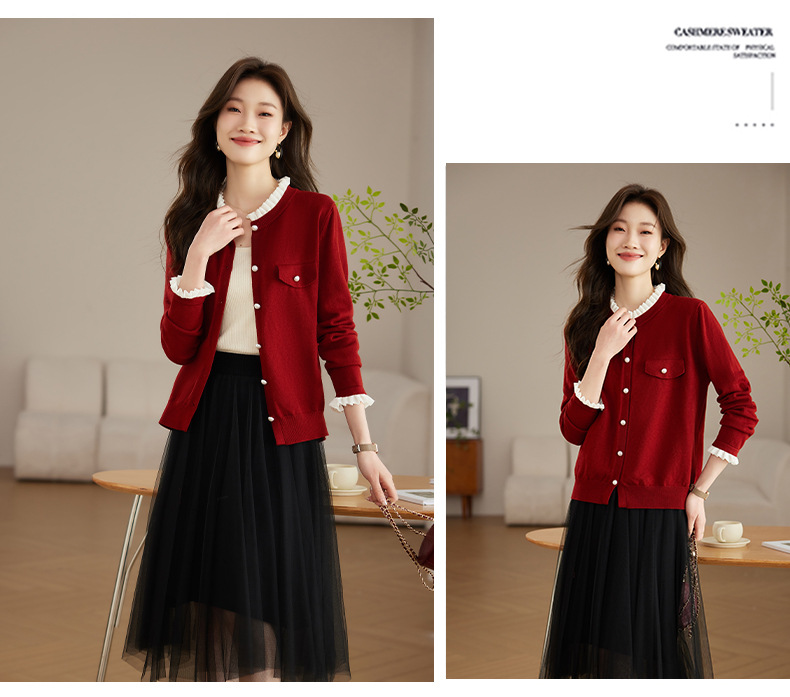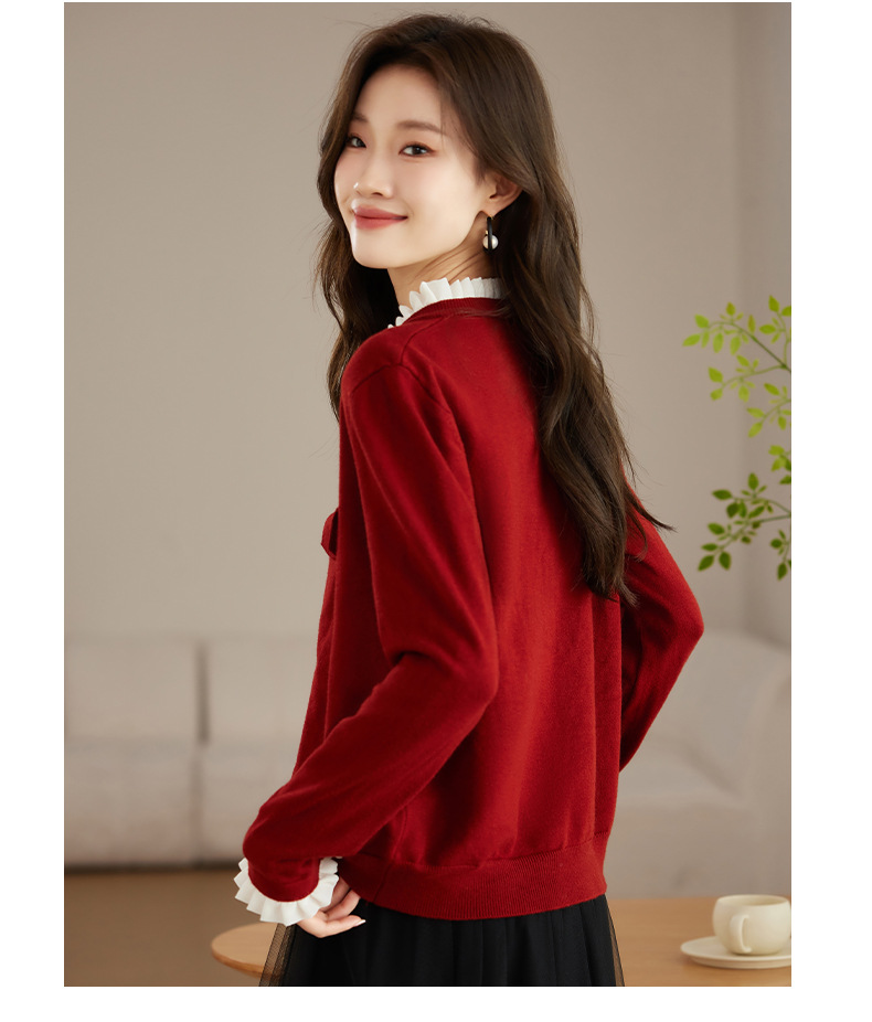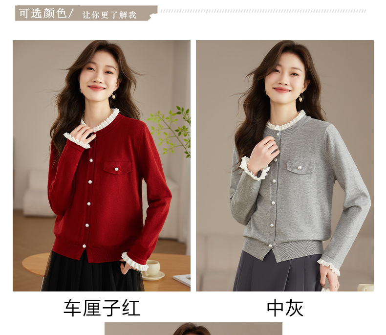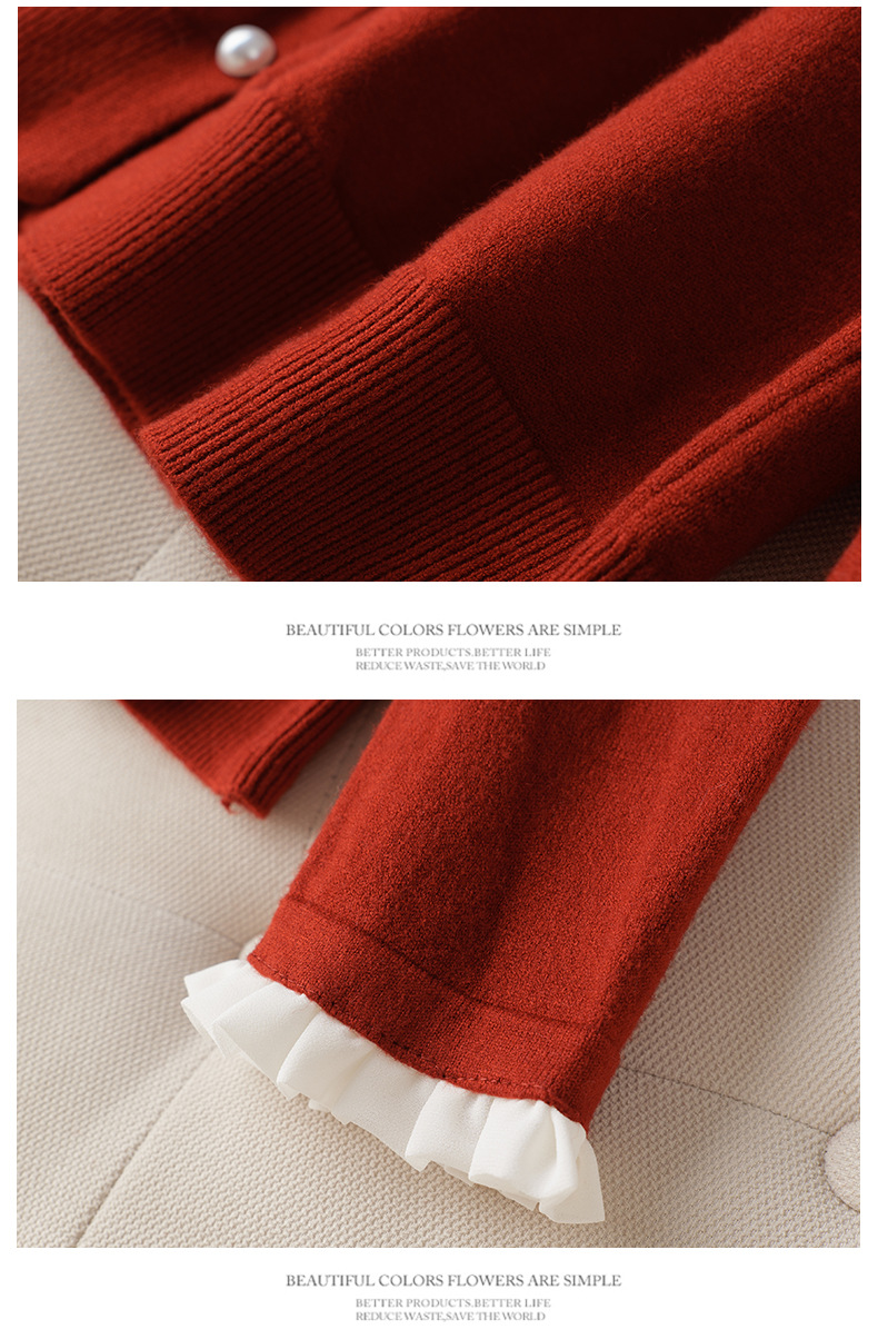 CC-J483木耳边针织开衫女短款外套春秋2024新款春季红色毛衣洋气早秋外搭