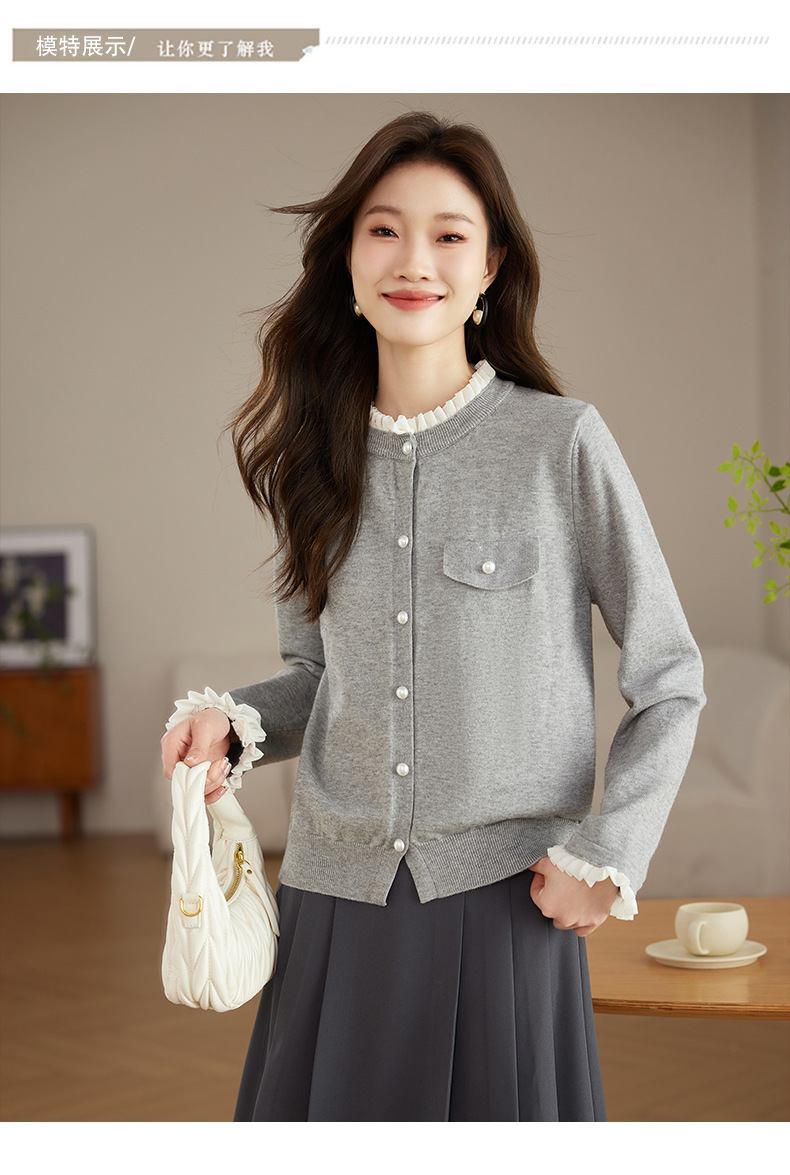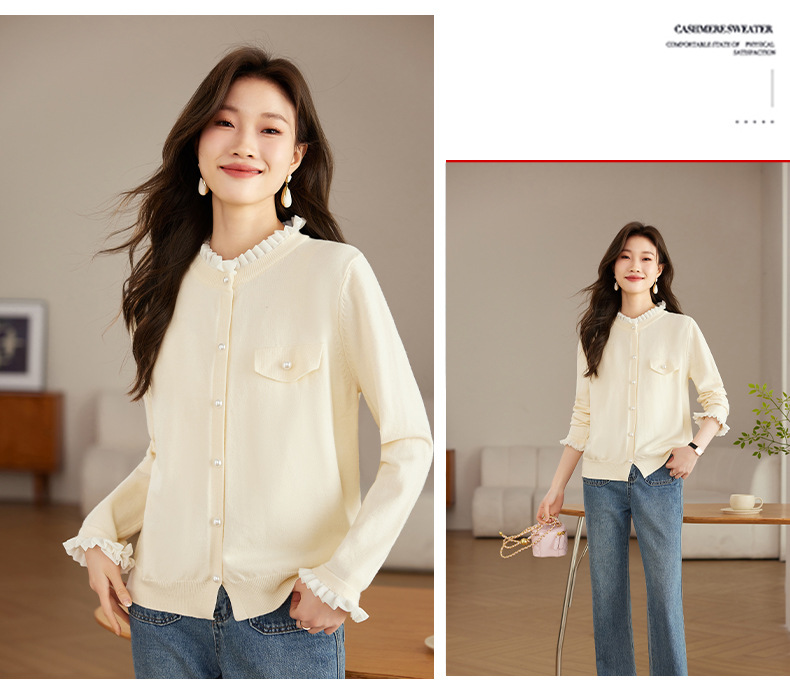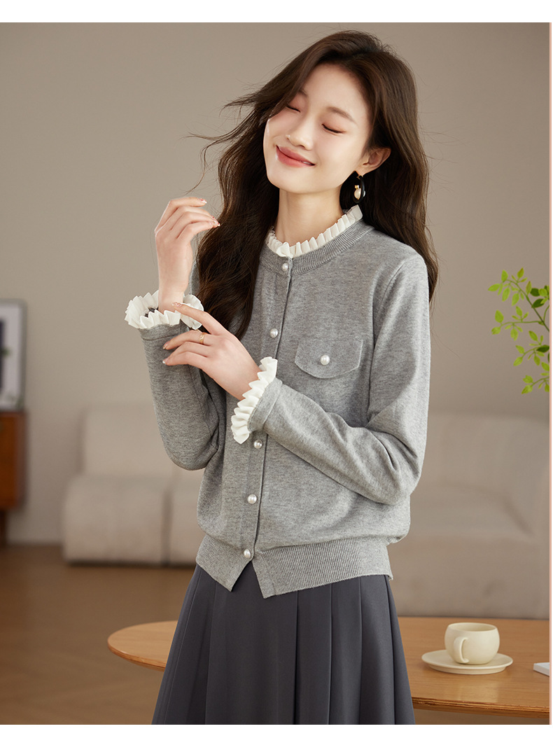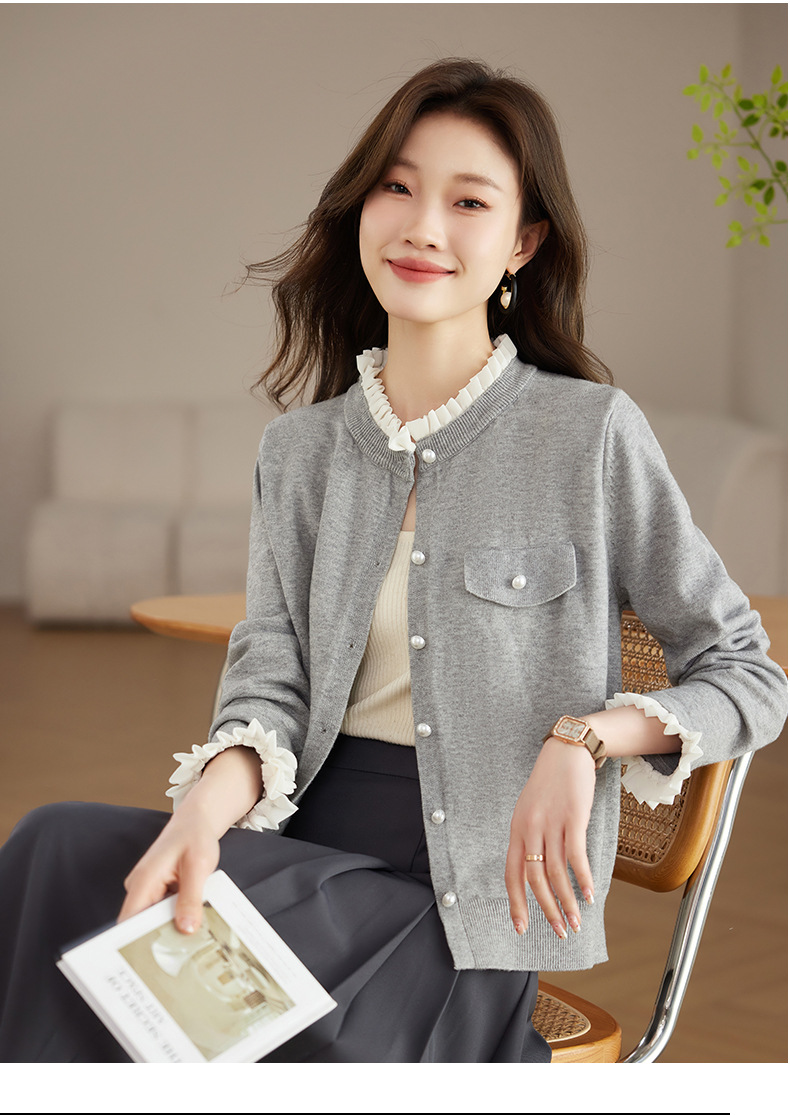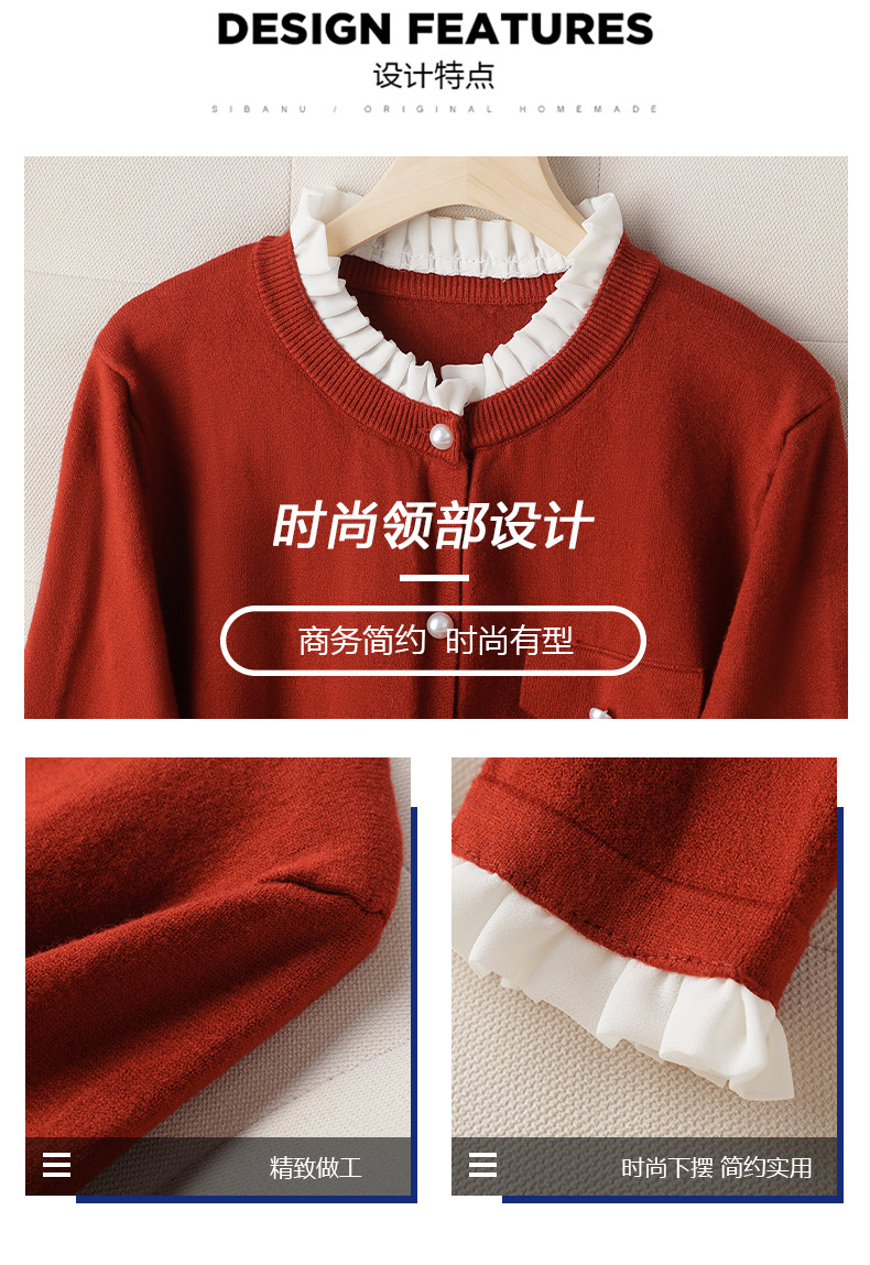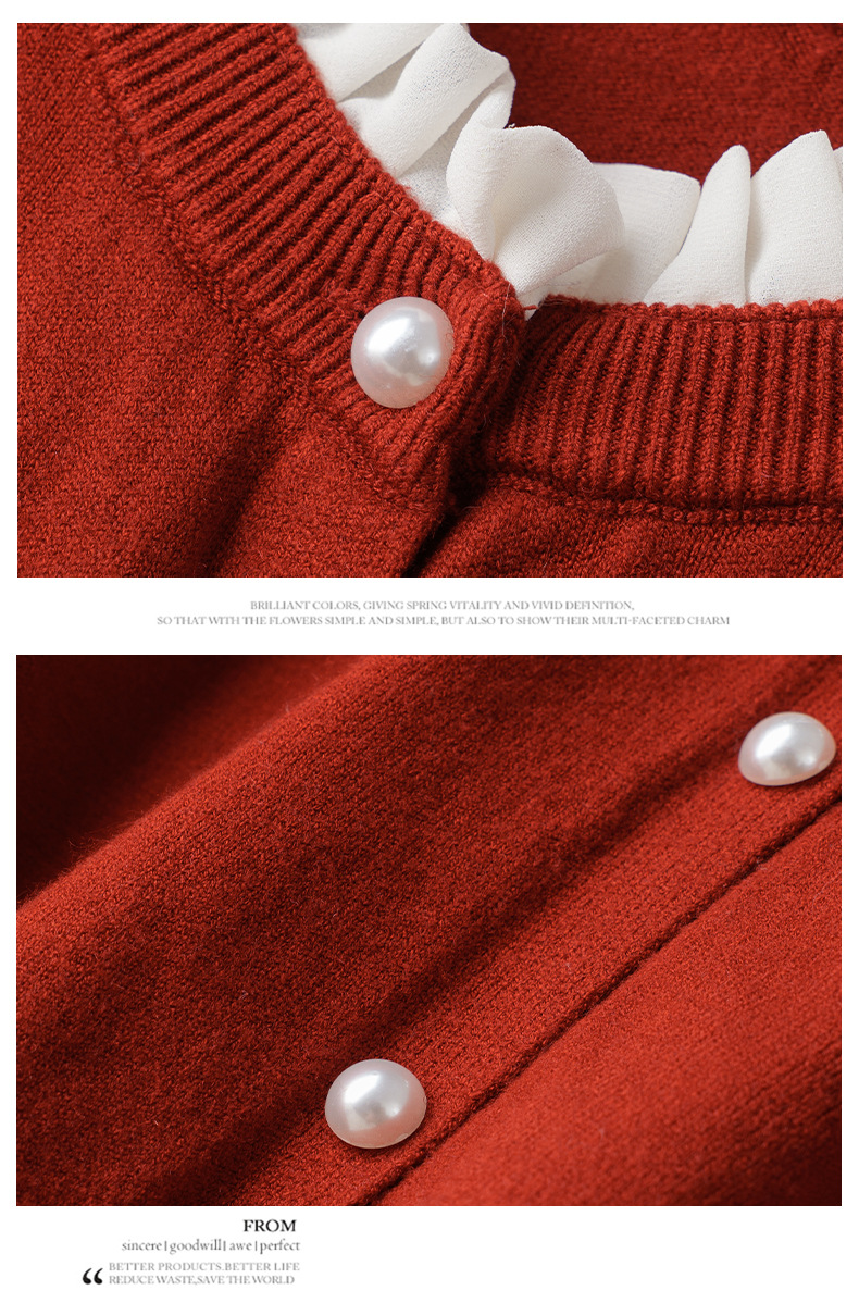 CC-J483木耳边针织开衫女短款外套春秋2024新款春季红色毛衣洋气早秋外搭