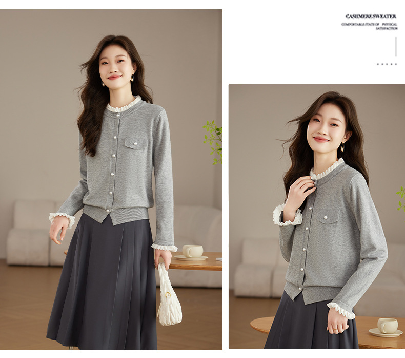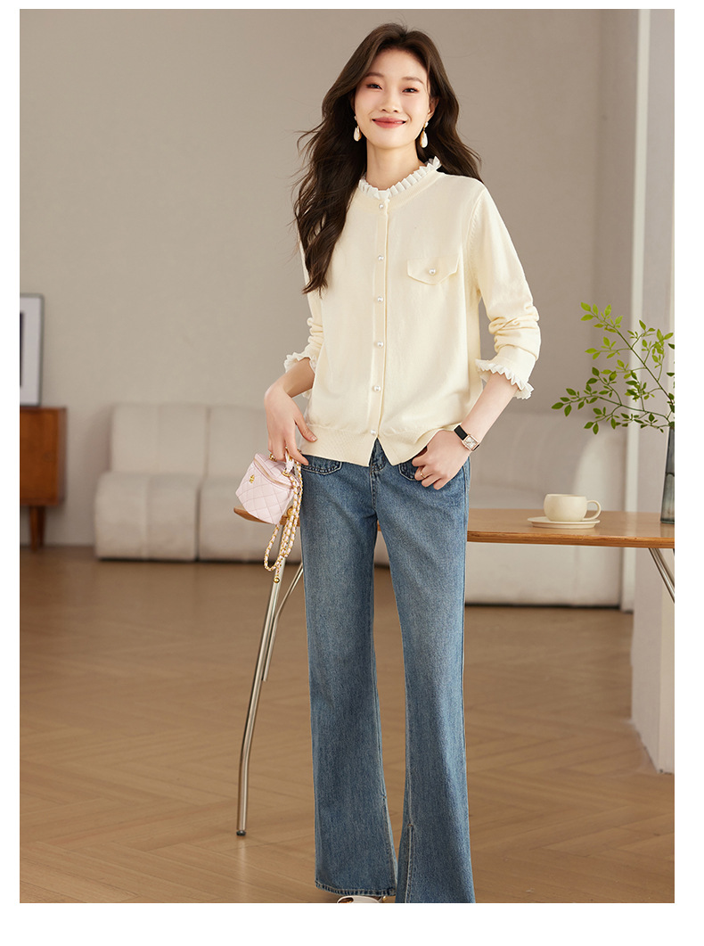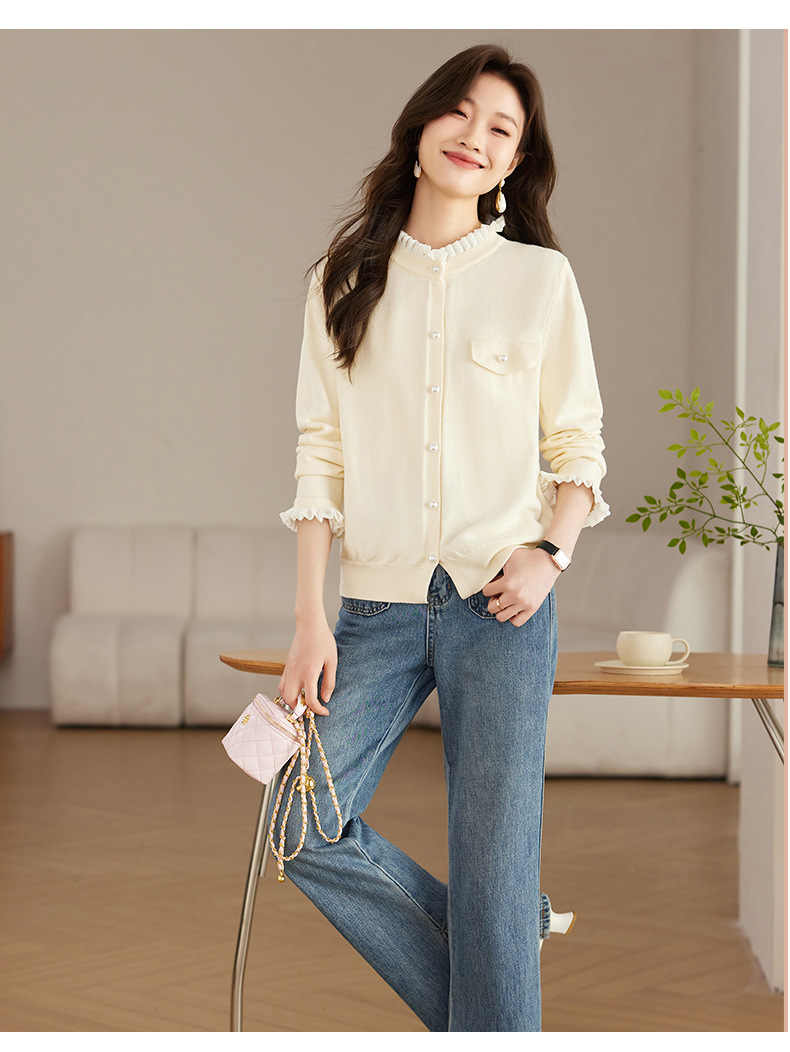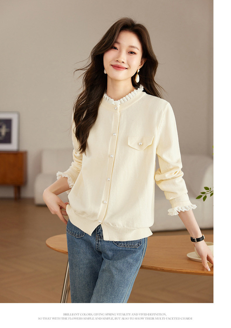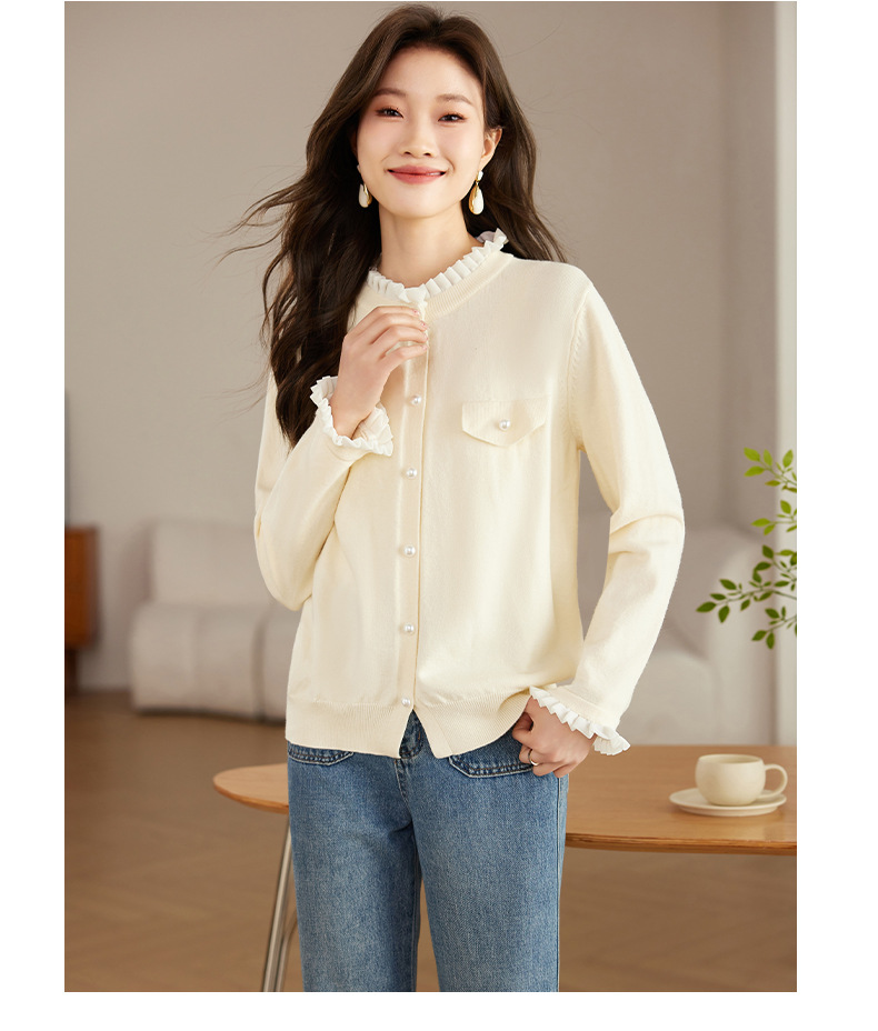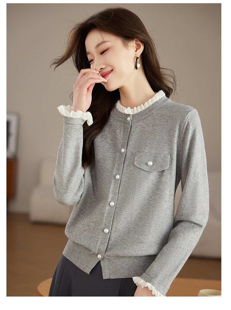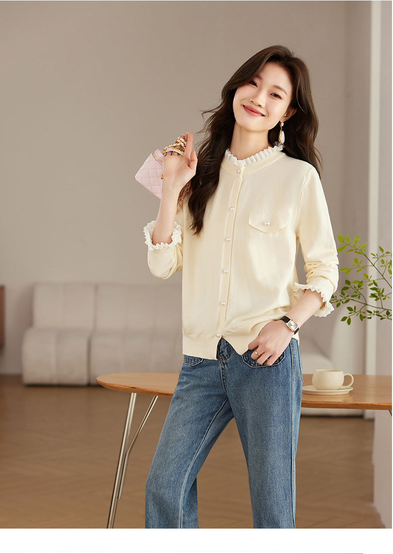 CC-J483木耳边针织开衫女短款外套春秋2024新款春季红色毛衣洋气早秋外搭