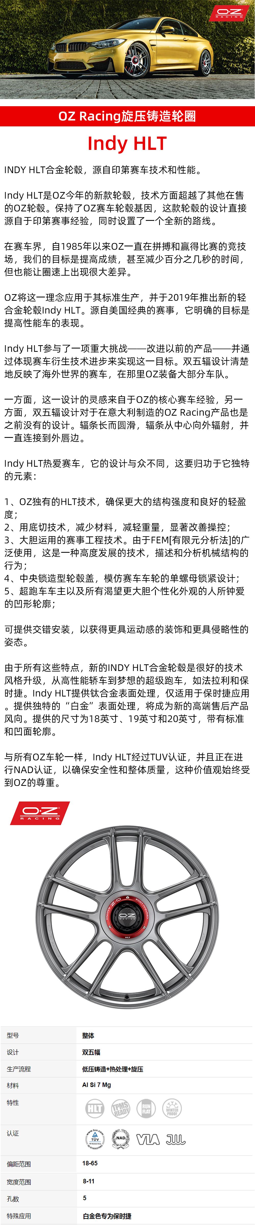 意大利进口OZ Racing旋压铸造 Indy HLT 18/19/20寸