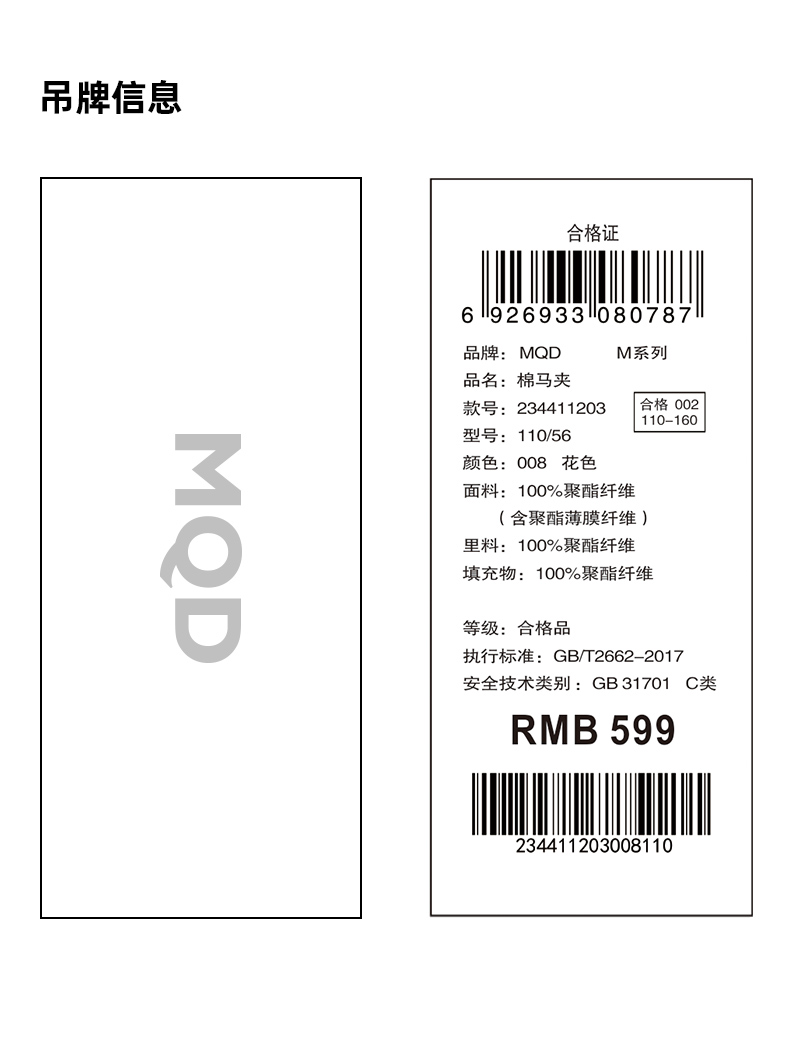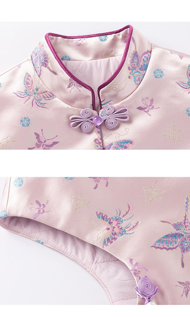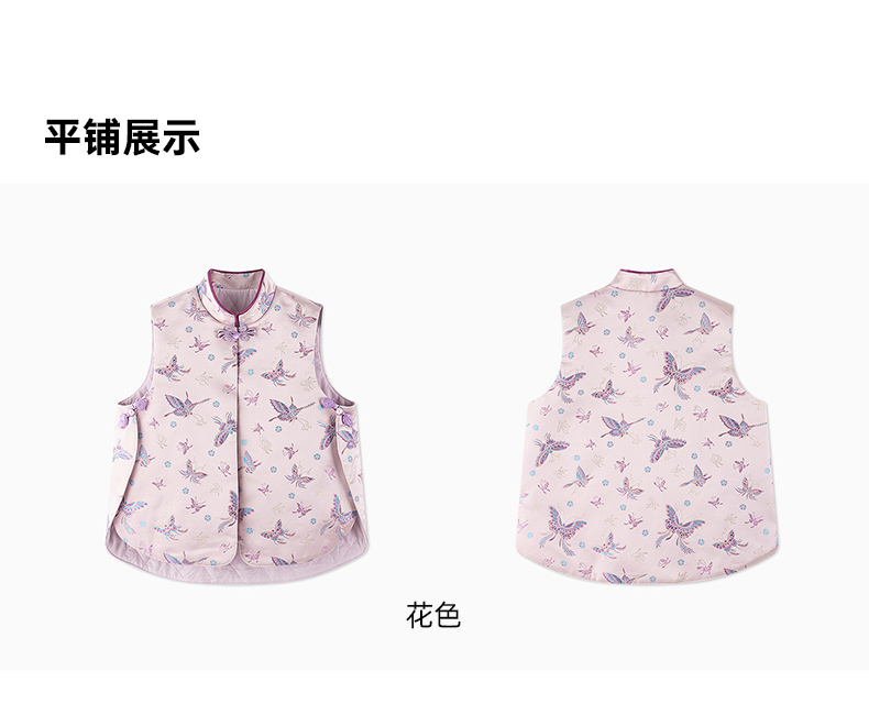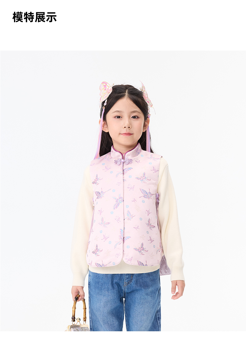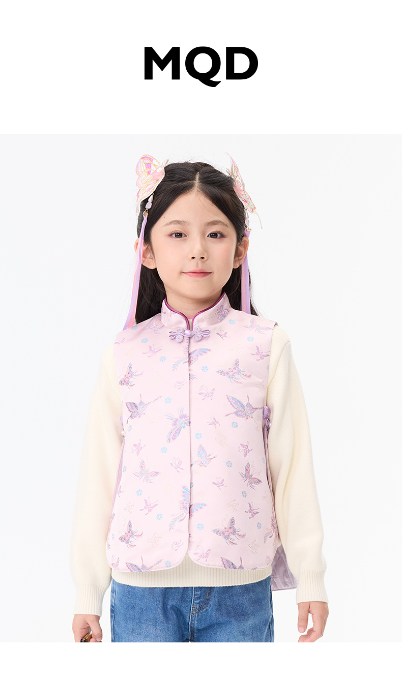 【秒1】【MQD】女童蝴蝶提花立领无袖棉马夹
