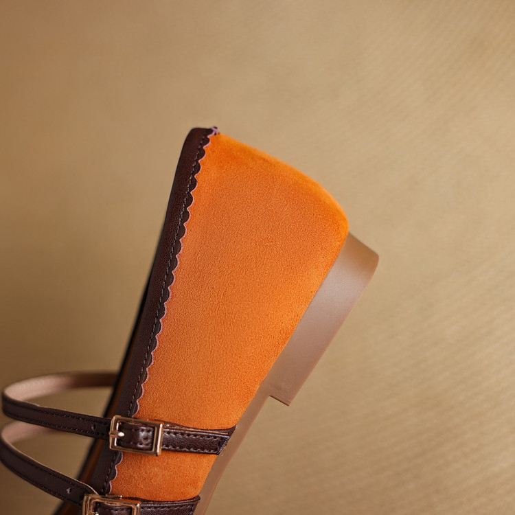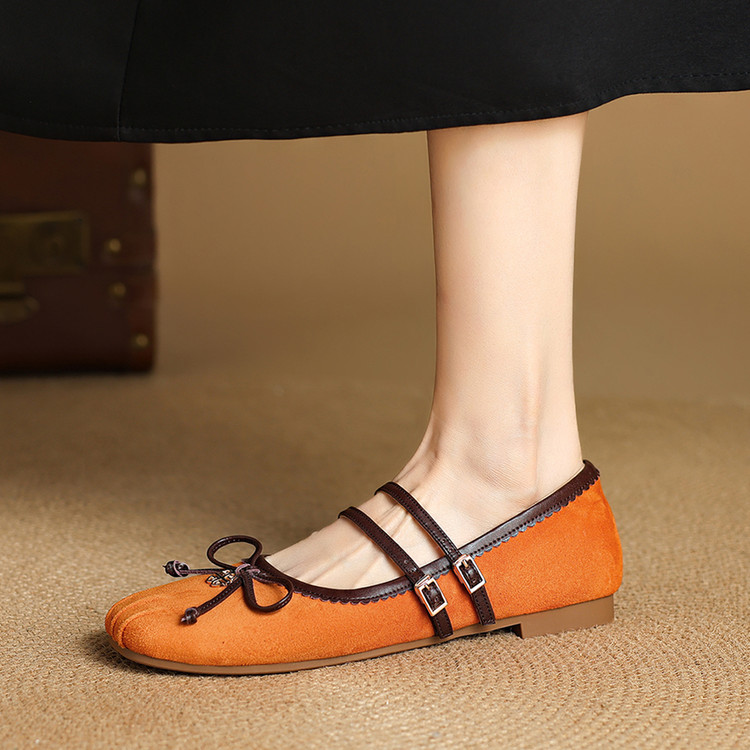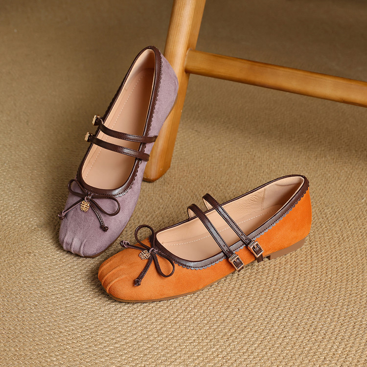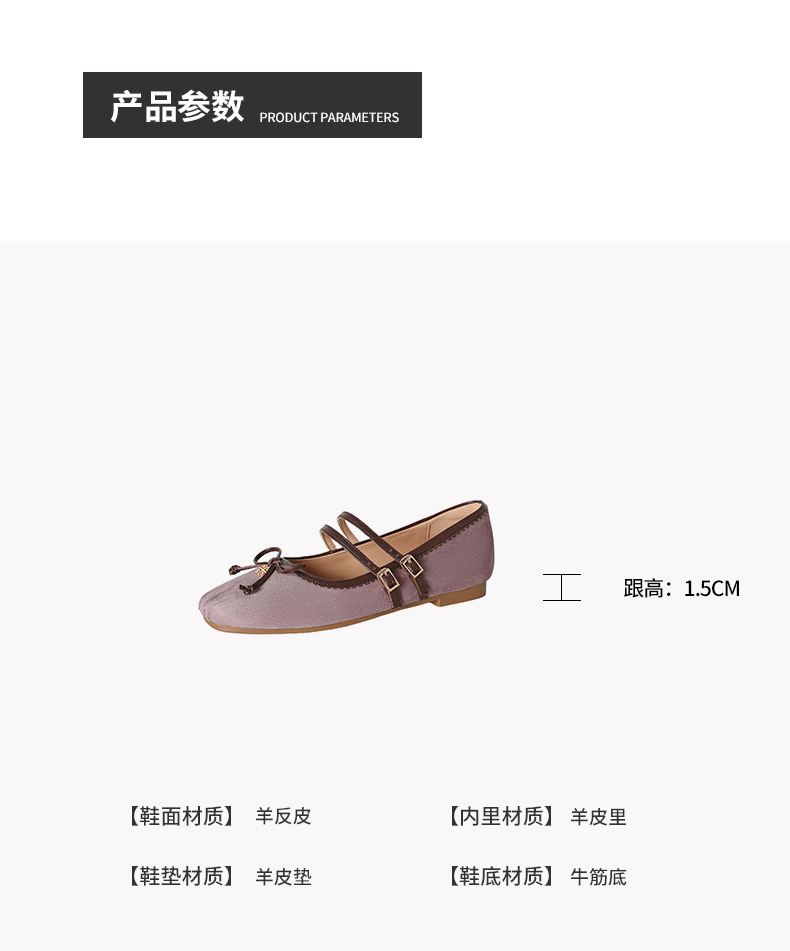 【货 号】K1726【帮面材质】羊反皮【内里材质】羊皮里【鞋垫材质】羊皮垫【鞋底材质】牛筋底【跟 高】1.5cm【颜 色】橙色 香芋紫【尺 码】34-40(大小定制不退换)