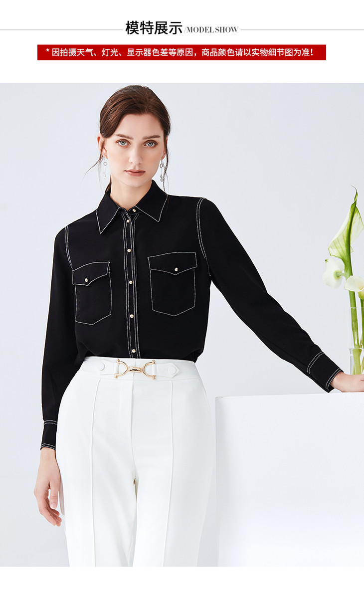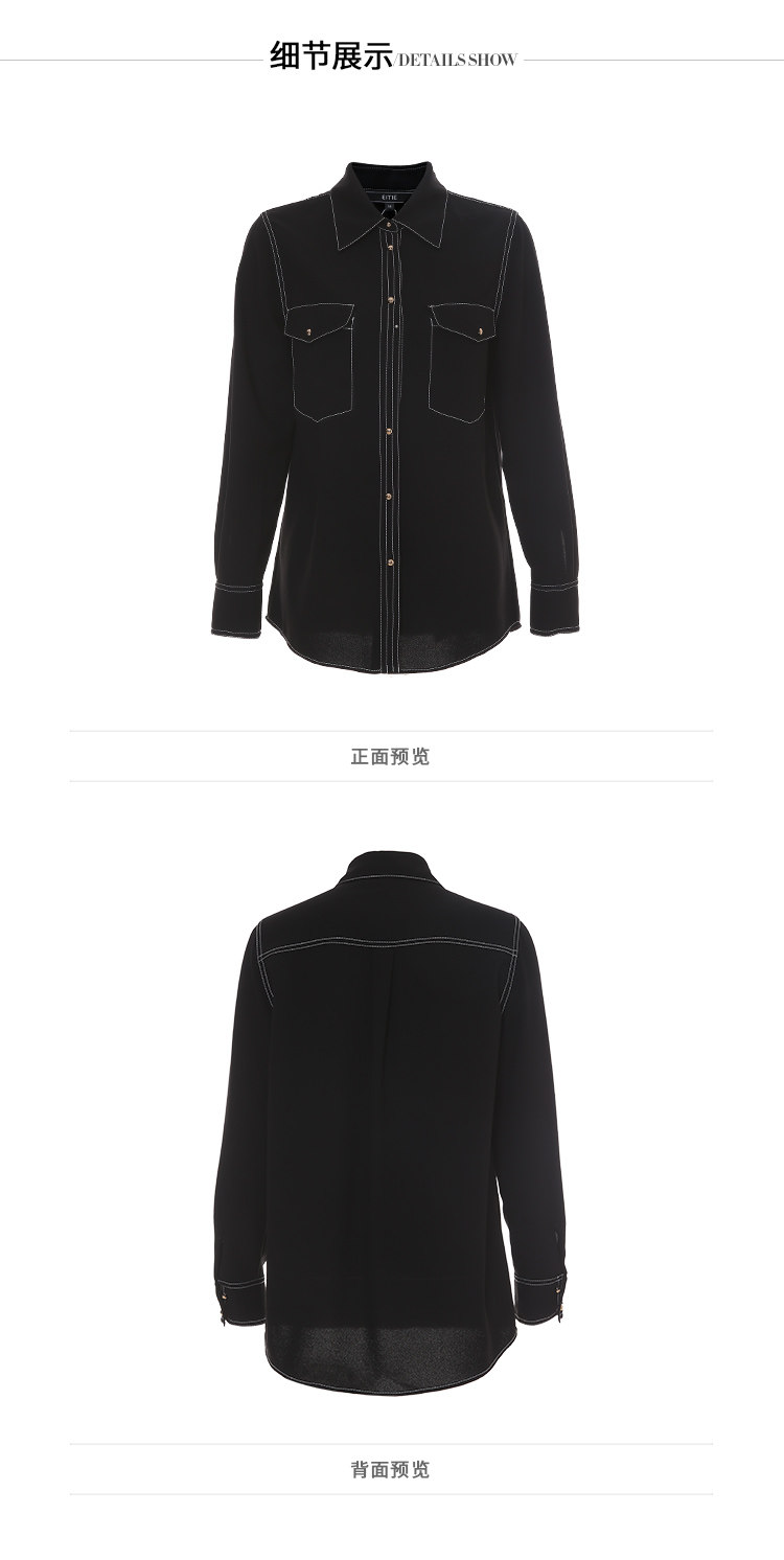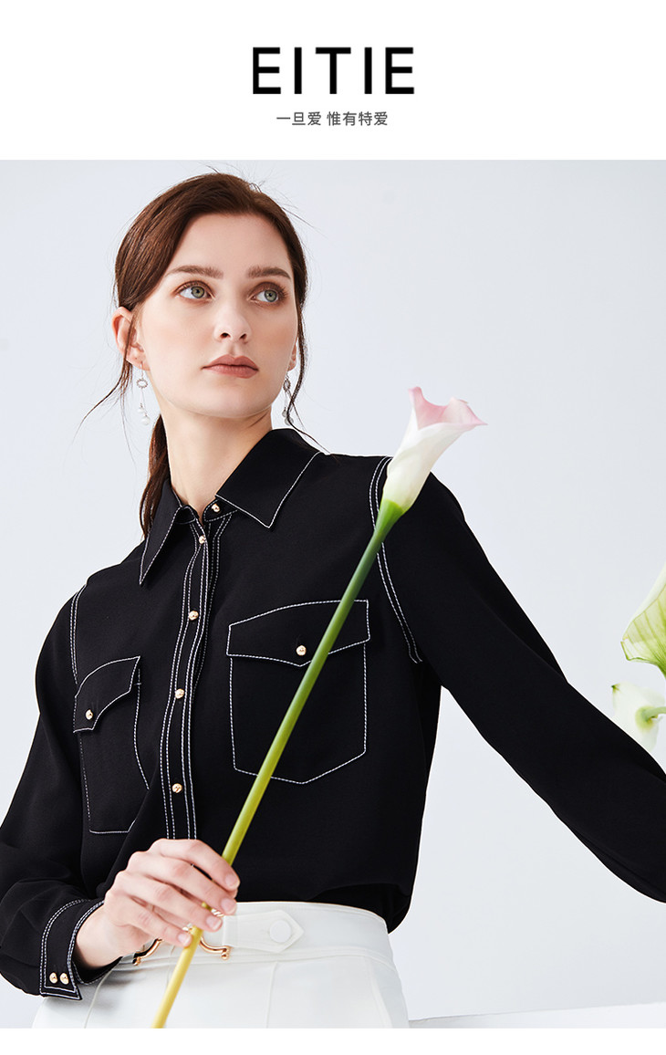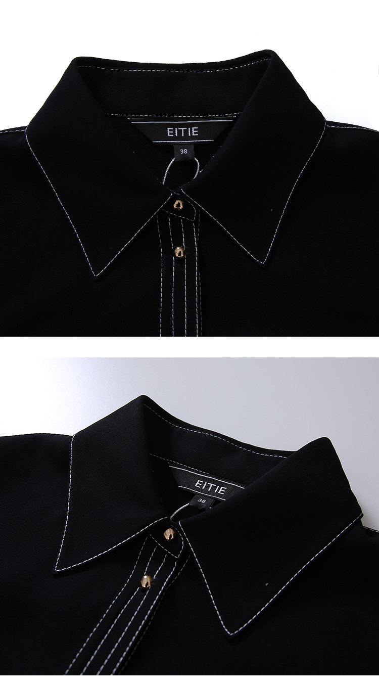 EITIE爱特爱女装春款职业通勤明线装饰显瘦纯色衬衫女上衣6109815