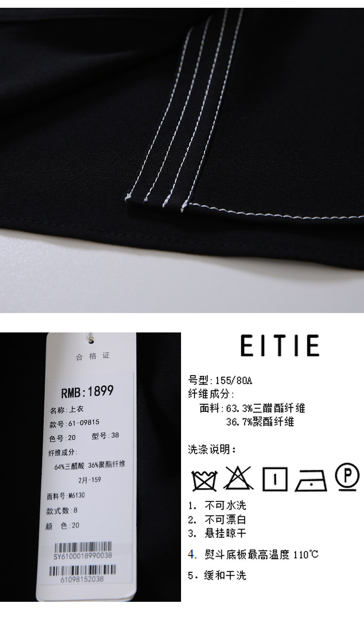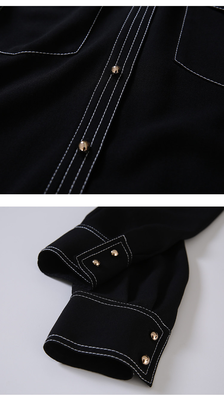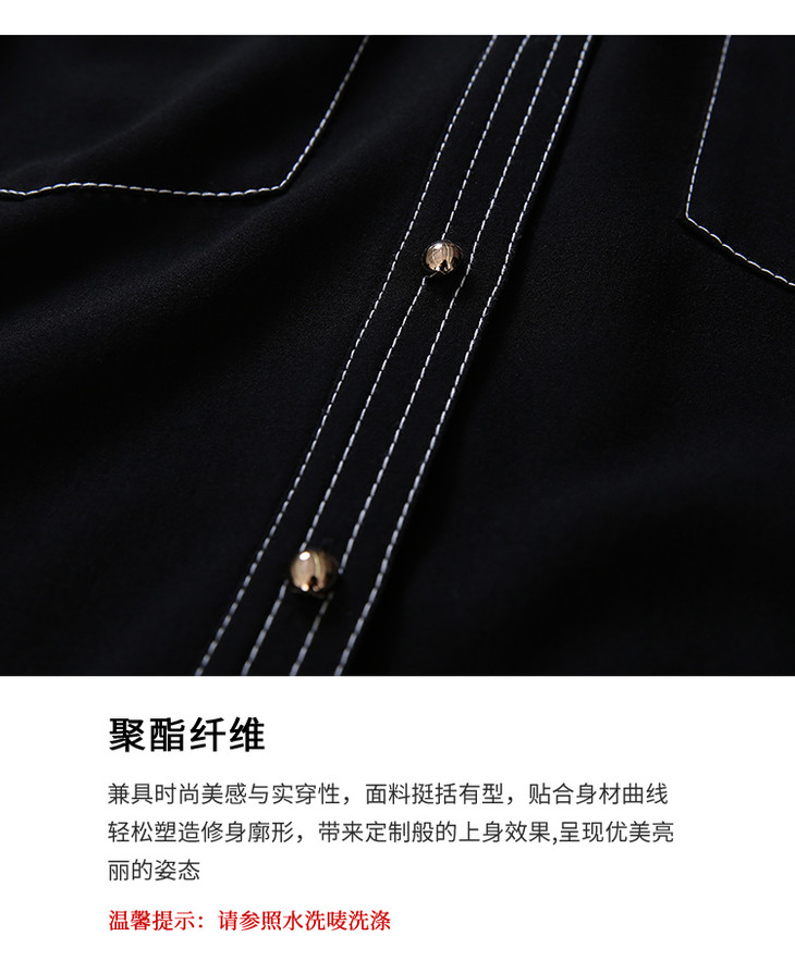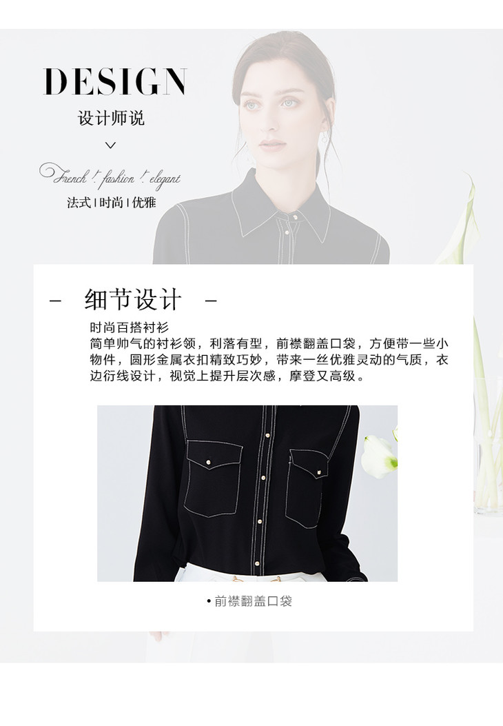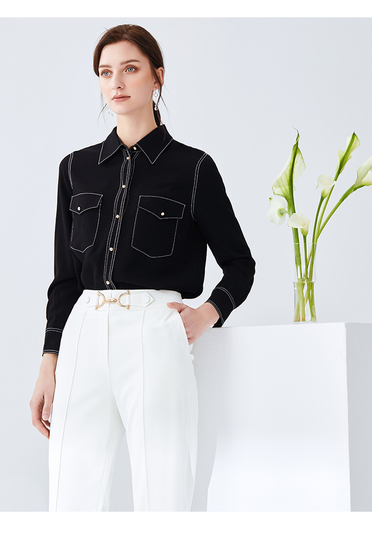 EITIE爱特爱女装春款职业通勤明线装饰显瘦纯色衬衫女上衣6109815