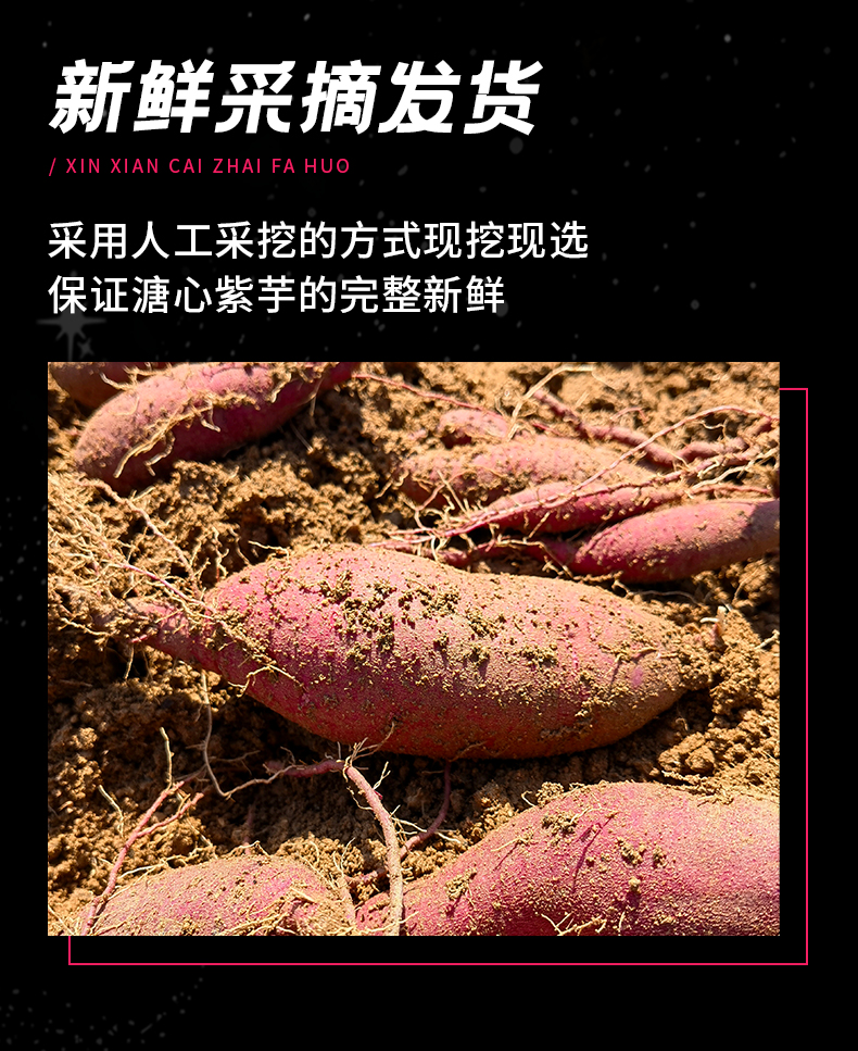 溏心紫芋薯现在是地窖保存,包装发货经过常温运输,可能会产生水雾水珠(尤其是南方)。一定要及时签收,签收后放在阴凉干燥的地方敞开晾干后,竖着放箱子里(不要摞在一起)或直接放地上,也不要装任何袋子保存,千万不可捂着热的地方存放。运输中会出现断裂、发芽现象,不影响使用,断裂3根内不售后。