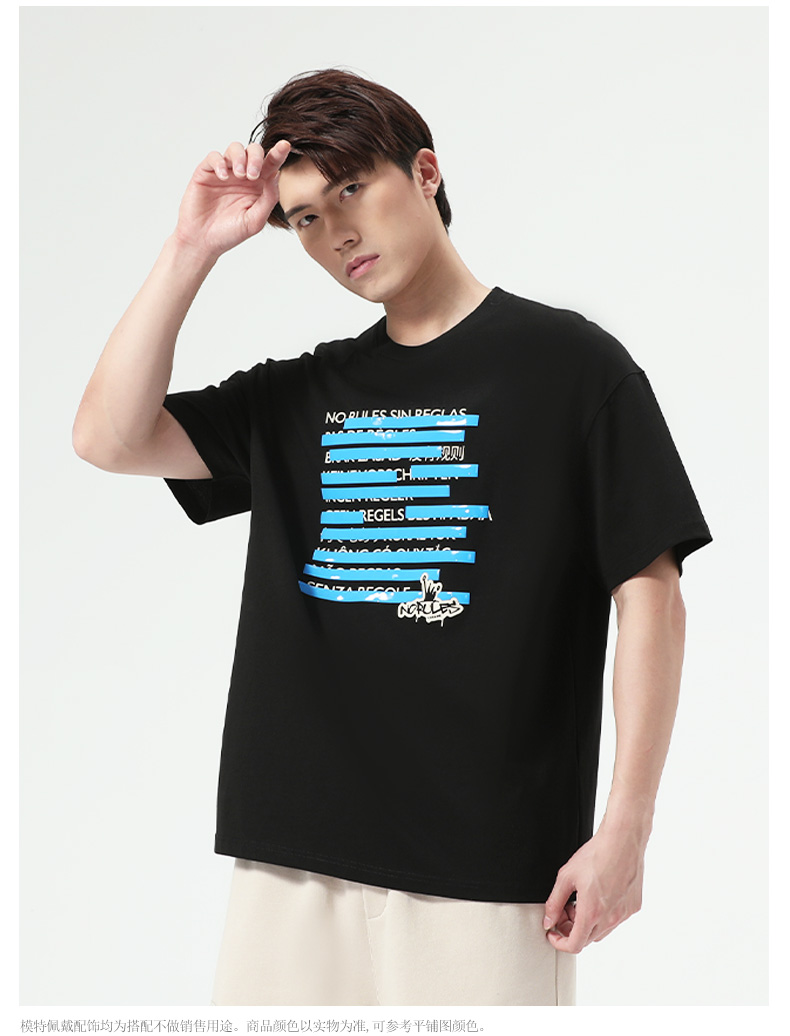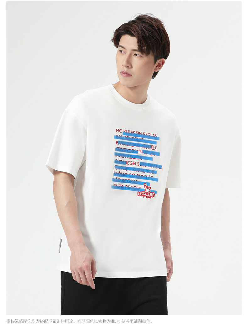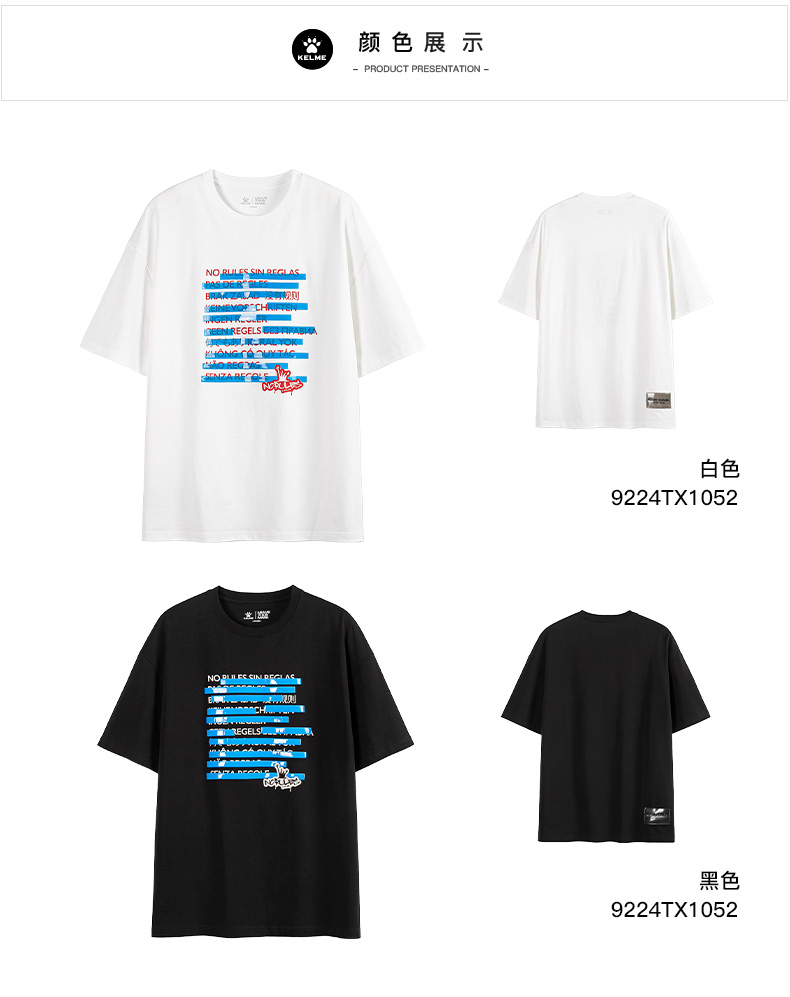 卡尔美运动短袖T恤2022新款字母图案圆领套头休闲潮流文化衫