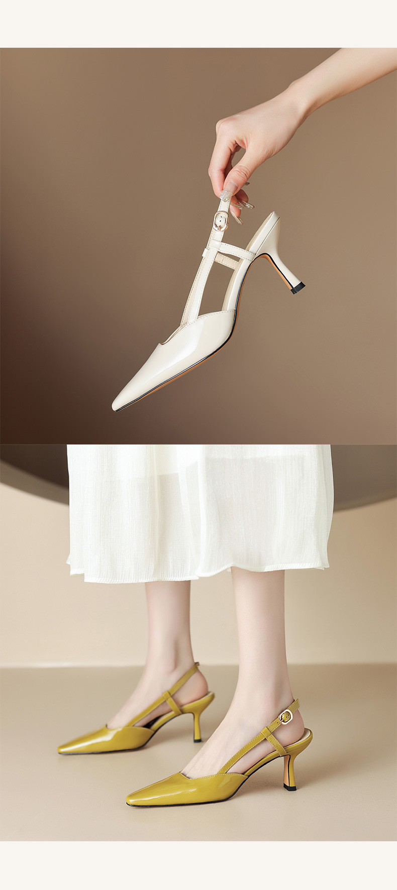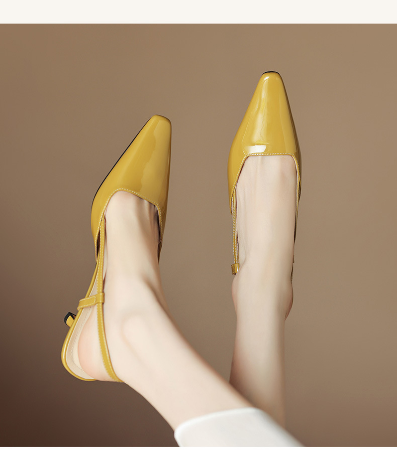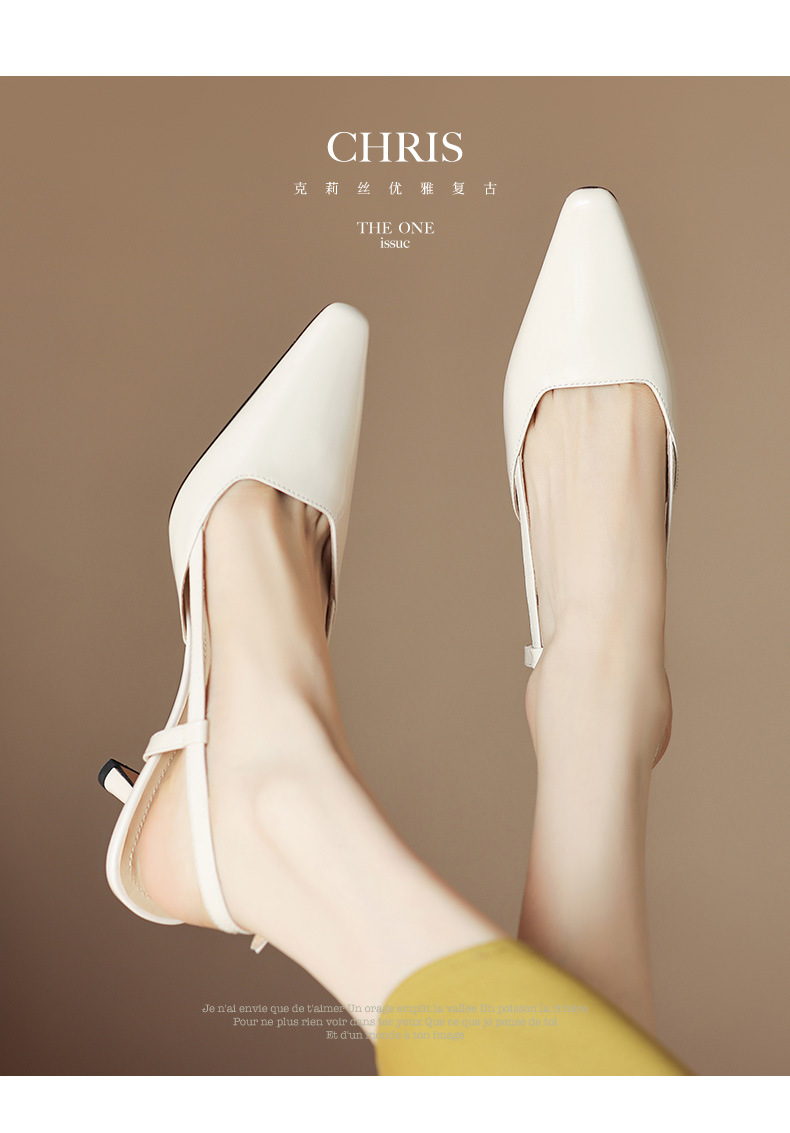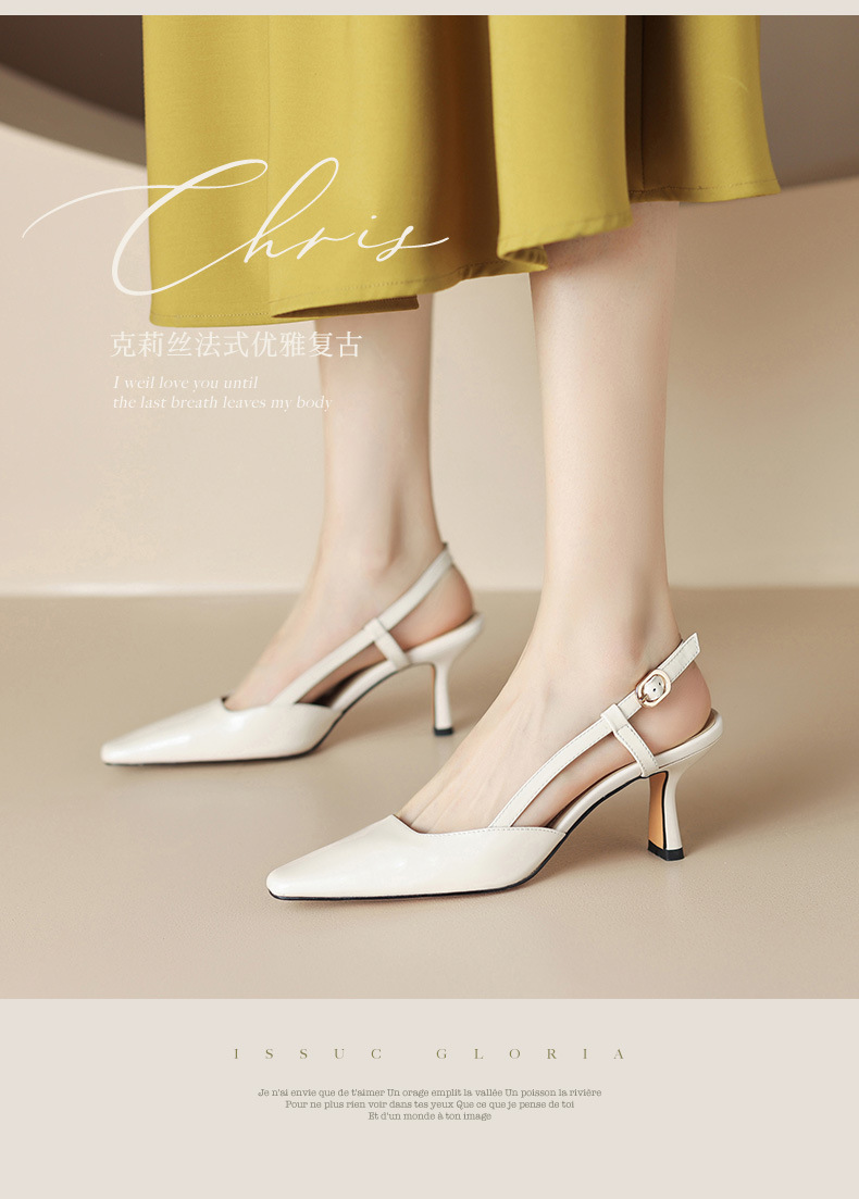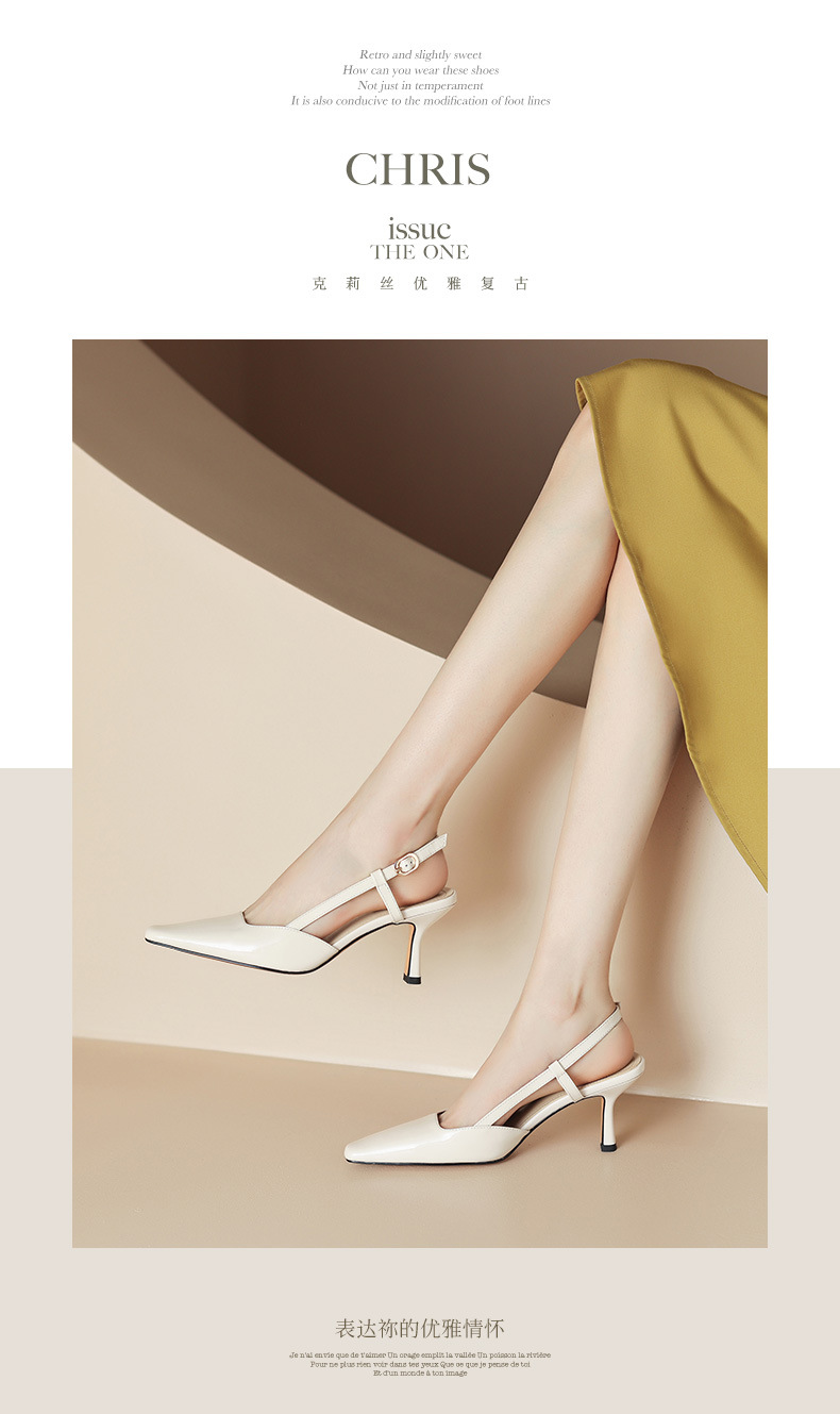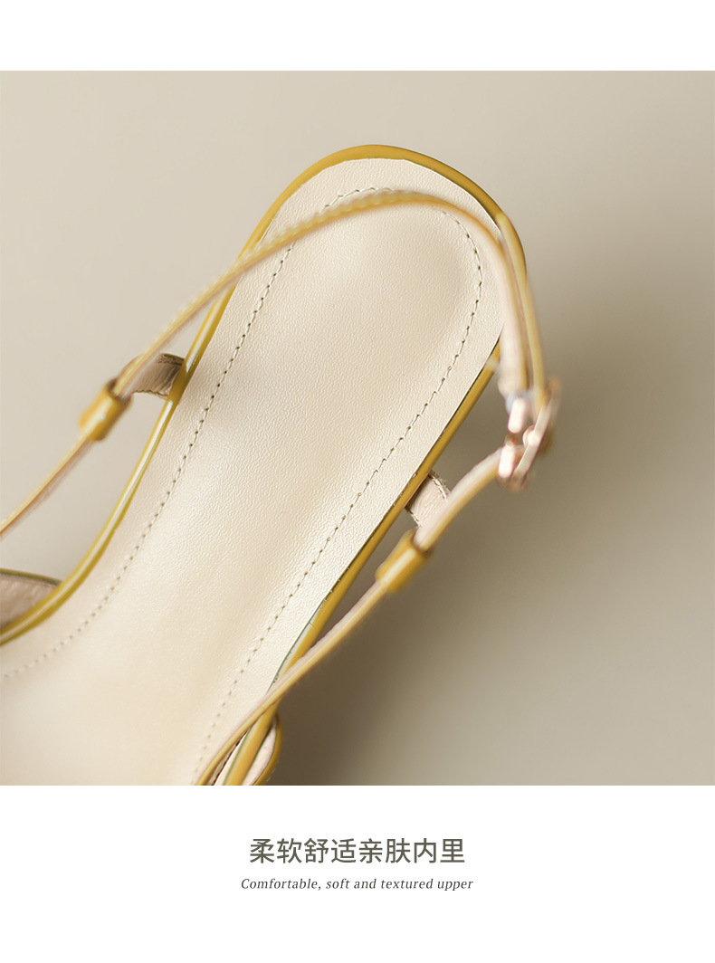 细跟圆头凉鞋,时尚包头后空高跟女鞋QS-23012
