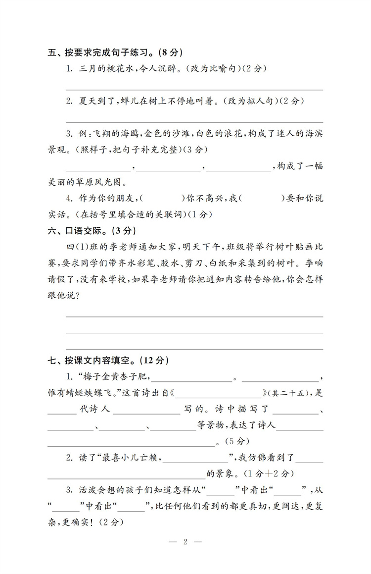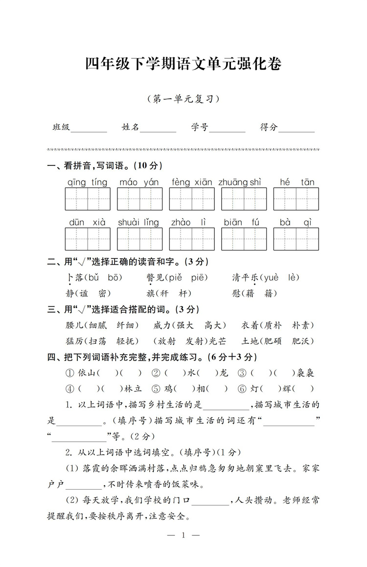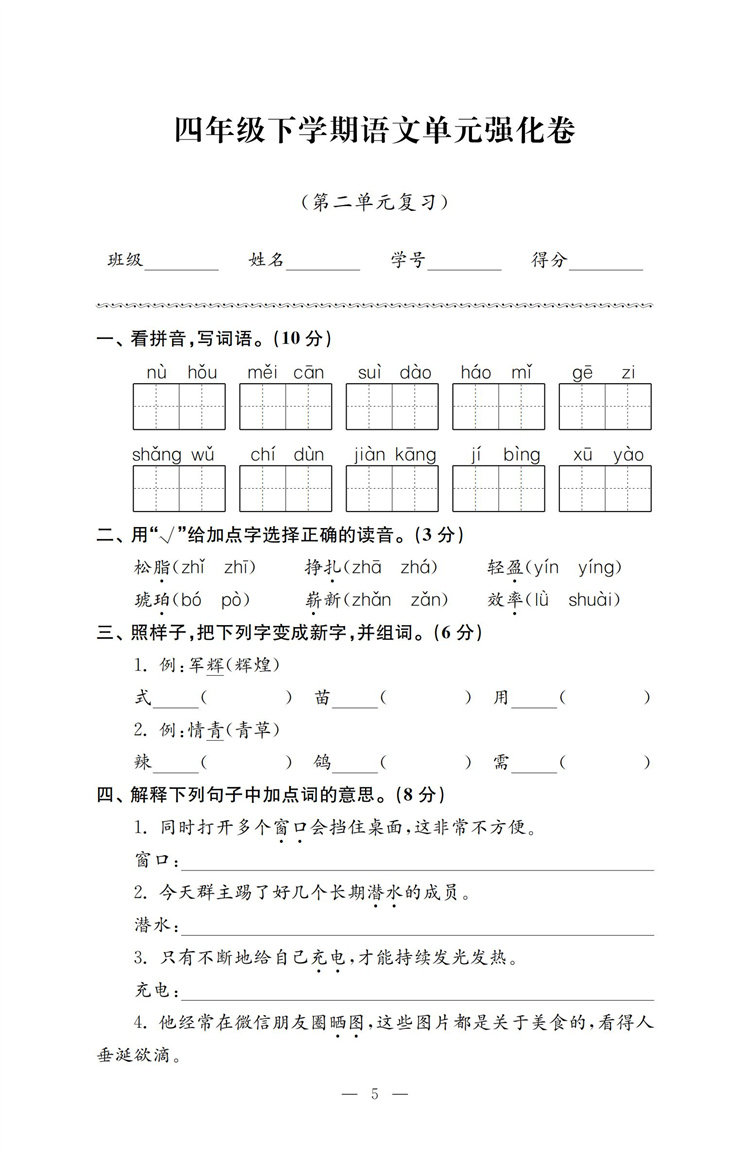 2025年春 小学语文强化拓展卷 统编版 提优版 四年级下册 小学教辅 含电子答案 测试卷 江苏凤凰教育出版社