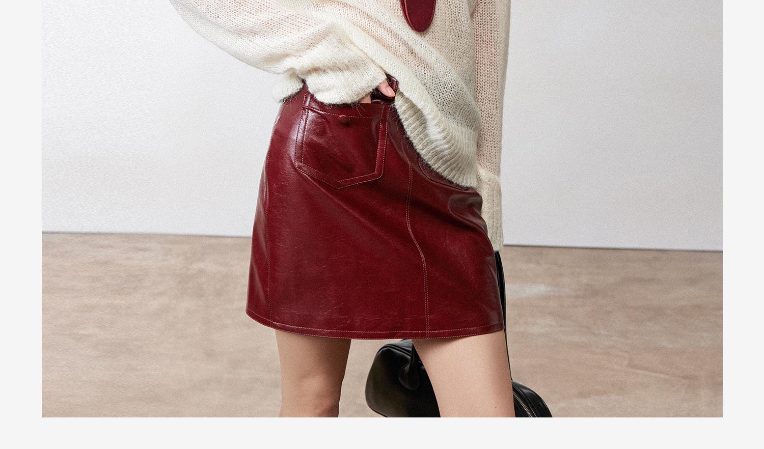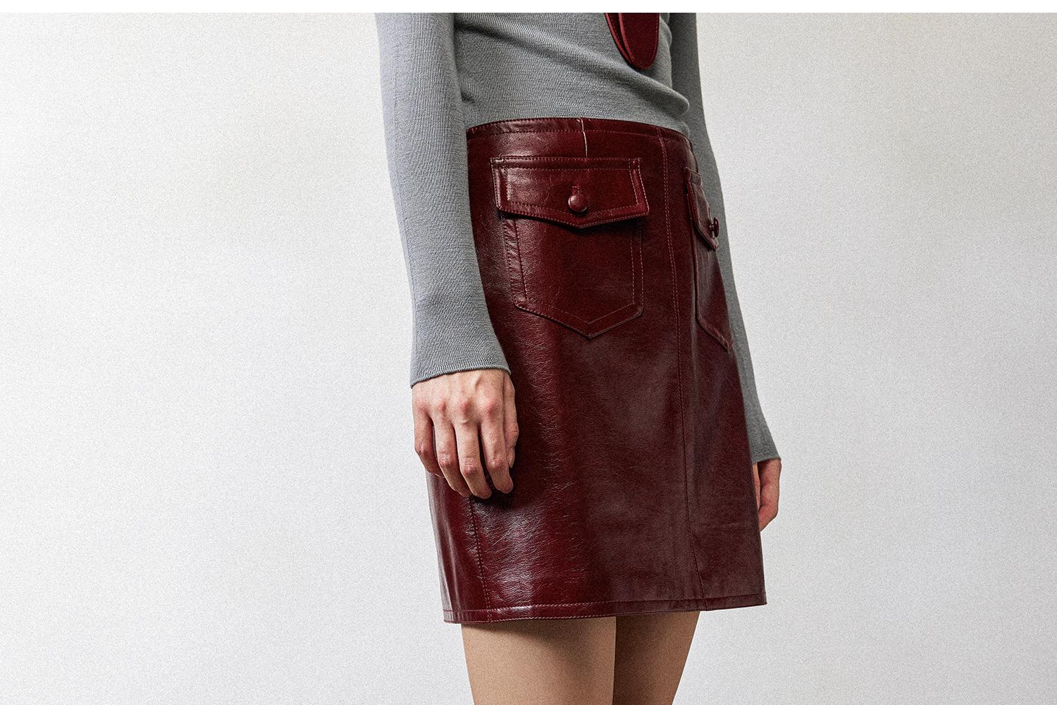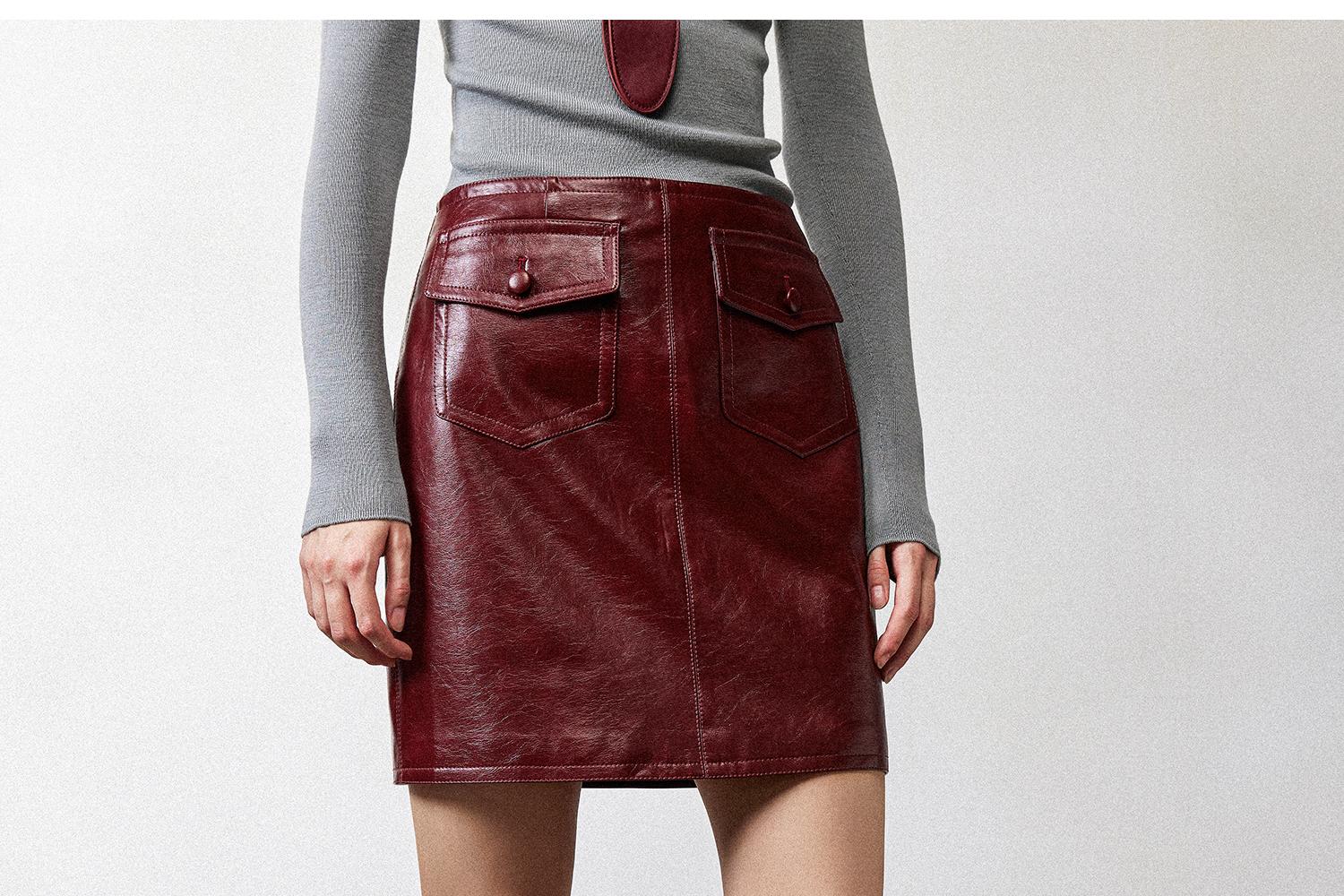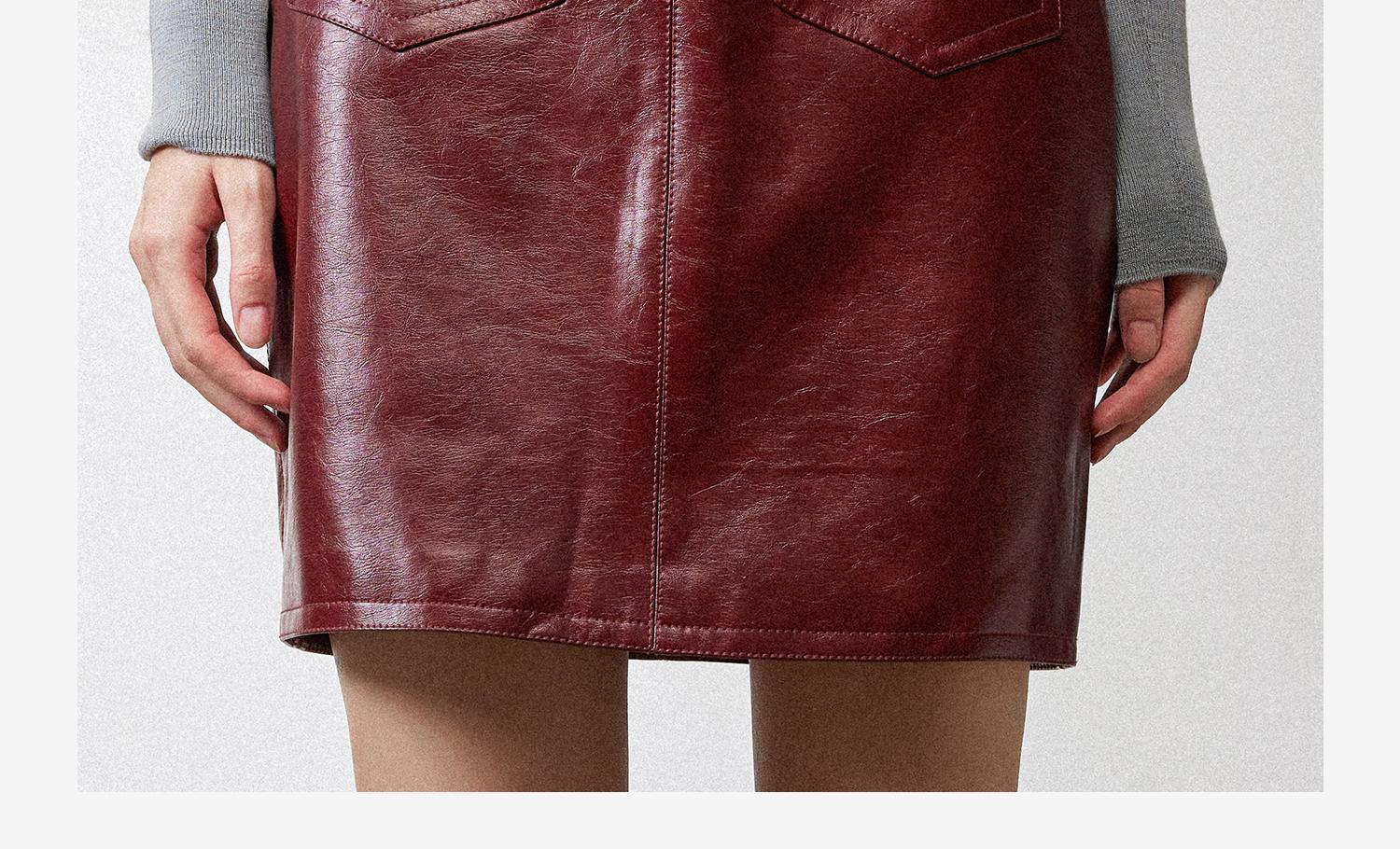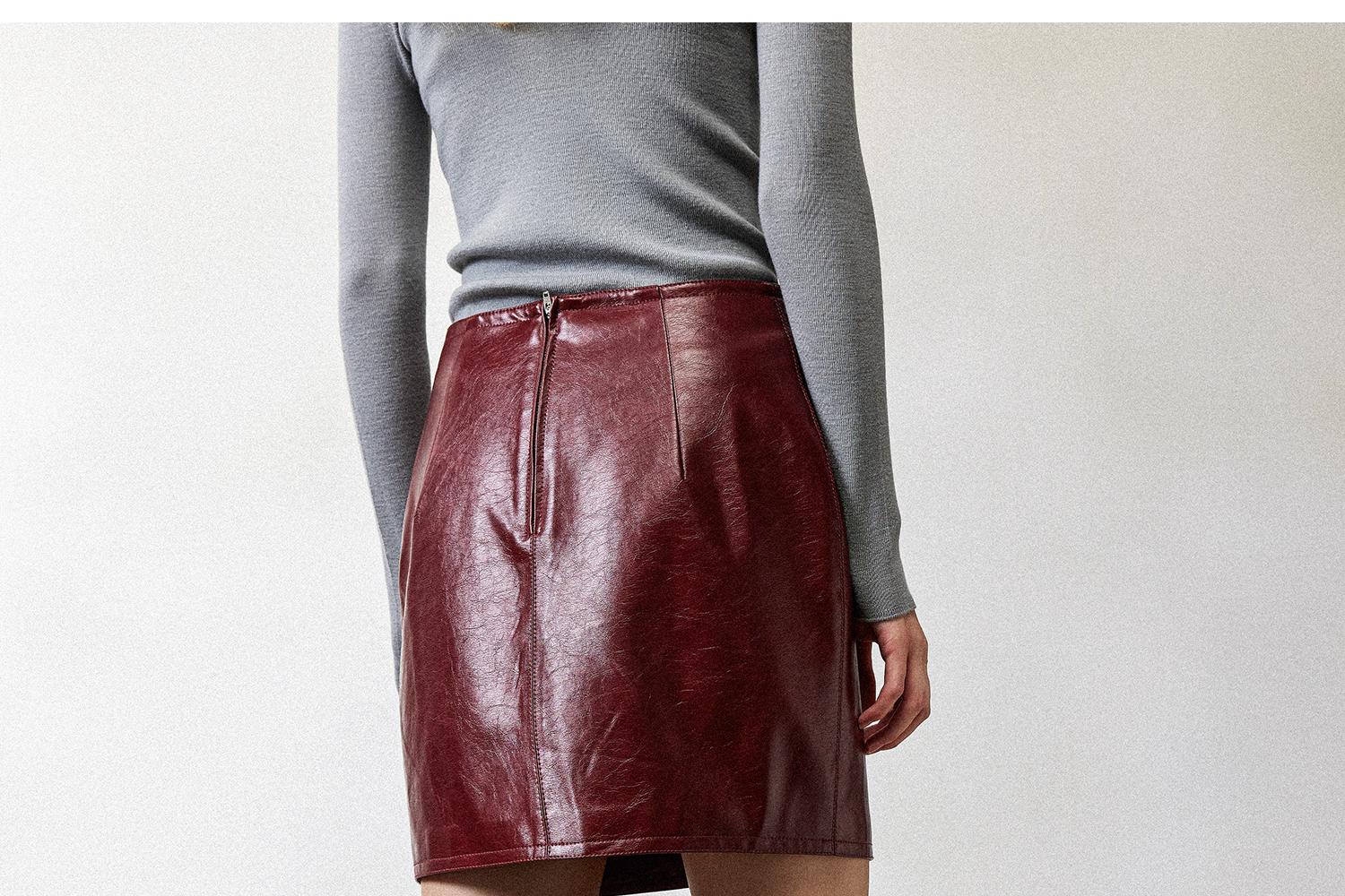 西嘉职场海妖风时髦优雅安可拉红PU油蜡皮半裙女2024秋冬小短裙(货号:BQ2404032)