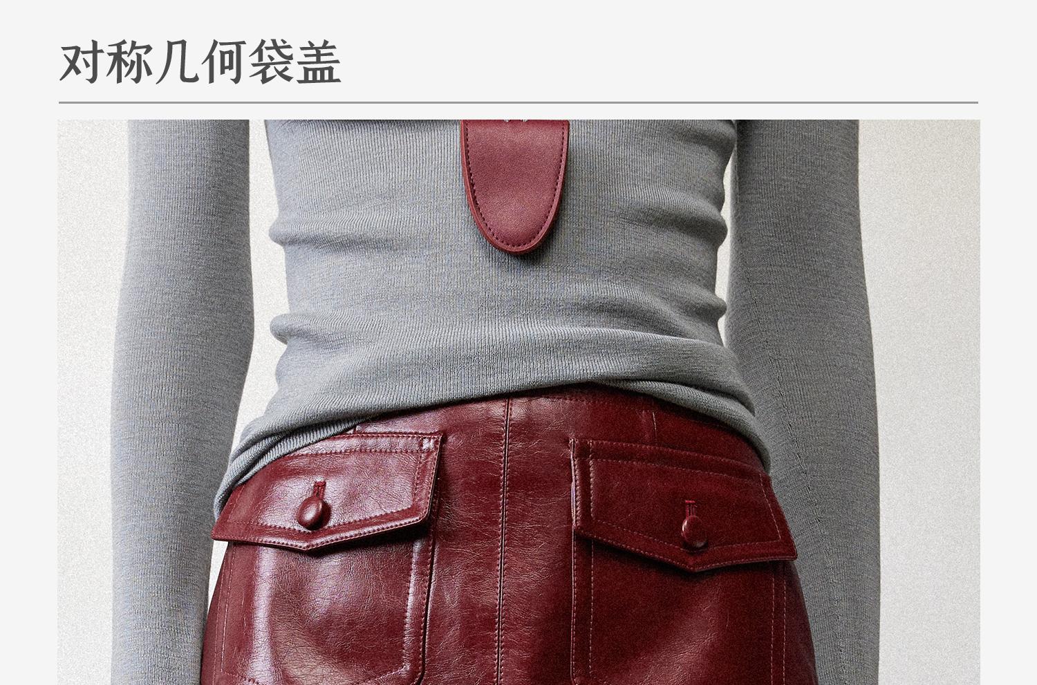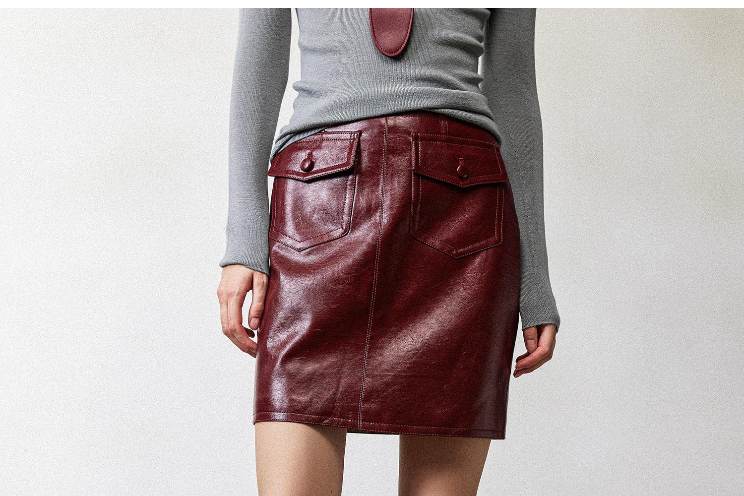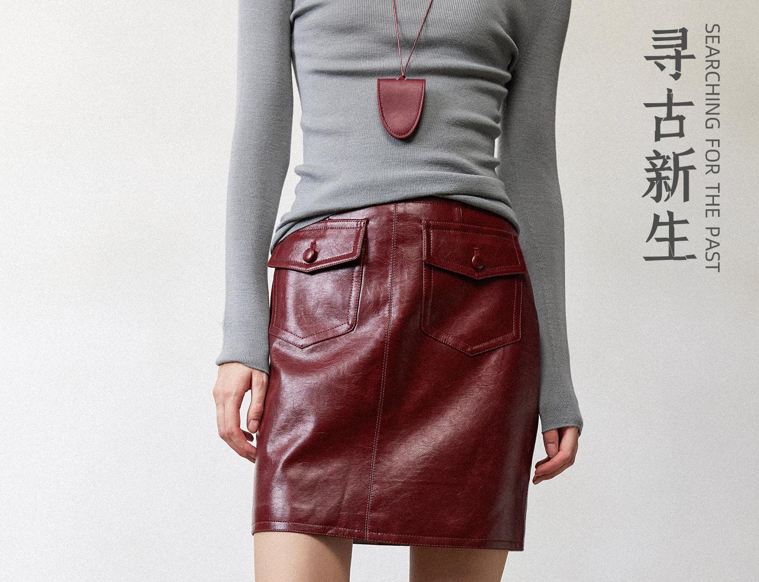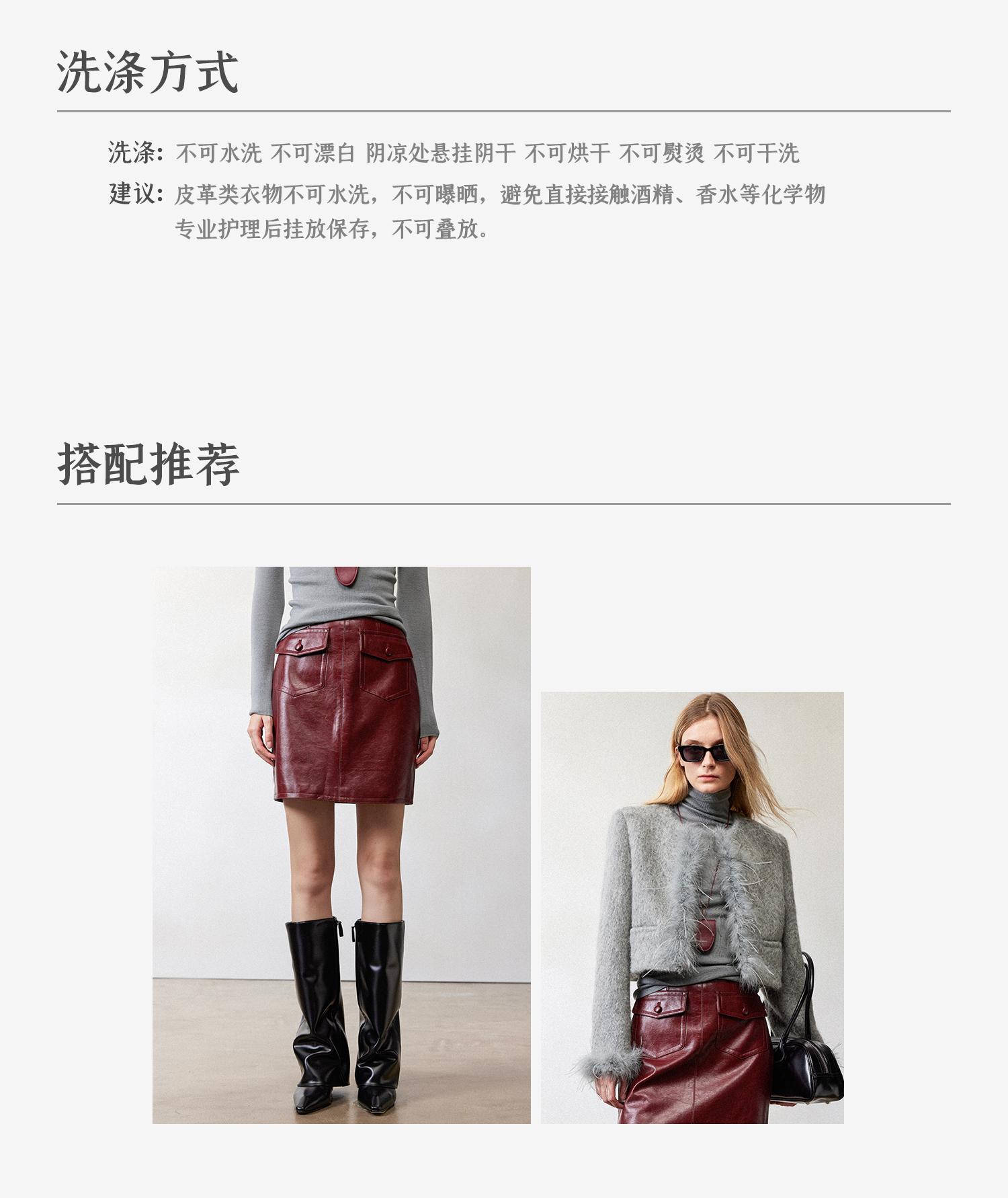 西嘉职场海妖风时髦优雅安可拉红PU油蜡皮半裙女2024秋冬小短裙(货号:BQ2404032)