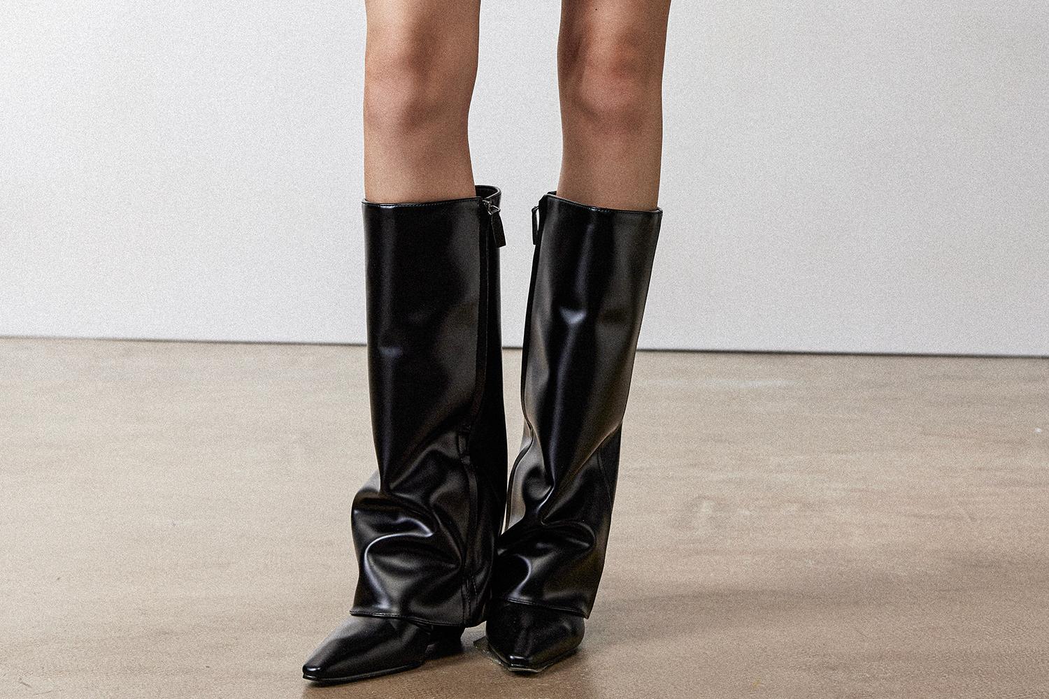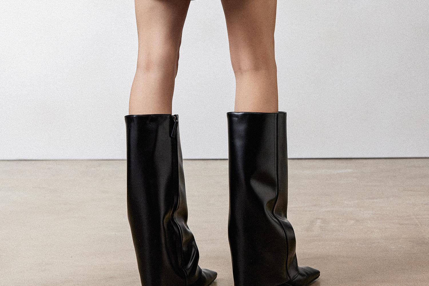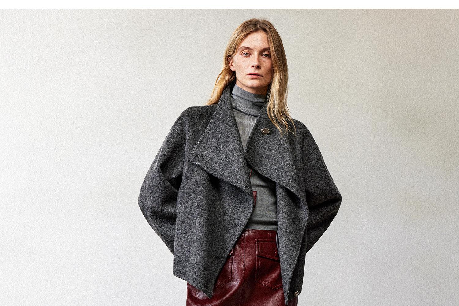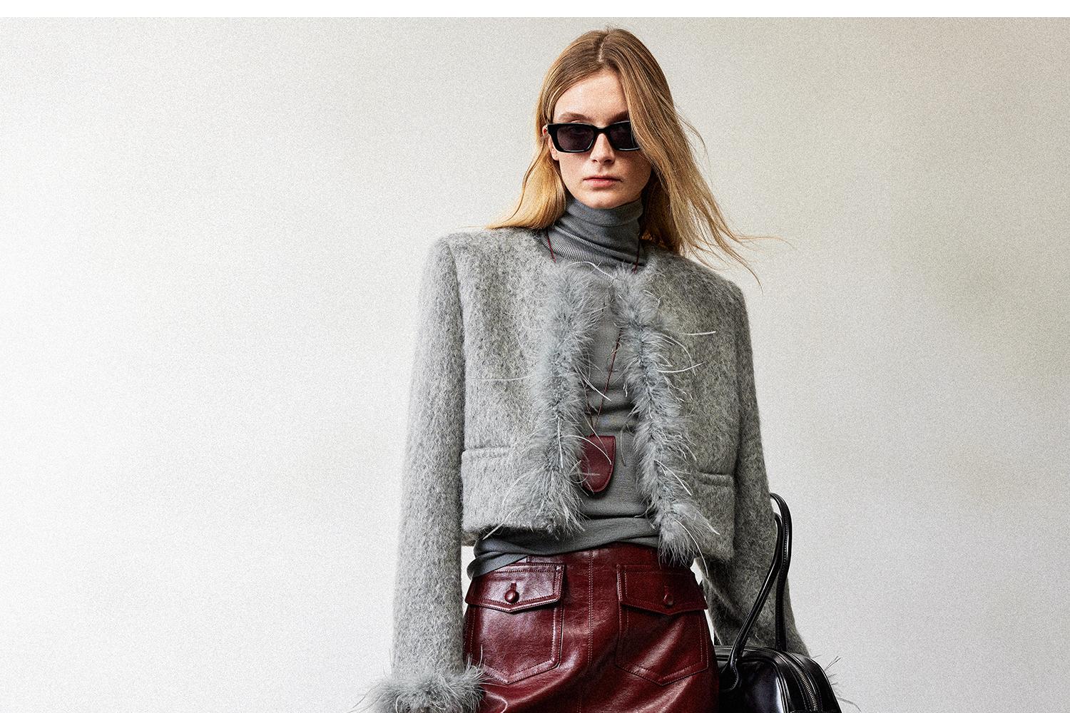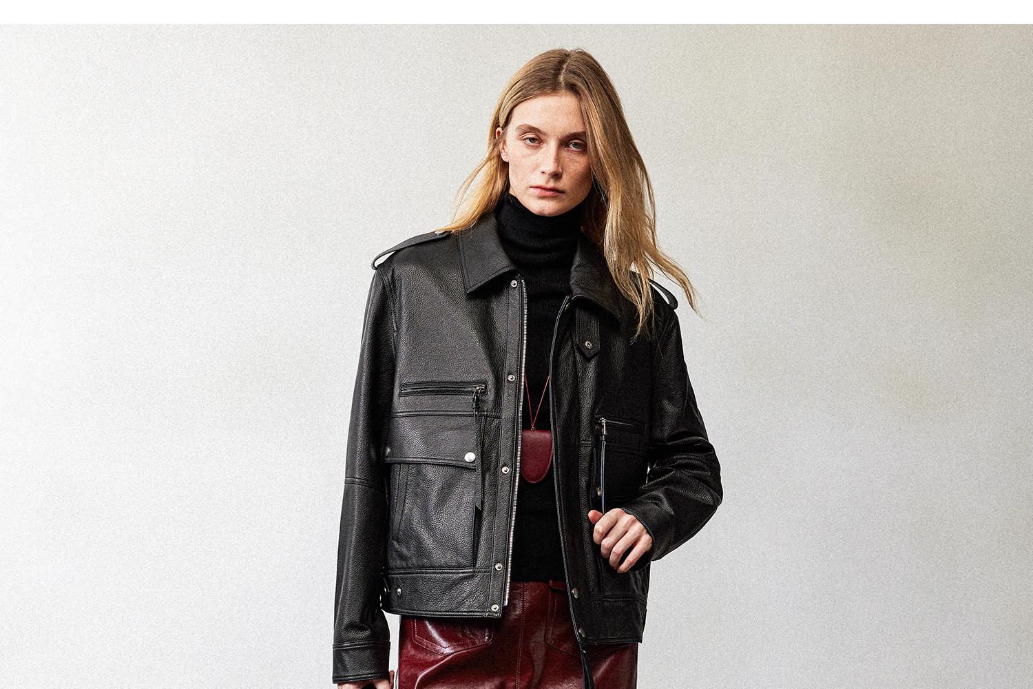 西嘉职场海妖风时髦优雅安可拉红PU油蜡皮半裙女2024秋冬小短裙(货号:BQ2404032)