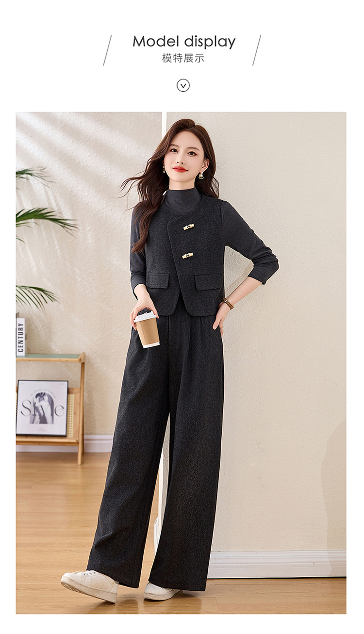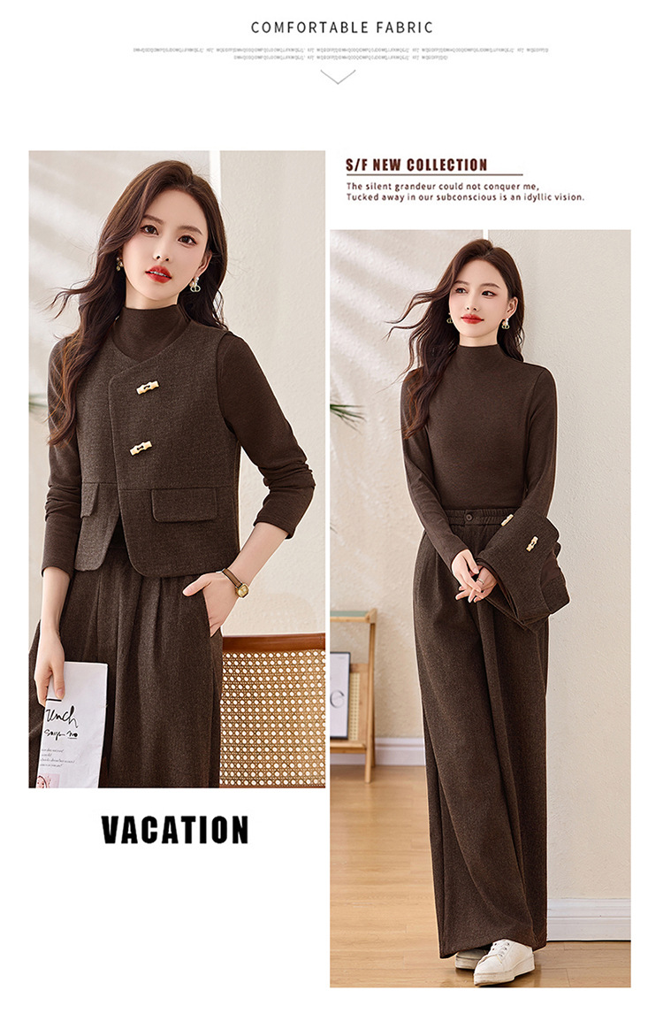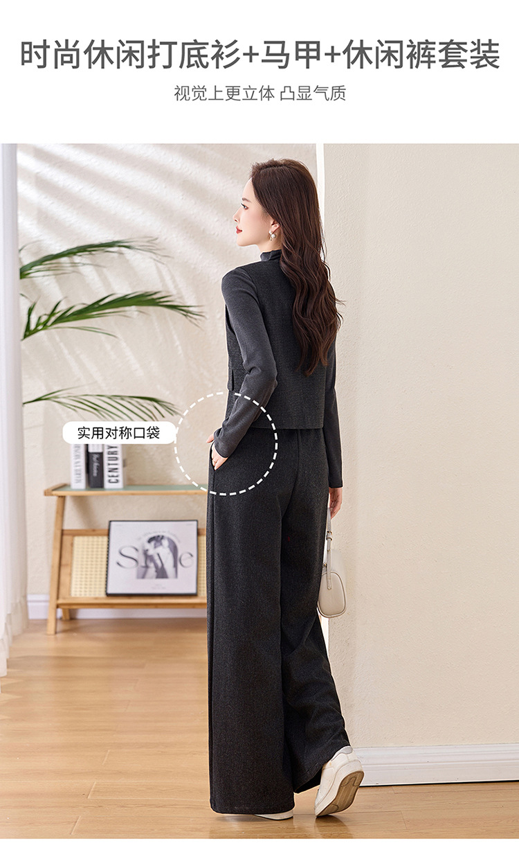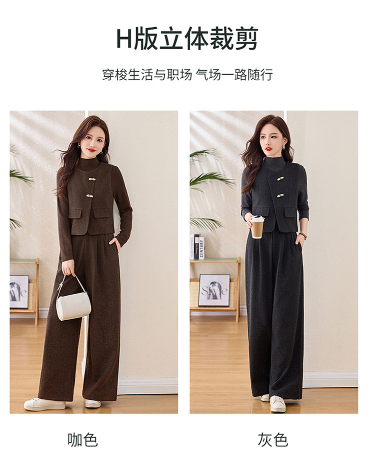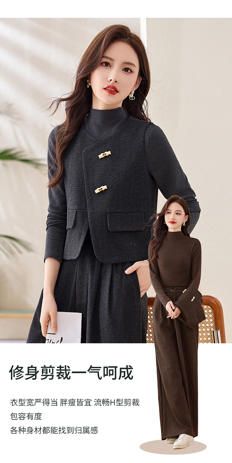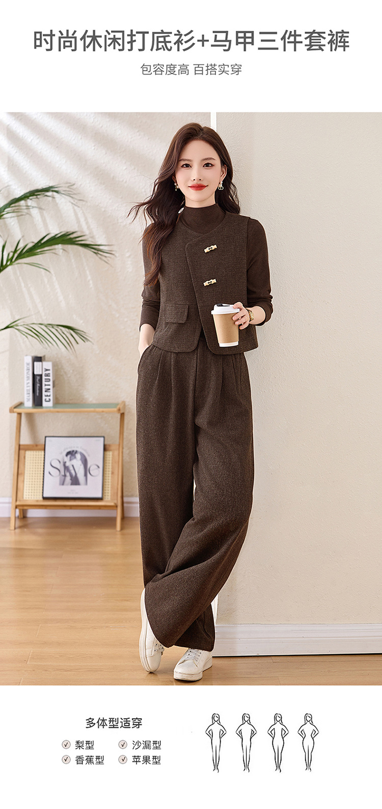 HR MEIQIN5501老钱风西装马甲阔腿裤套装气质通勤三件套