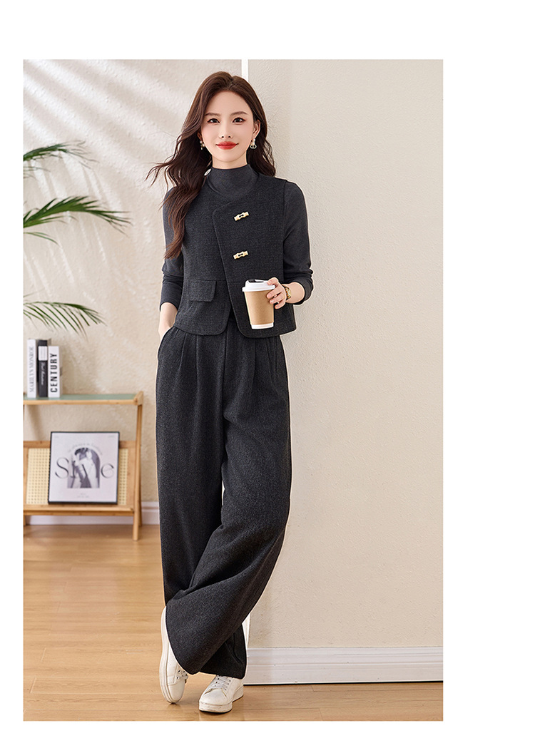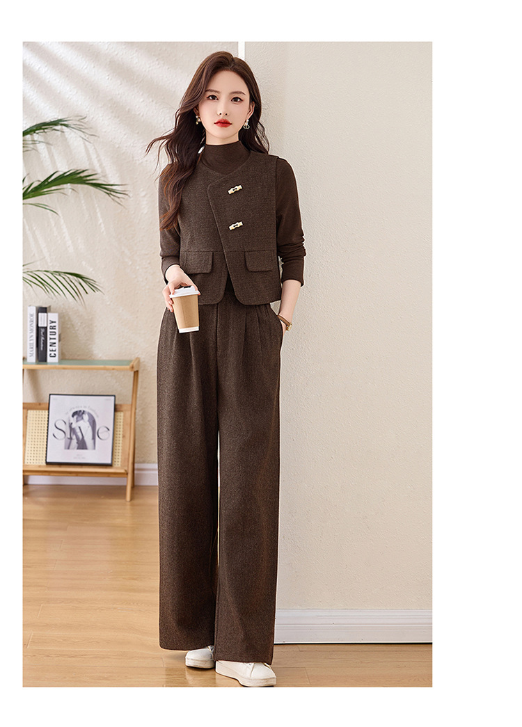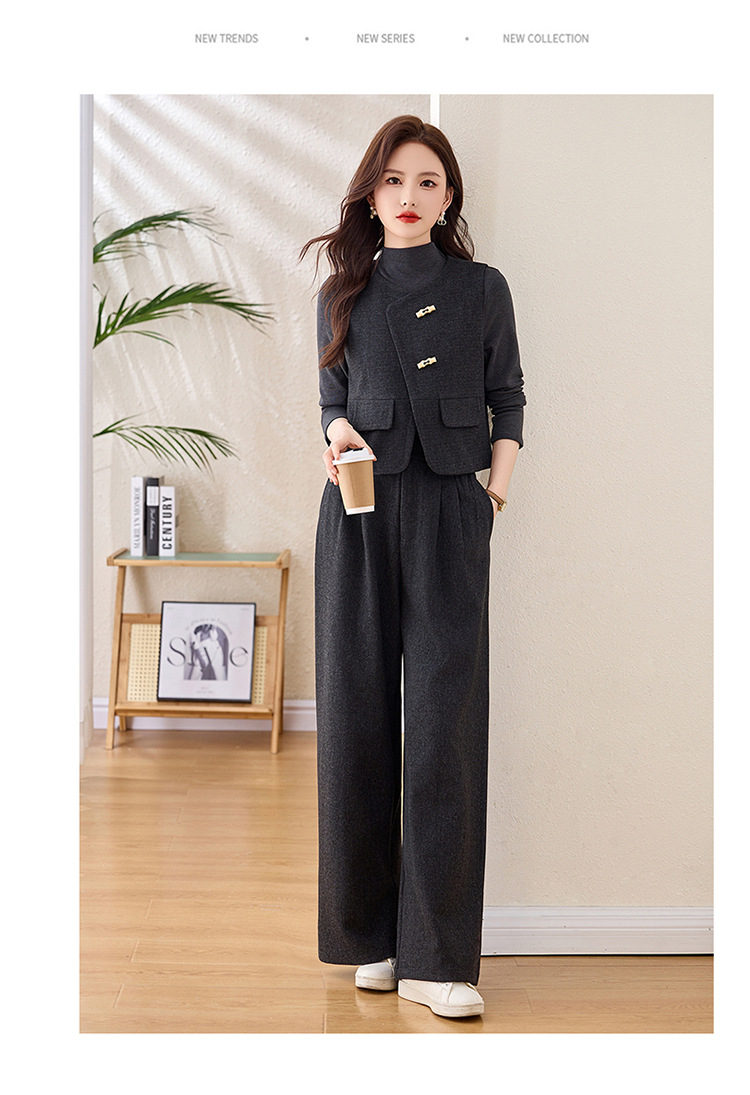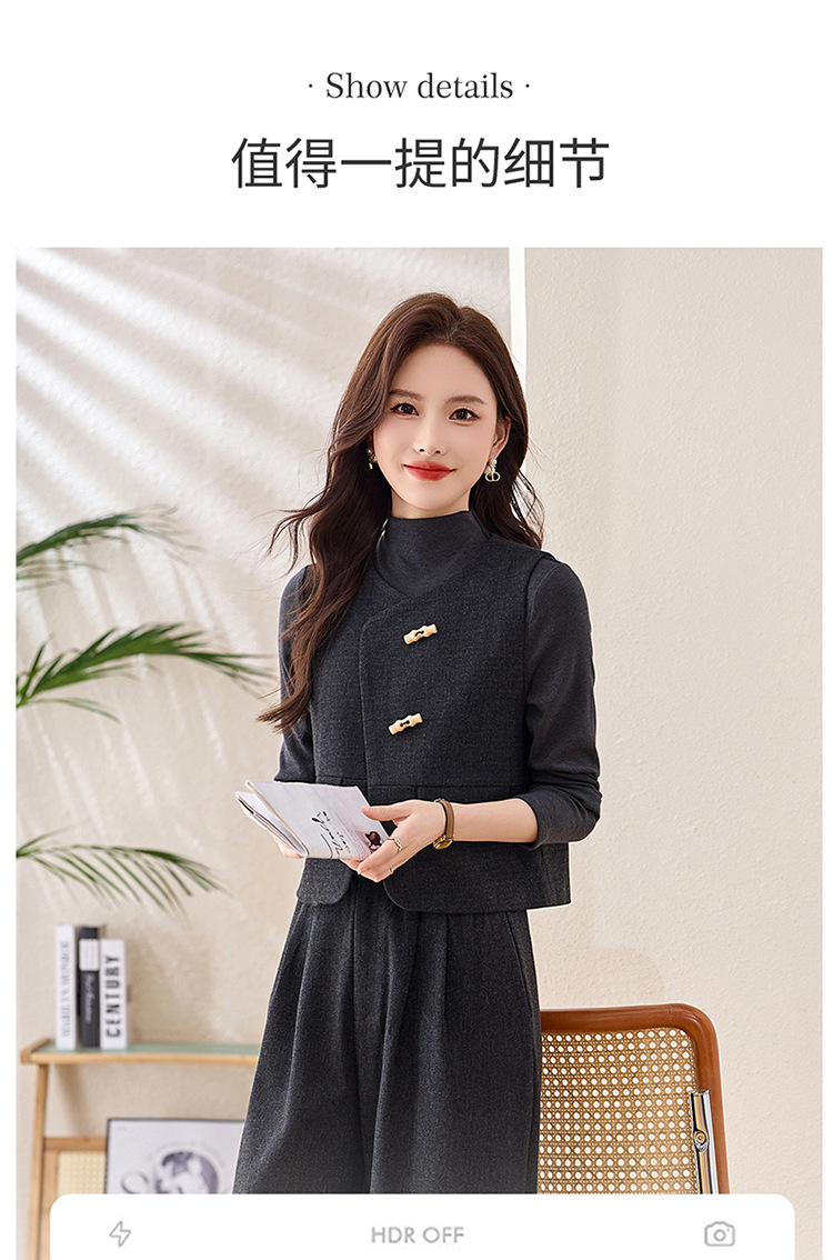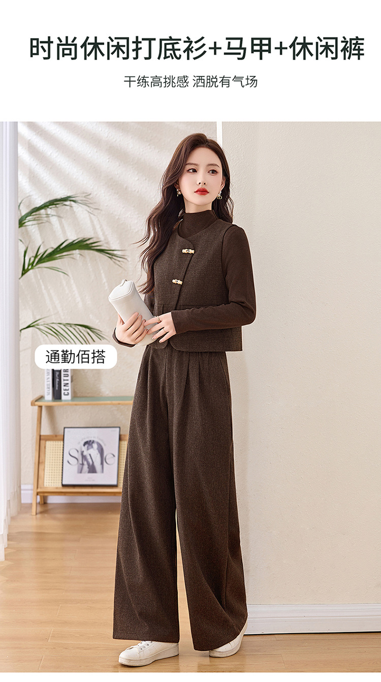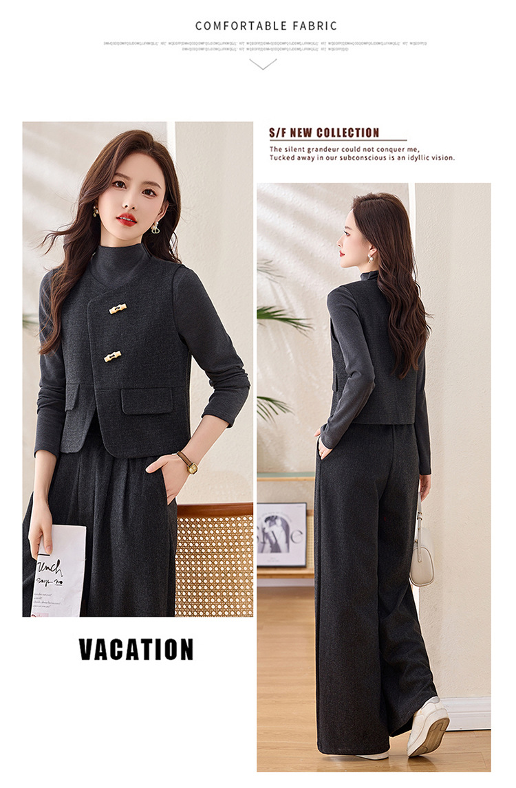 HR MEIQIN5501老钱风西装马甲阔腿裤套装气质通勤三件套