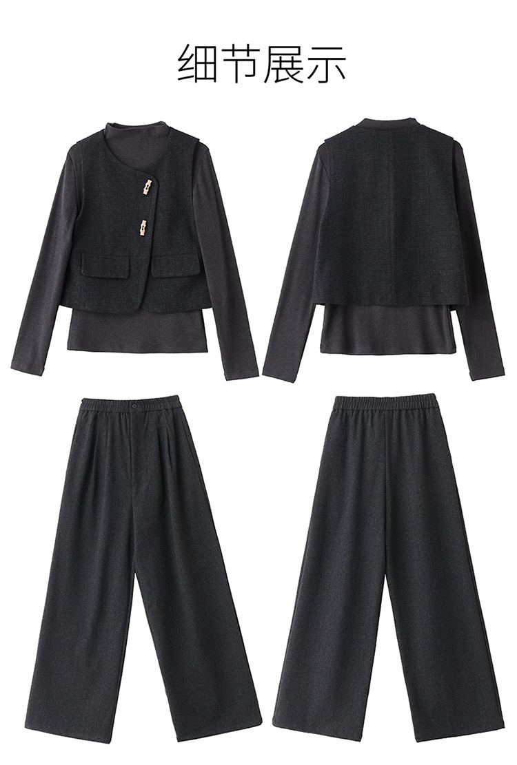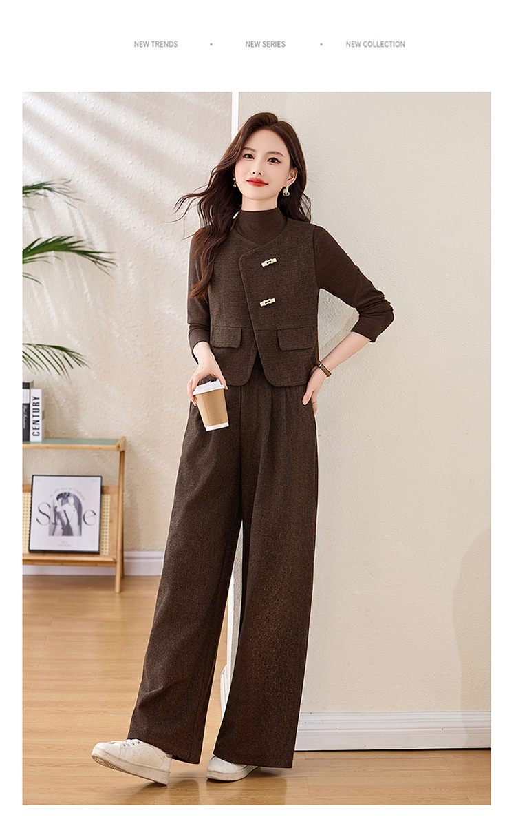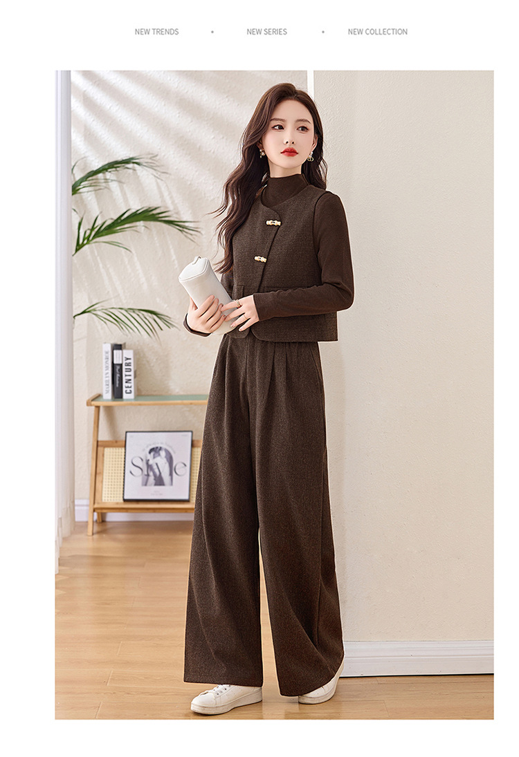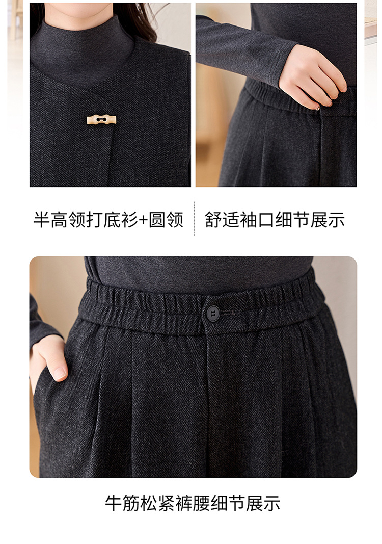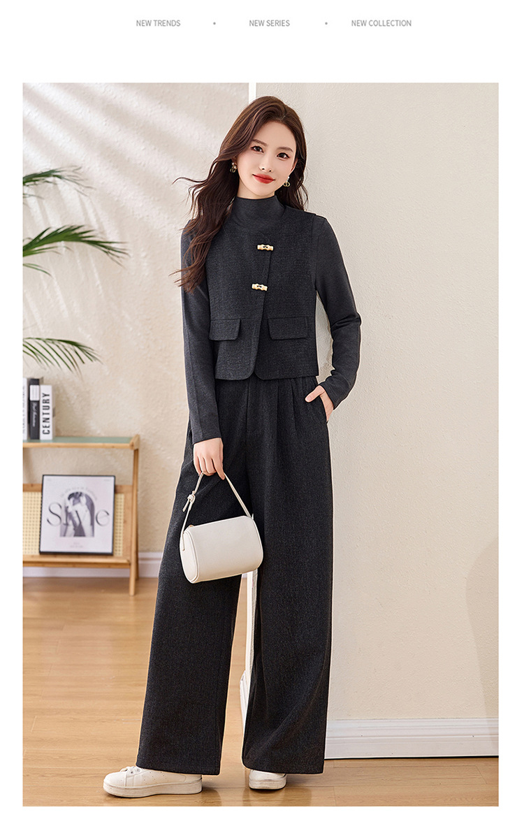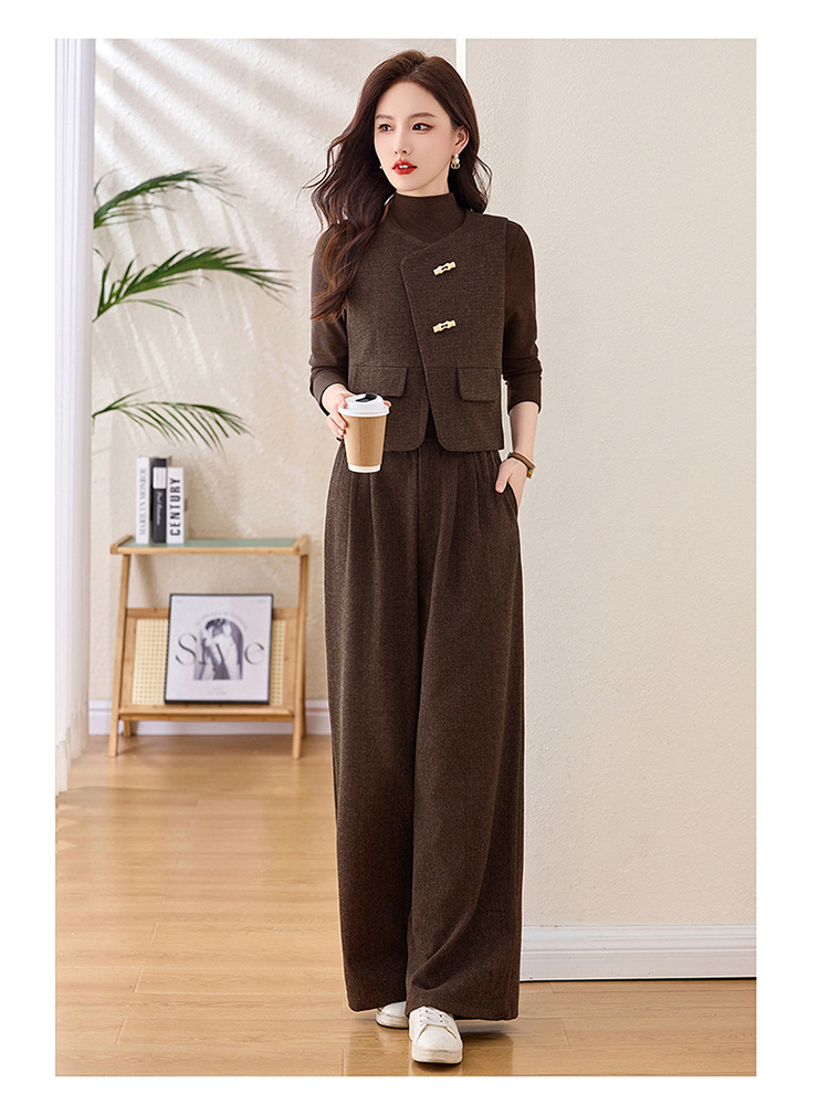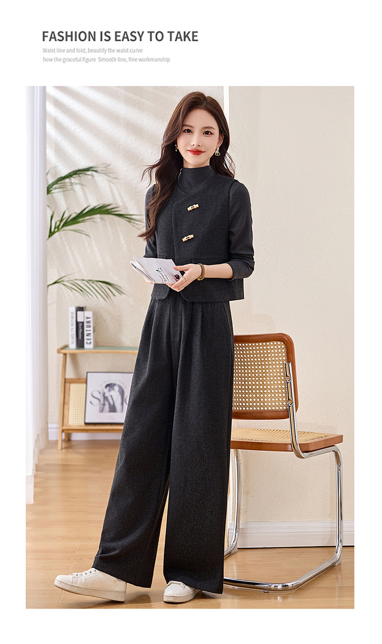 HR MEIQIN5501老钱风西装马甲阔腿裤套装气质通勤三件套