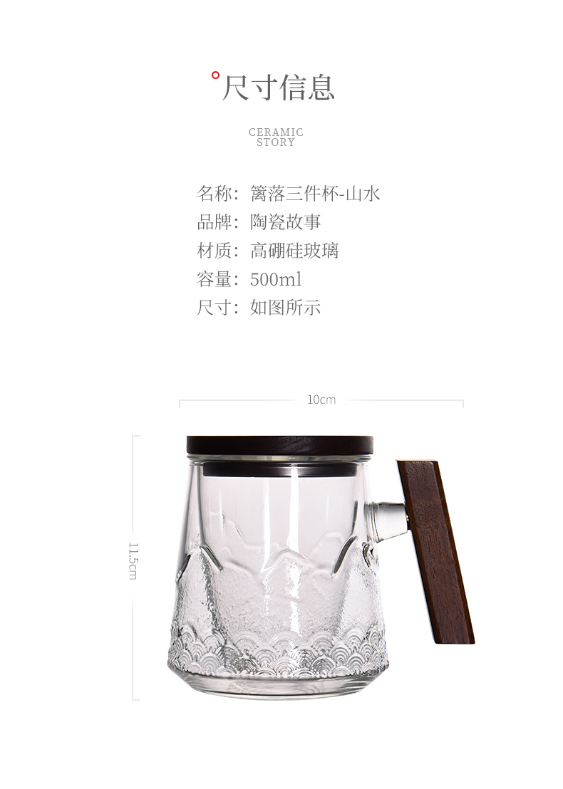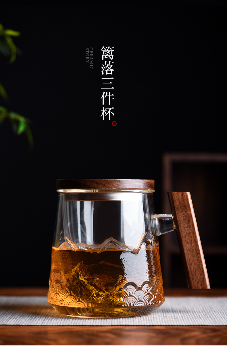 茶杯-玻璃泡茶杯-篱落山水三件杯