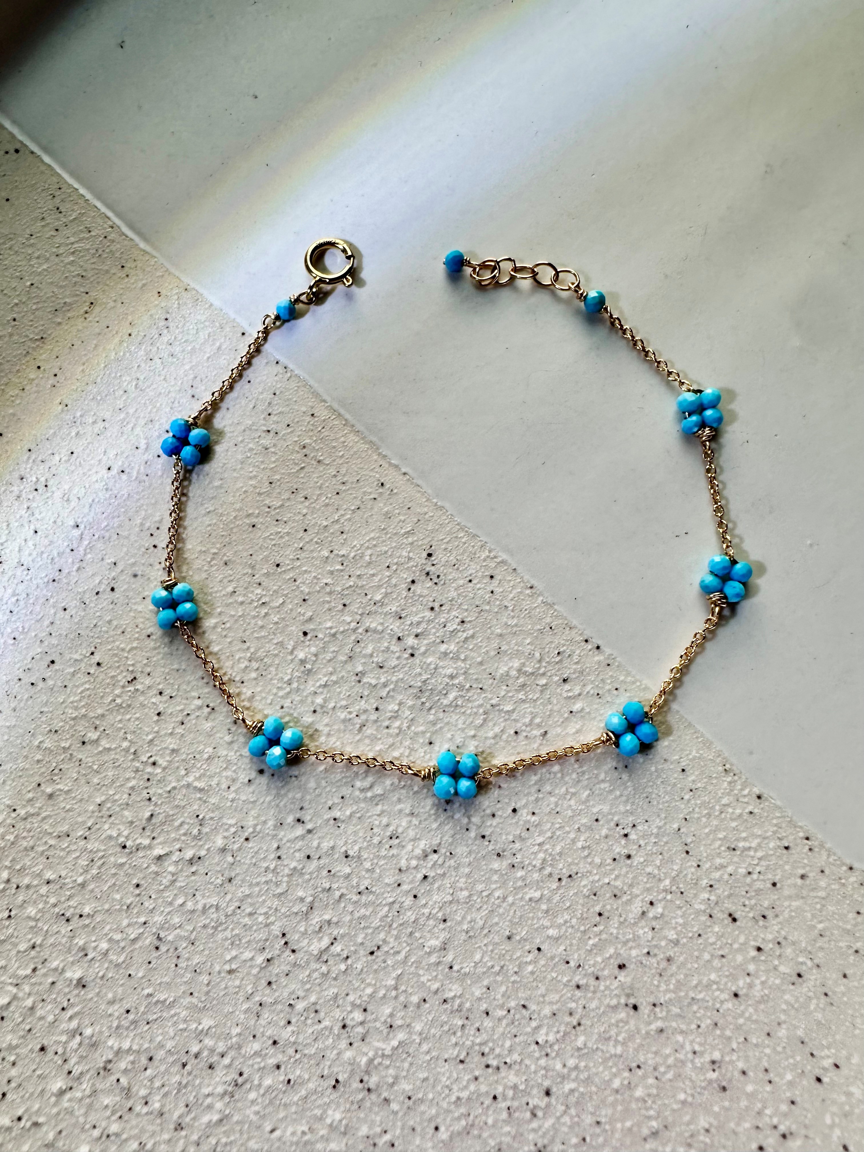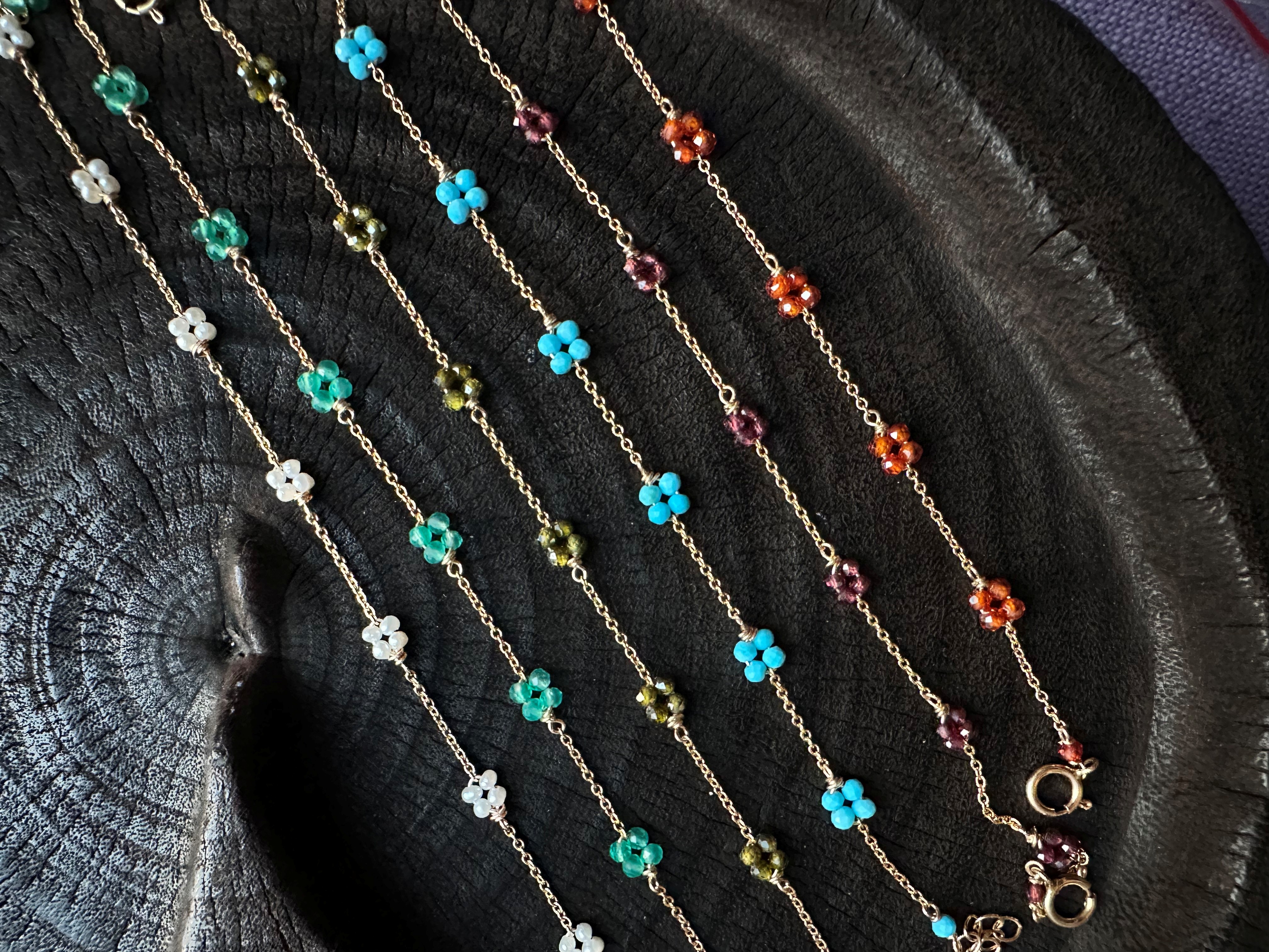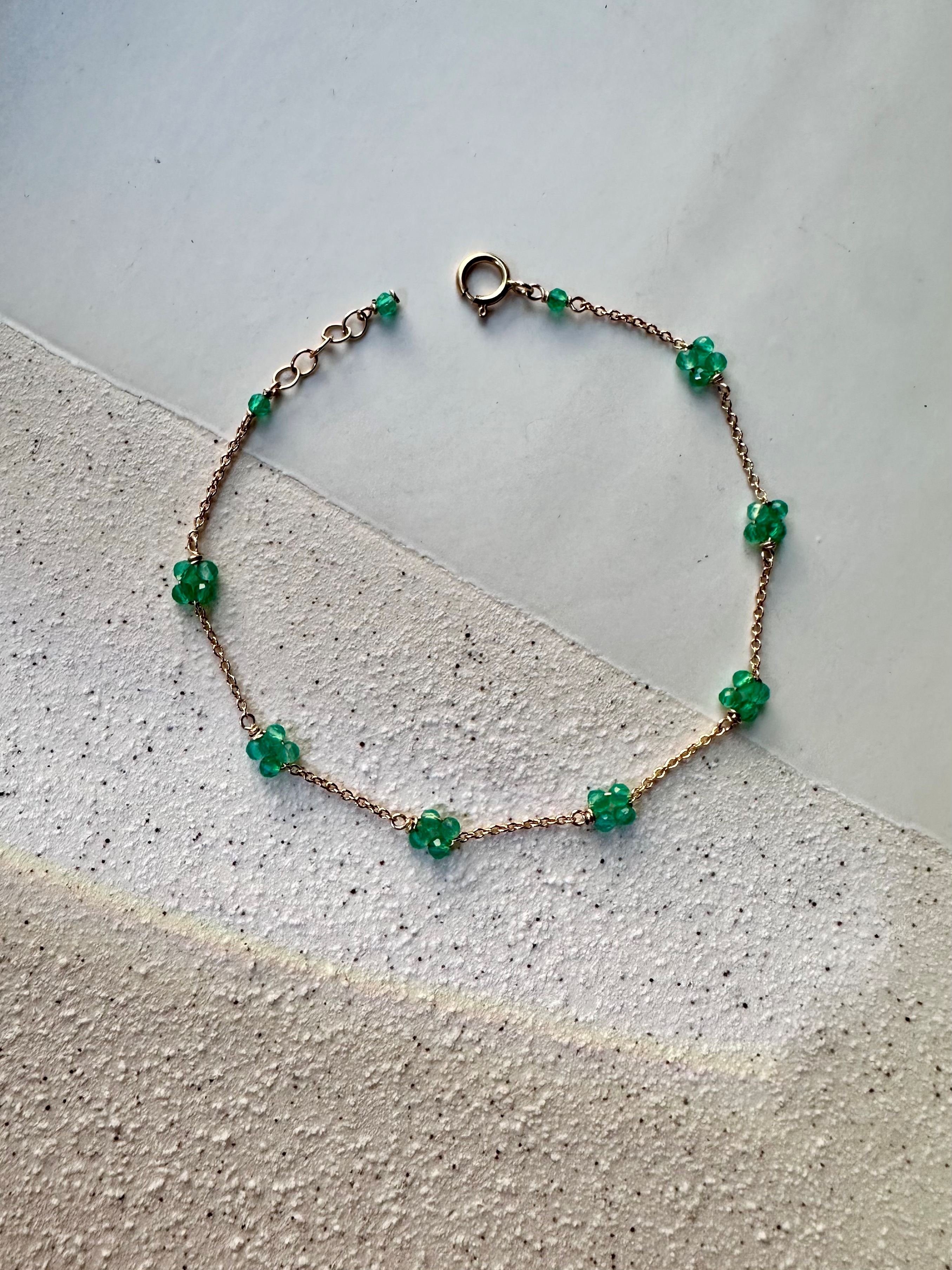 SpoiledBrat Jewelry彩色宝石四瓣小花手链 绿松石 石榴石 绿玉髓 锆石 手链