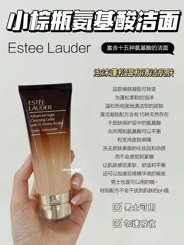 👑雅诗兰黛小棕瓶洗面奶100ml 💚15种氨基酸成分,清洁肌肤根源,锁住水分,唤醒肌肤 👍内含氨基酸可以支持并且平衡皮肤屏障,加速吸收! 💦轻盈蜜状质地清爽不粘腻,绵密泡沫洁净肌肤 ✅让肌肤感到洁净、滋润、无负担 💎男士可用✔️,加速吸收✔️,温和清洁✔️