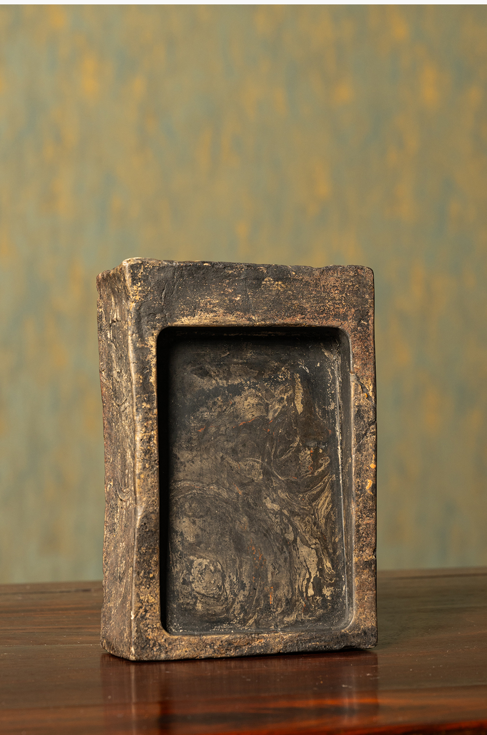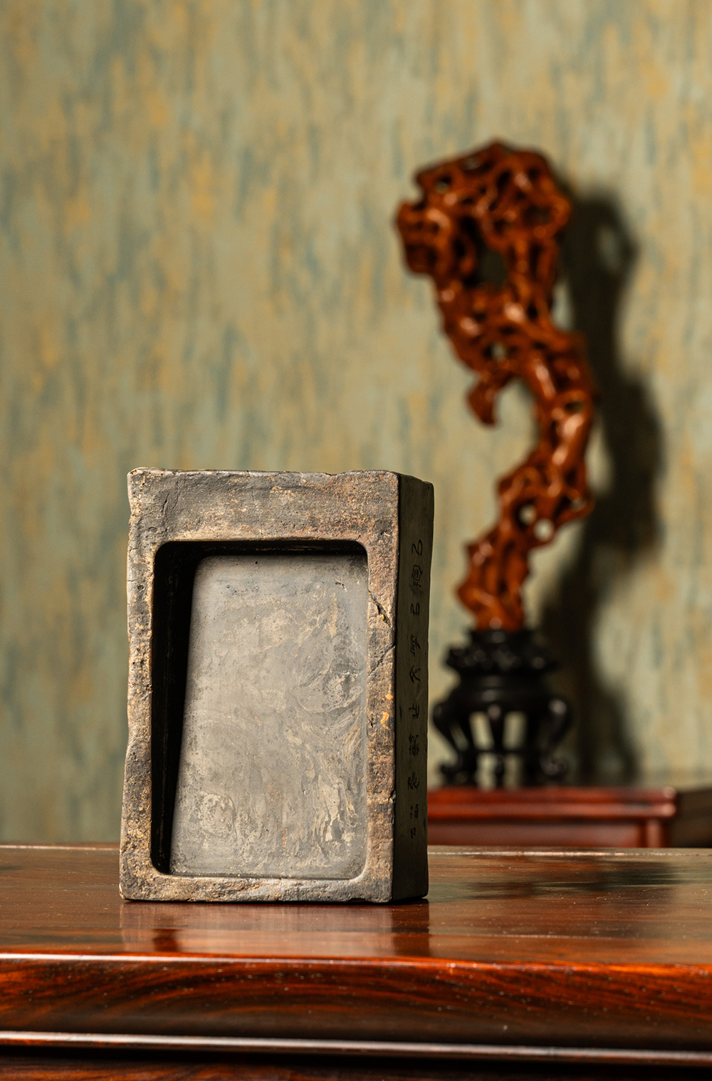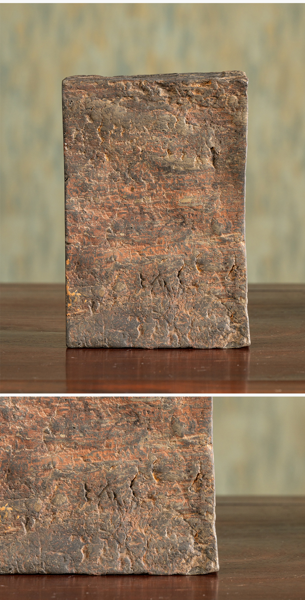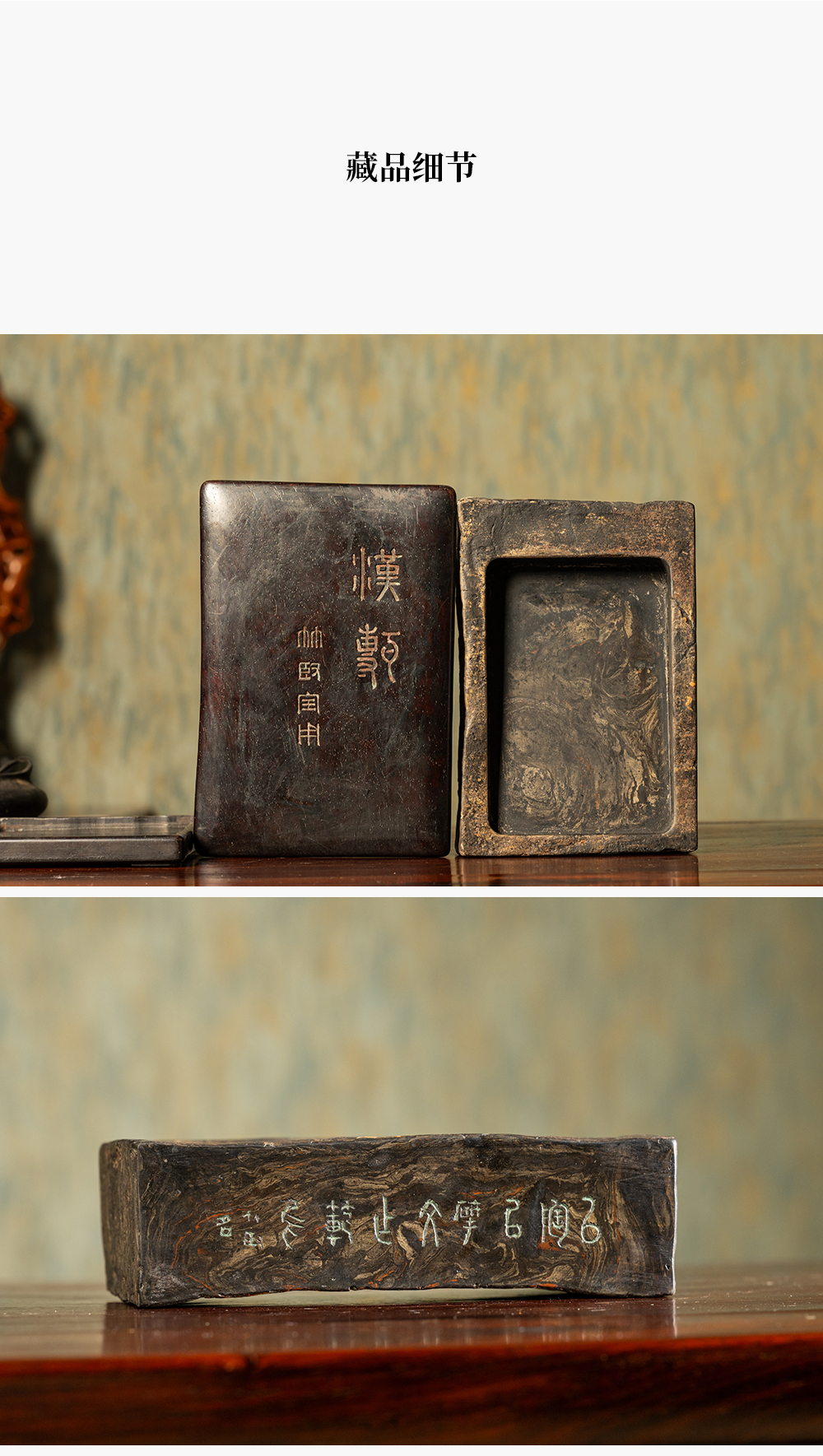清 徐林铭羽人龙纹汉砖长方敞池砚(红木天地盖)