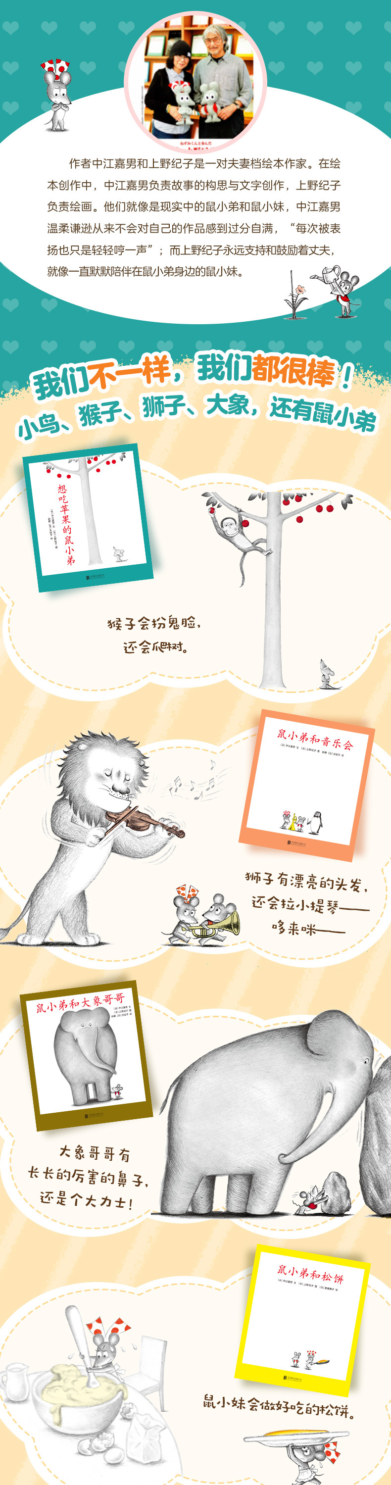 《想吃苹果的鼠小弟》(全8册)让孩子成为心存热爱,善良谦逊的人。我们的人生充满各种可能,大家都不同,大家都很棒。