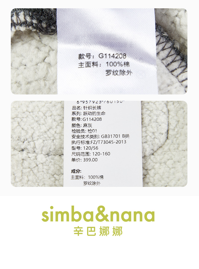 【辛巴娜娜】simbanana【大童】女童裤冬装新款纯色拼接中大儿童运动裤潮