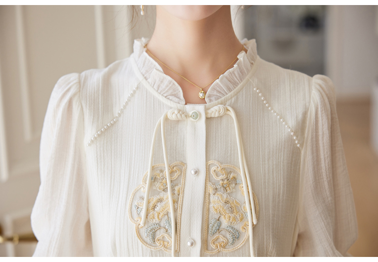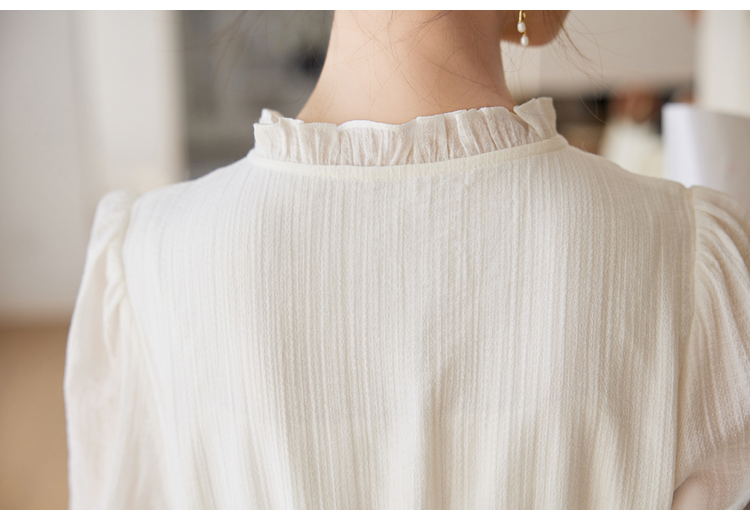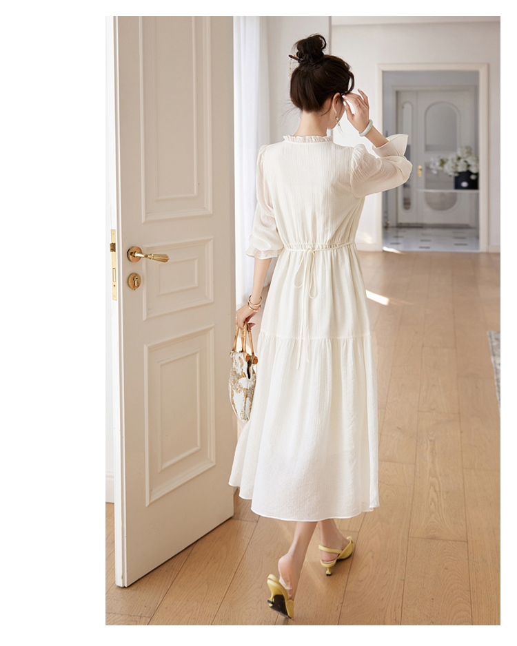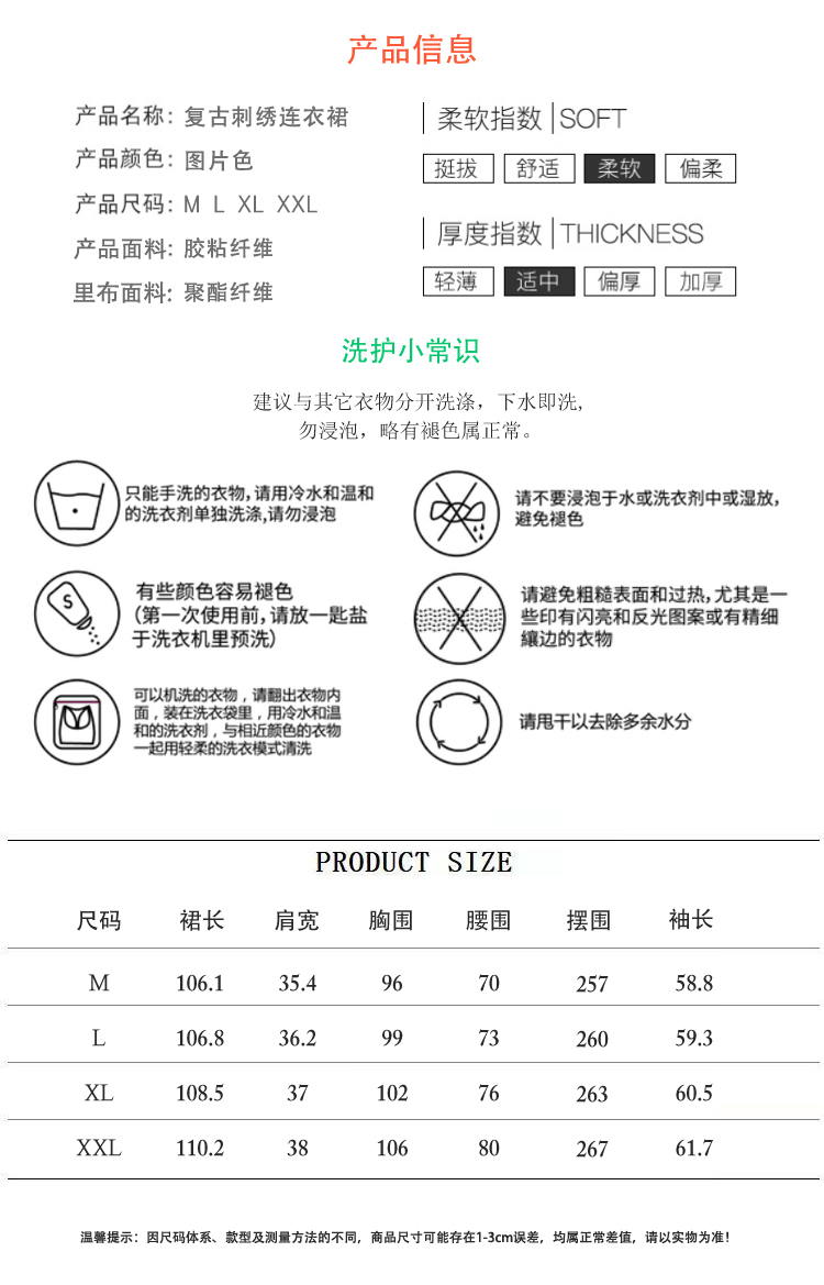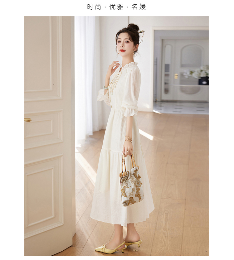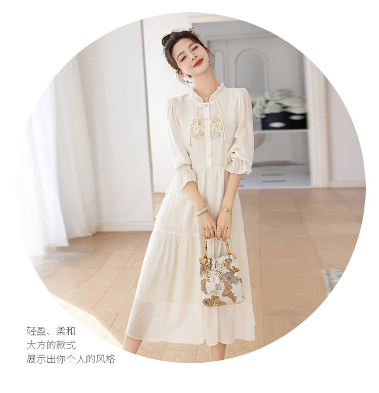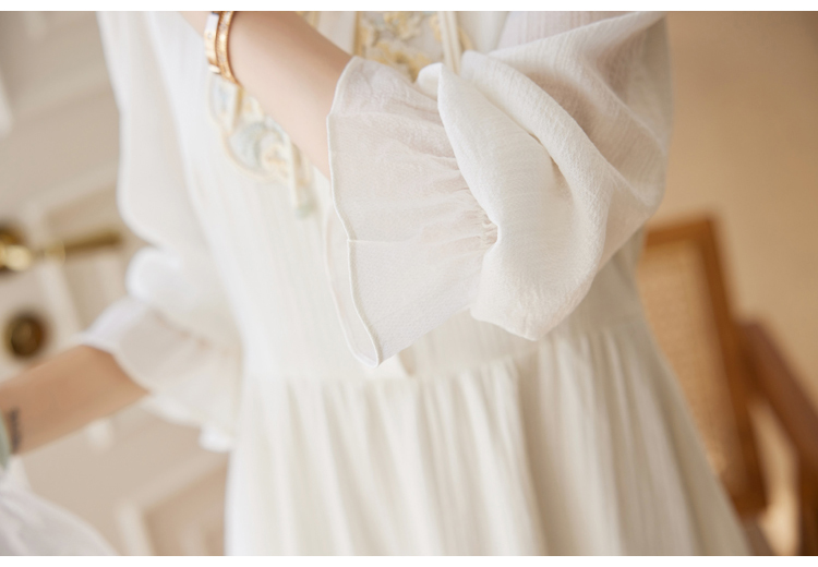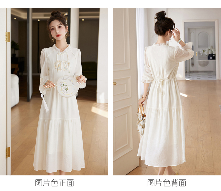 复古改良木耳边领,刺绣泡泡袖长款连衣裙HR-QIXFS2403L
