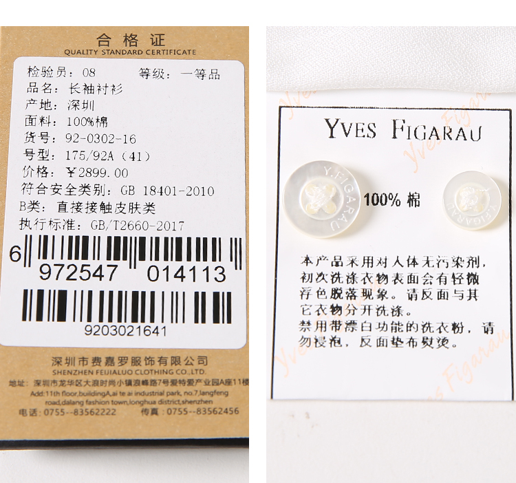 YvesFigarau伊夫·费嘉罗100%棉正装长袖衬衫920302