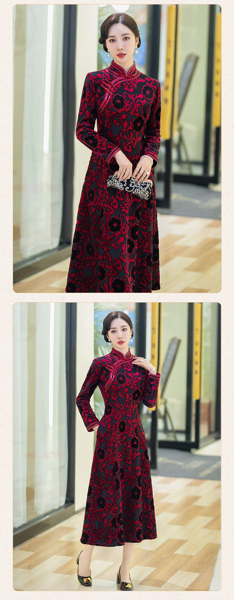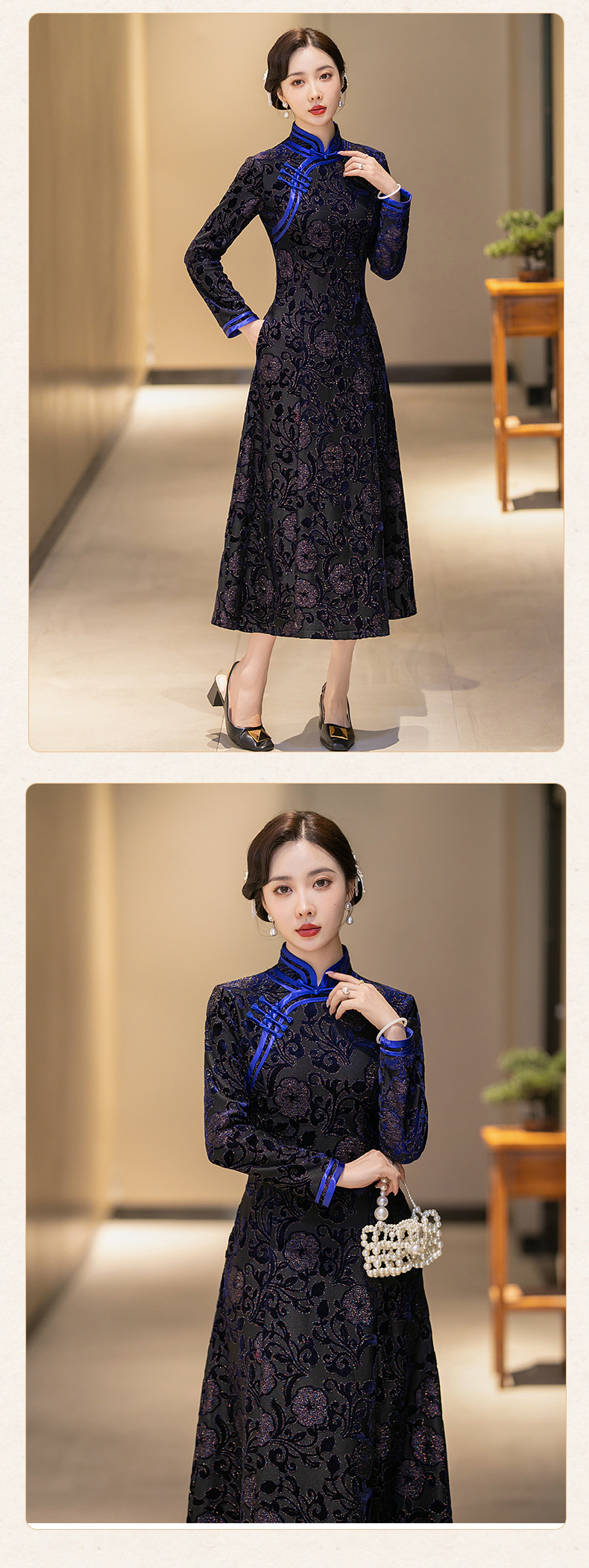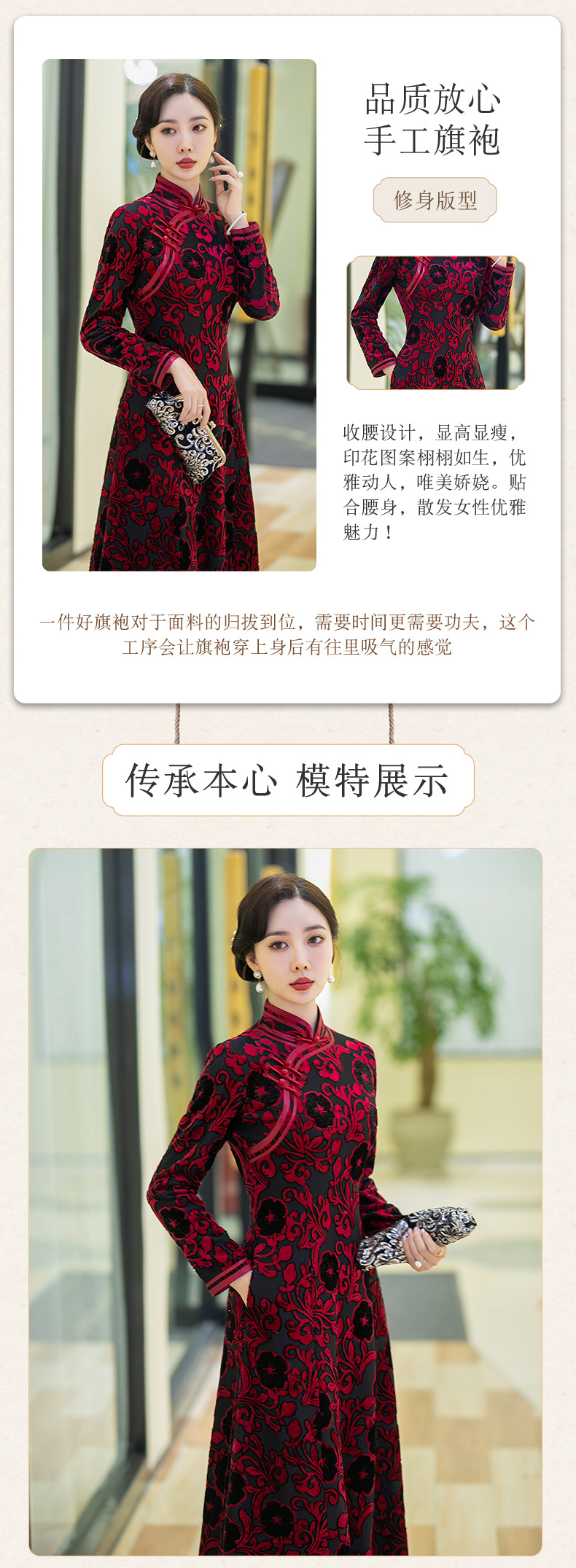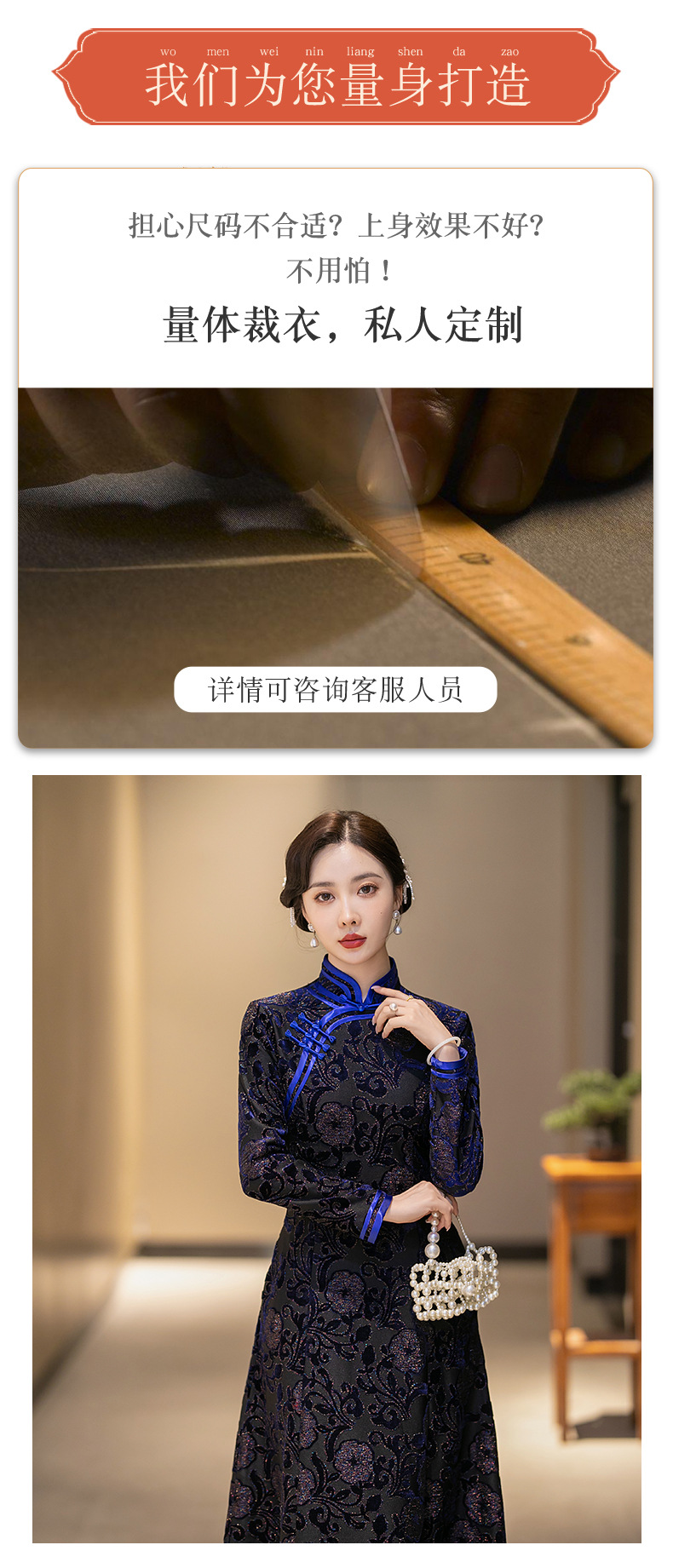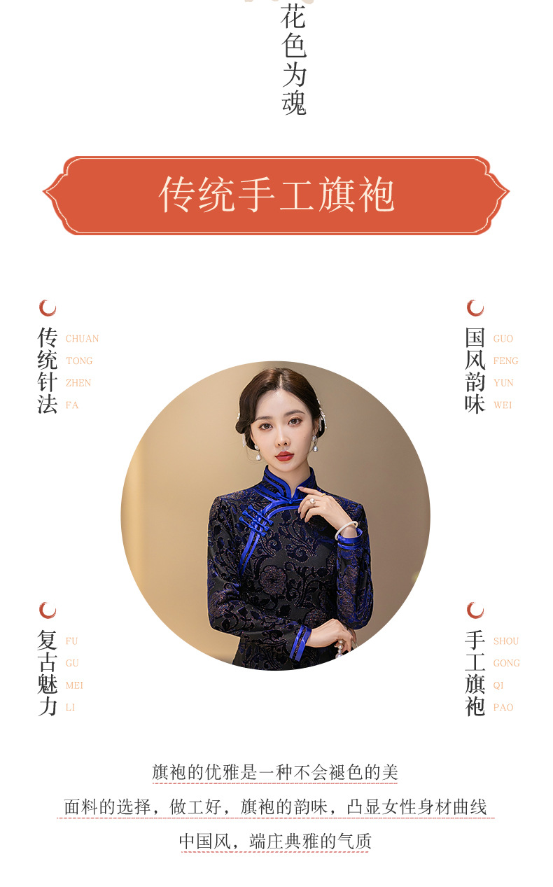 【预售5天】加绒加厚冬装国风新中式长袖旗袍改良年轻款复古旗袍13541