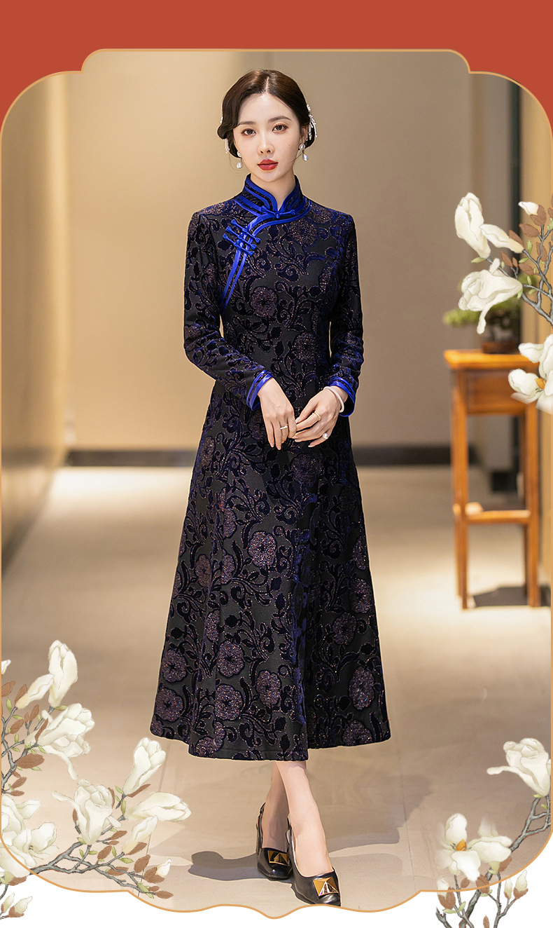 新中式高贵冬天加厚加绒连衣裙长袖SYG751