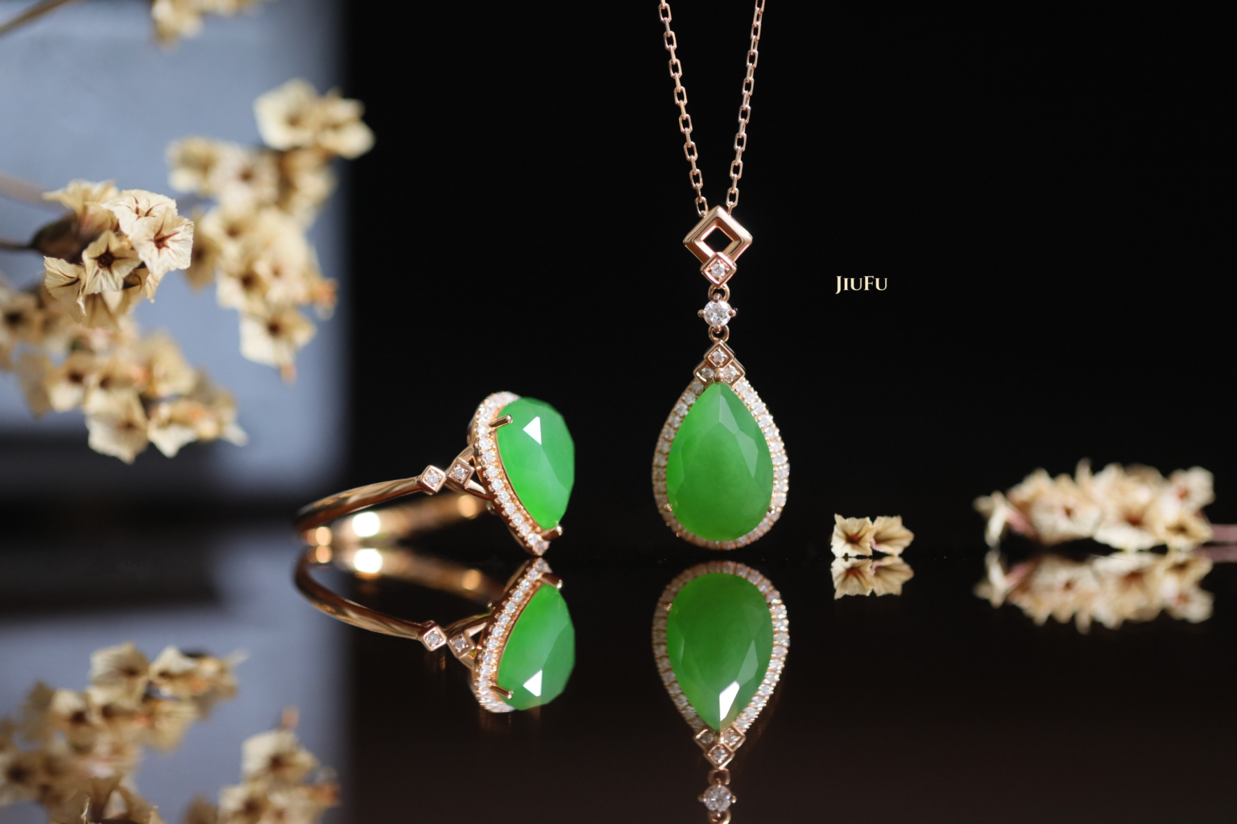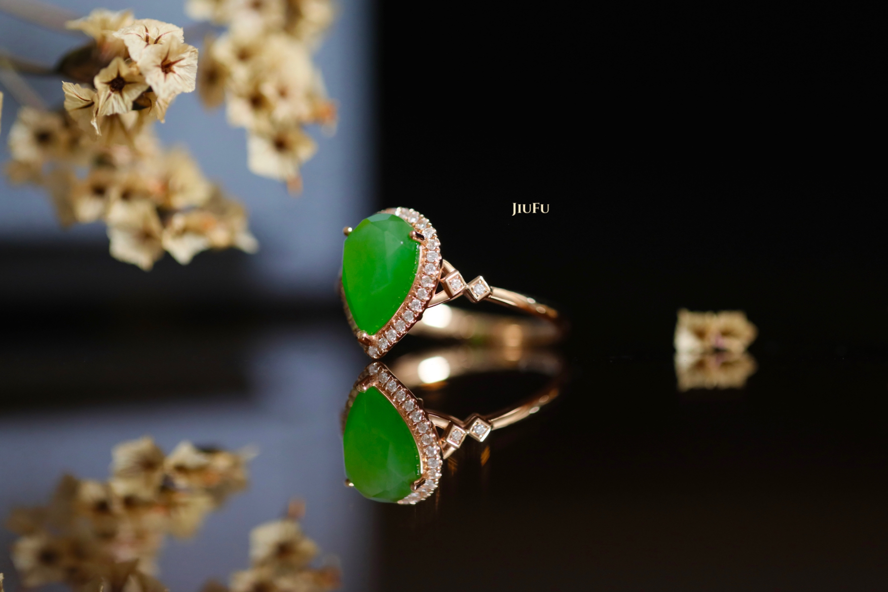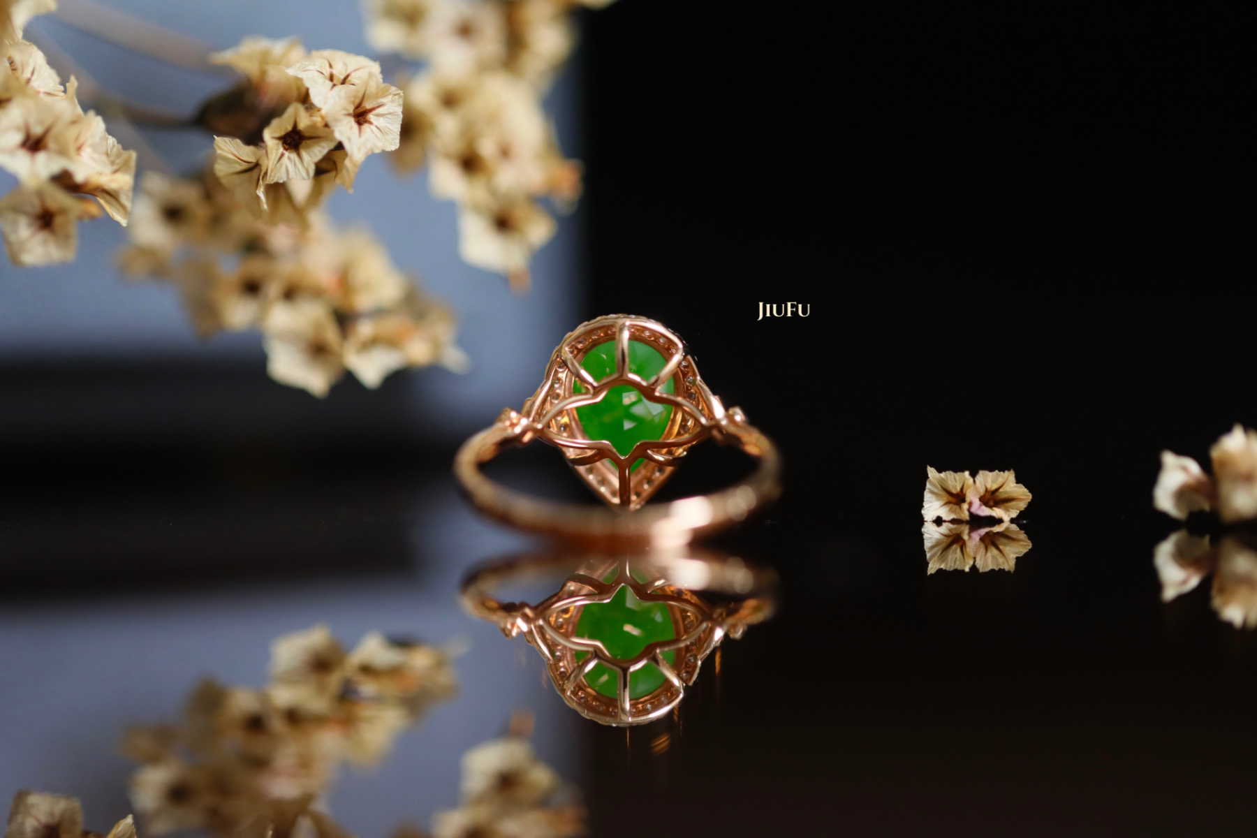 18K玫瑰金和田玉(碧玉)戒指