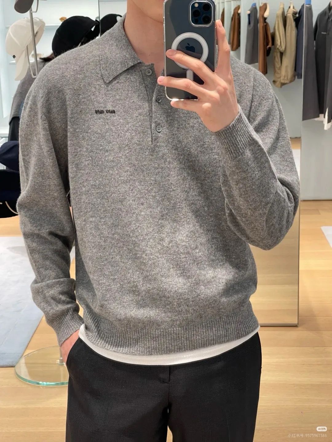 灰色调自带膏级感,精致纽扣+低调品牌标识,细节里全是品质感,单穿慵懒、叠穿时髦,轻松穿出法式松弛氛围