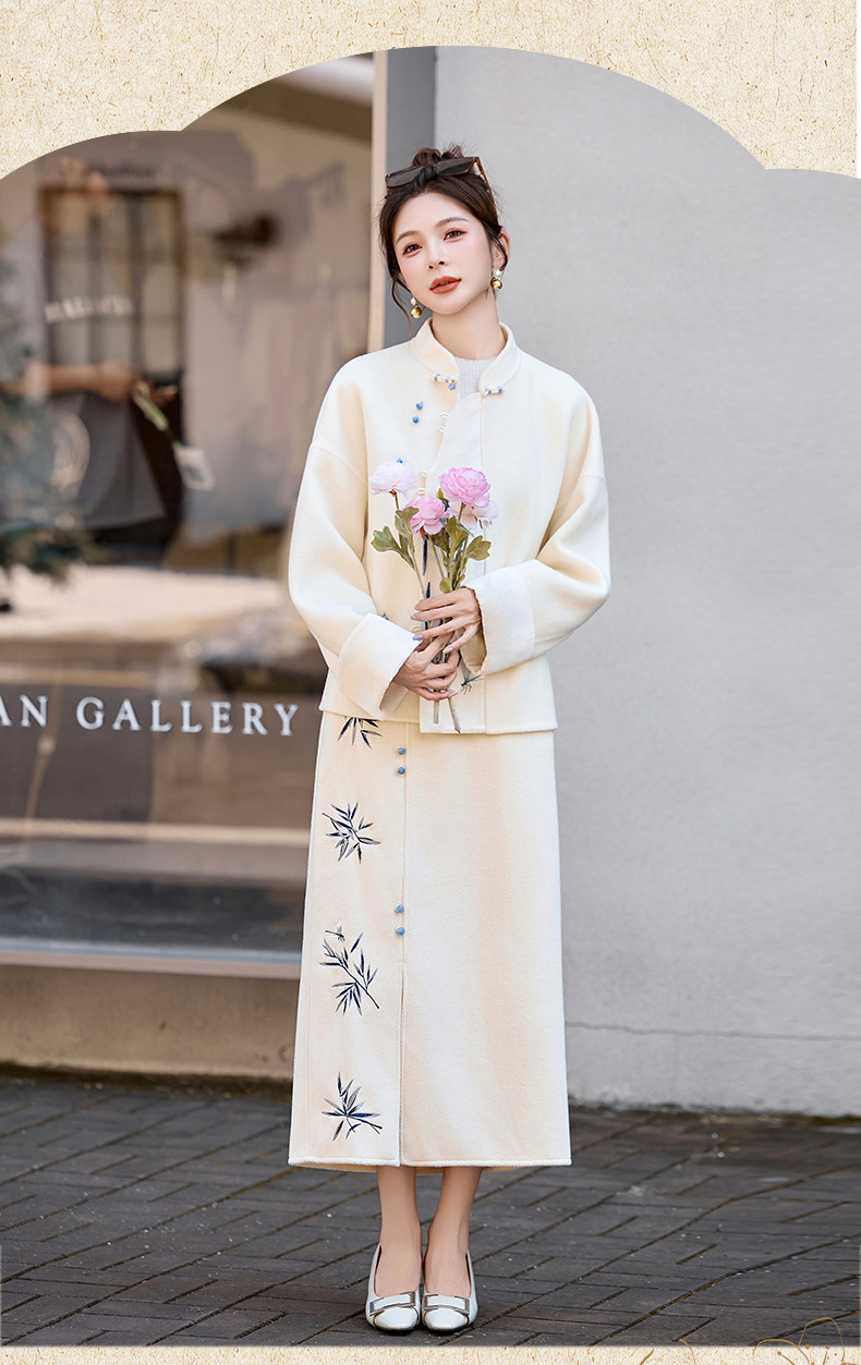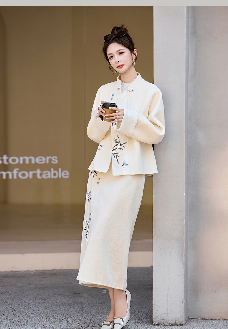HR ZMFS25919时尚套装裙气质撞色拼接V领西装半身裙两件套 商品图1