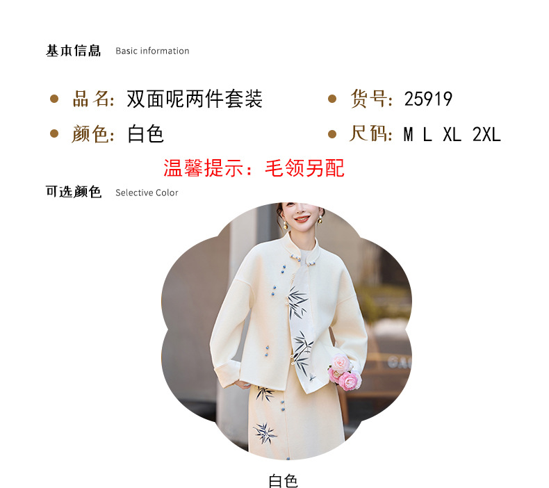 HR ZMFS25919时尚套装裙气质撞色拼接V领西装半身裙两件套 商品图0
