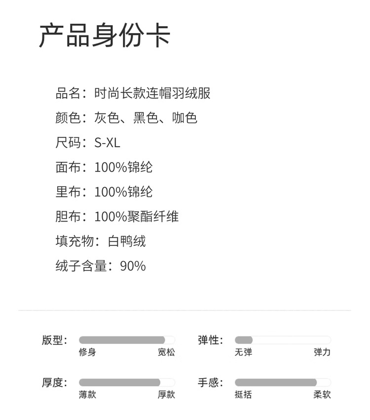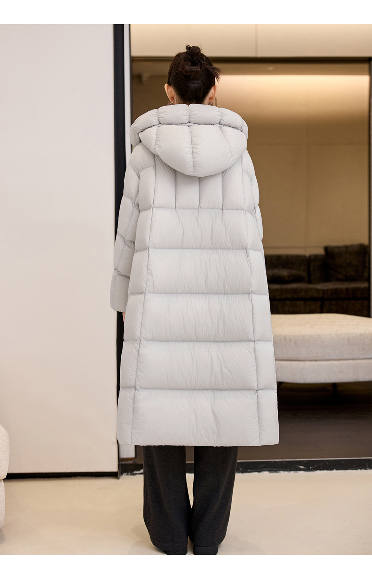 ASE 7759时尚长款羽绒服显瘦连帽过膝纯色时尚简约厚外套 商品图3