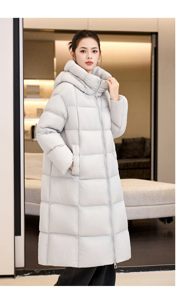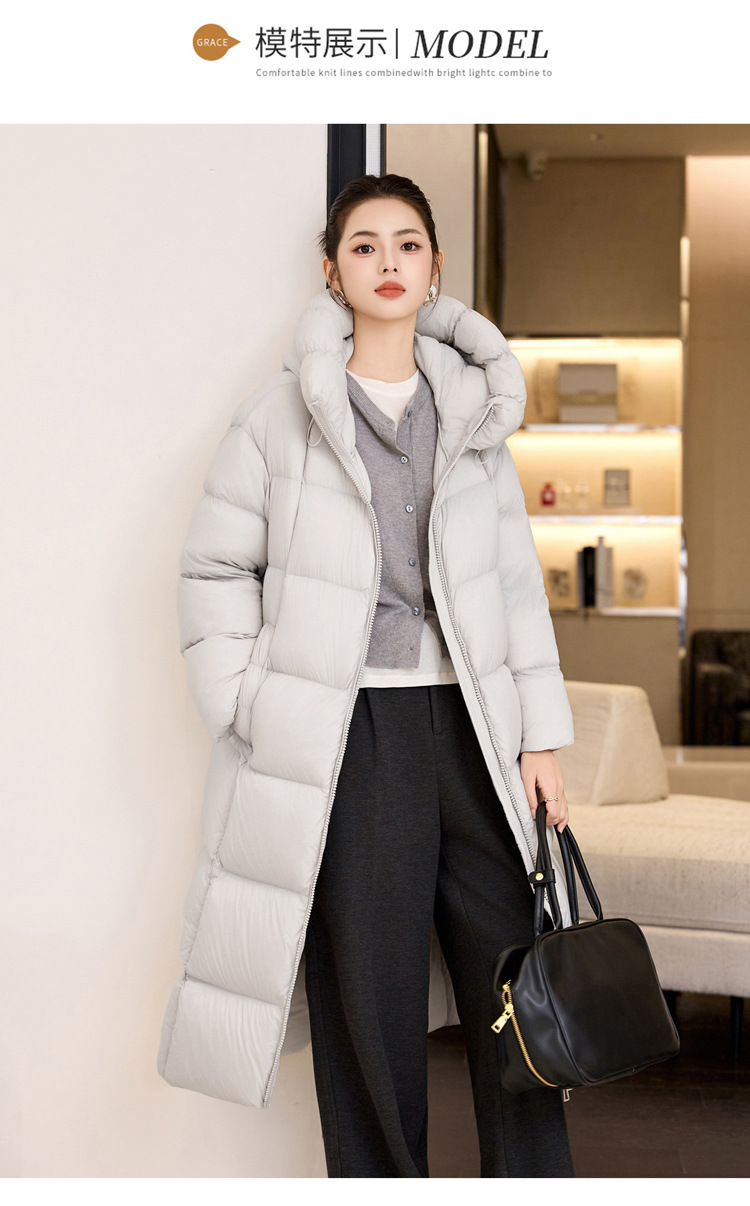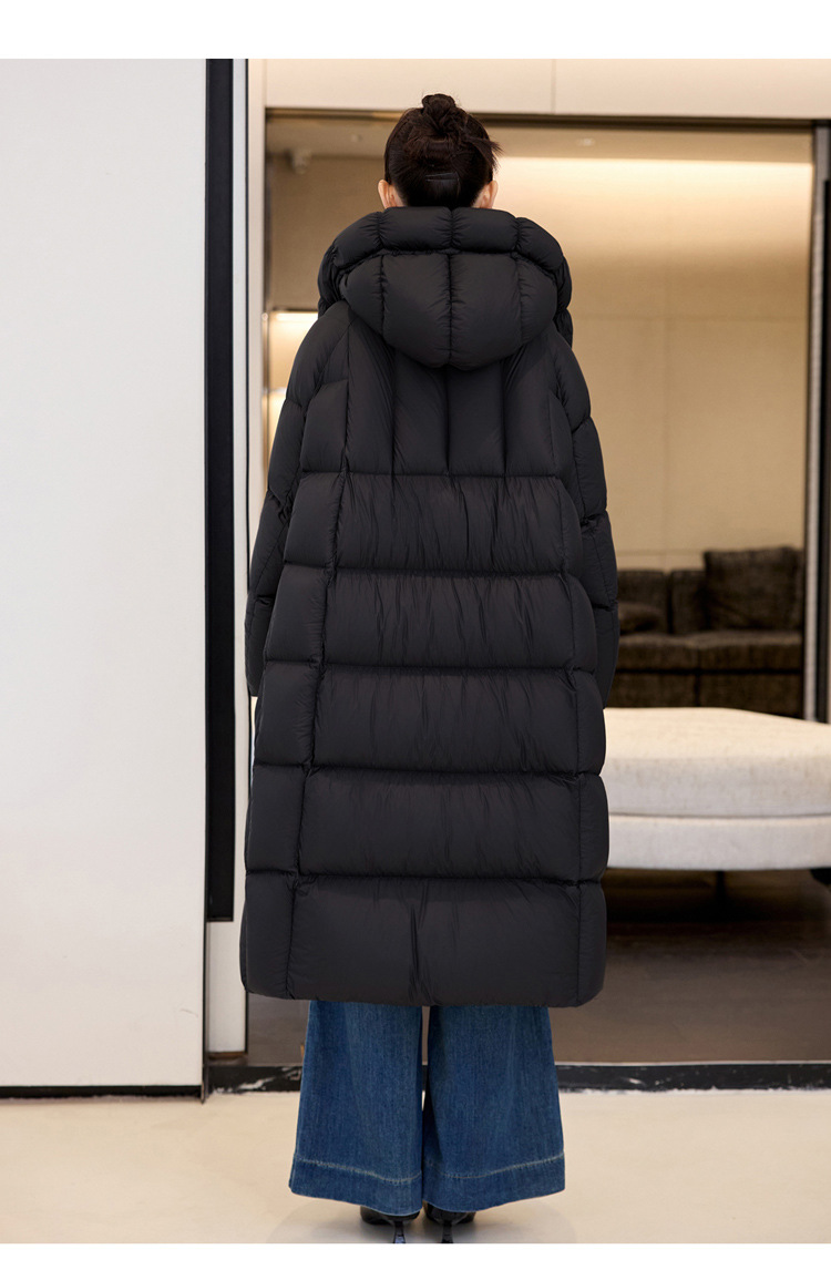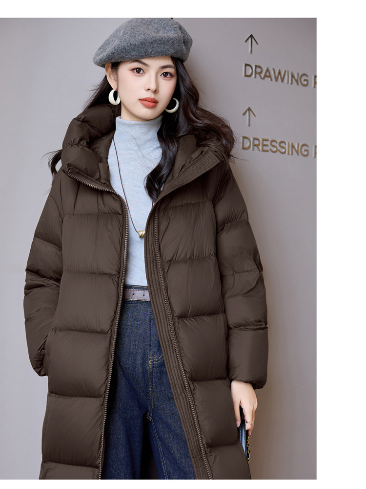 ASE 7759时尚长款羽绒服显瘦连帽过膝纯色时尚简约厚外套 商品图2