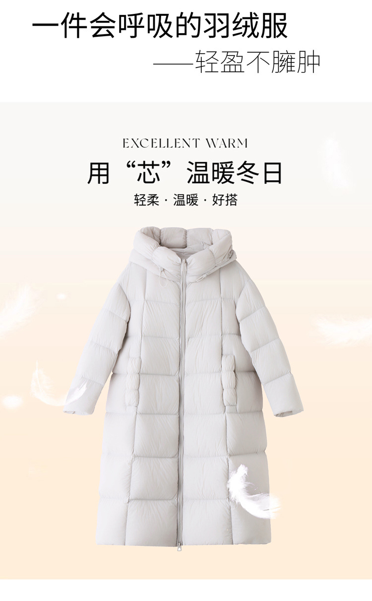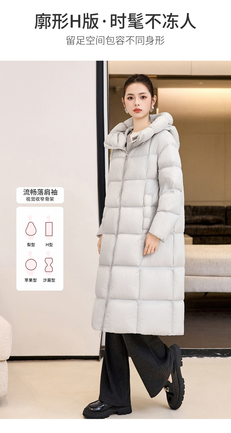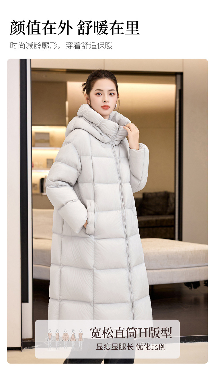 ASE 7759时尚长款羽绒服显瘦连帽过膝纯色时尚简约厚外套 商品图2