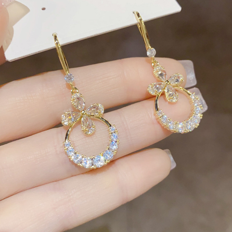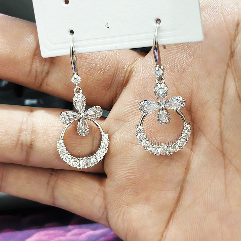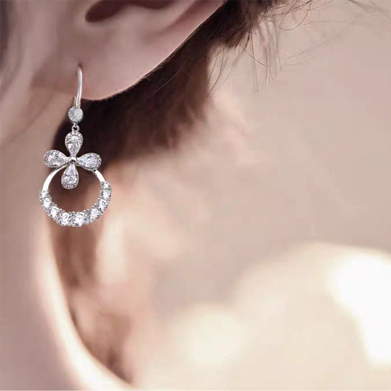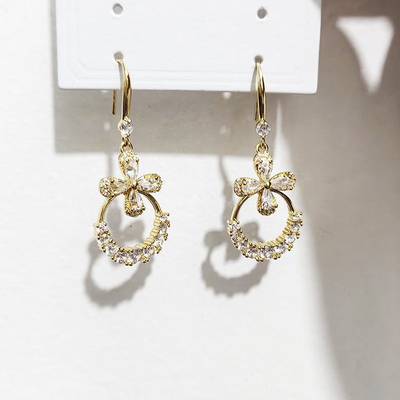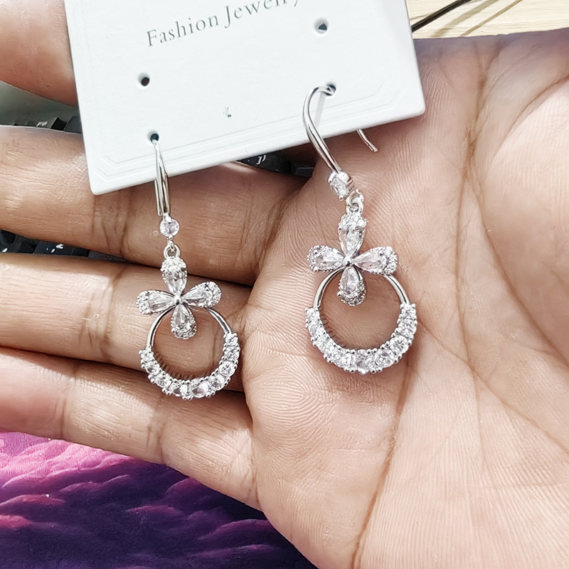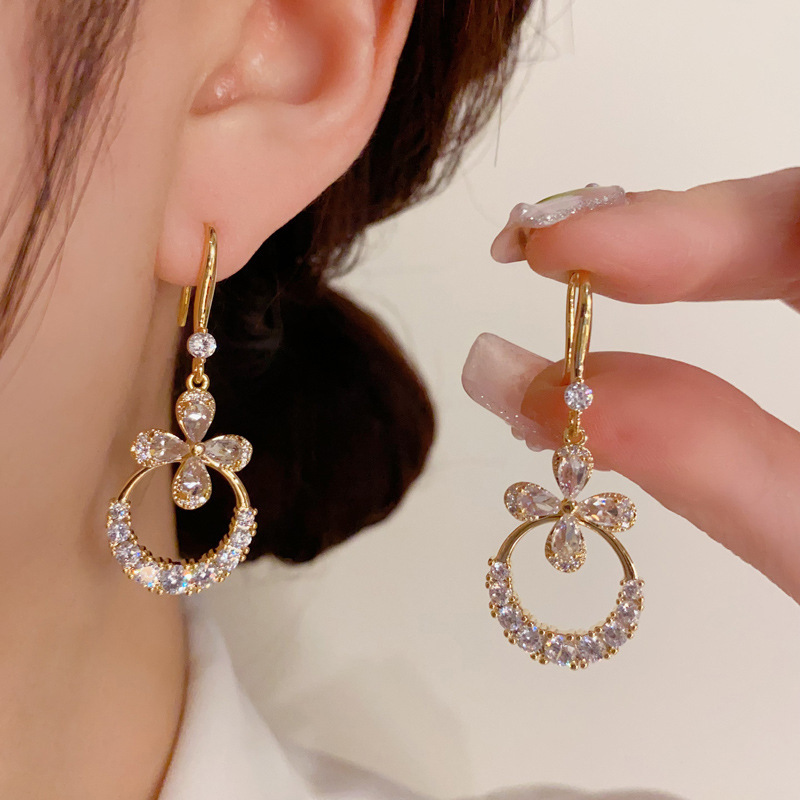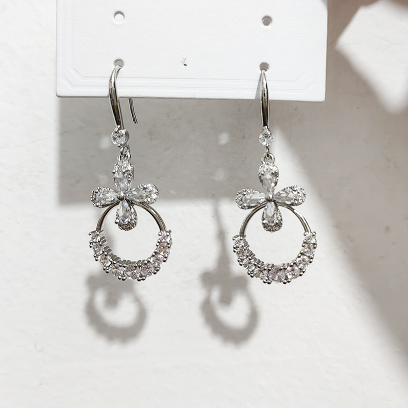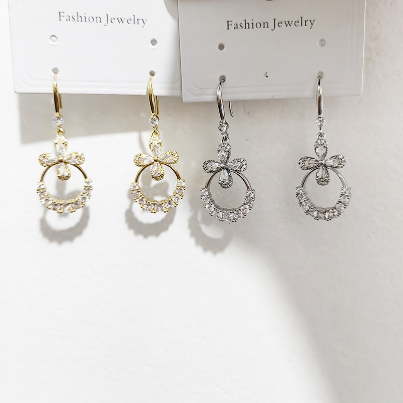 JU-362个性气质高级感轻奢锆石花朵耳环女2024新款长款时尚耳钩欧美耳饰