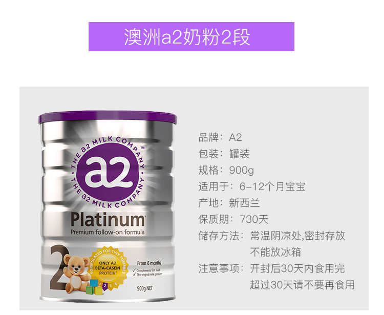 【海外直邮】【预售 新澳直邮】A2白金系列婴幼儿奶粉 900g*6/箱