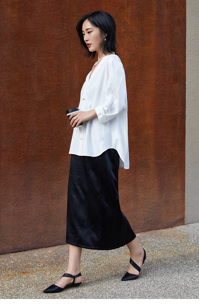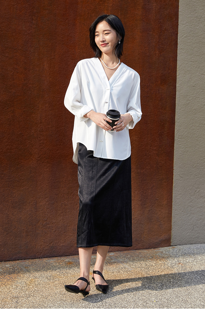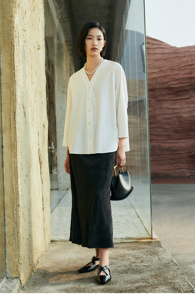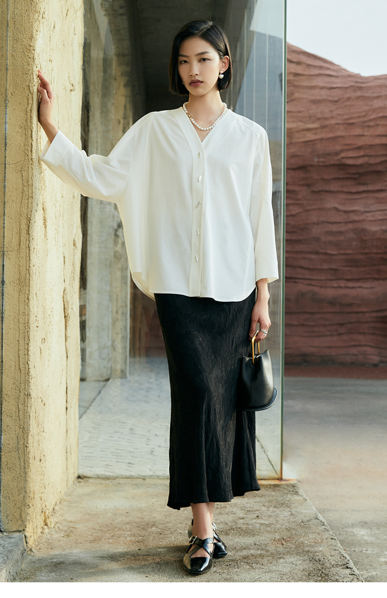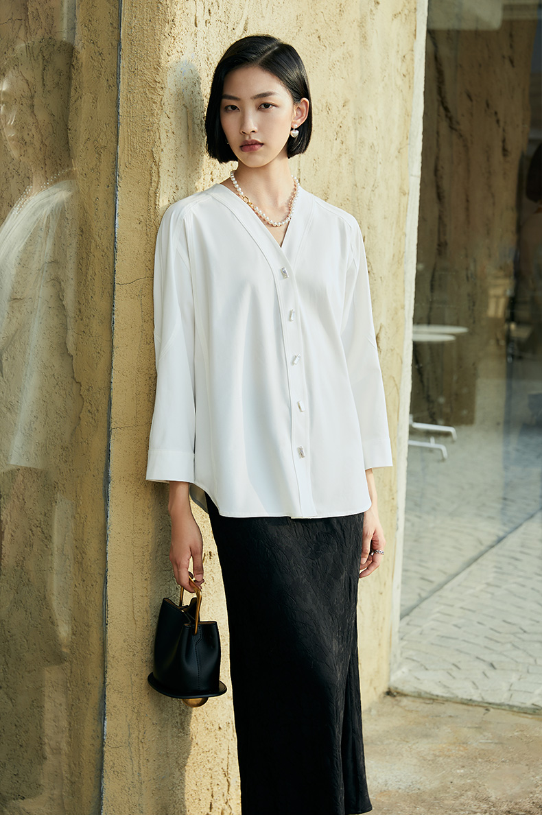 中式禅意!白色 V 领盘扣衬衫女 2025 新款宽松不规则下摆上衣