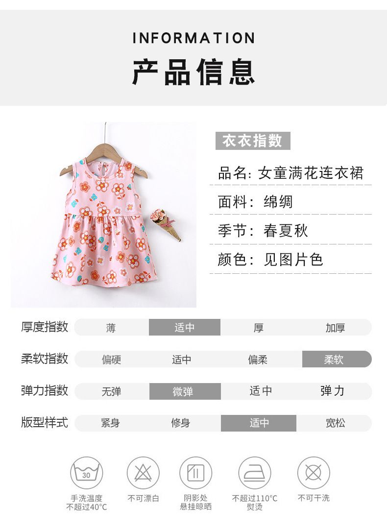 【满花设计,简约萌趣】女童公主裙 夏季新款 中小童连衣裙 韩版绵绸背心裙 女宝宝洋气吊带裙-QQ