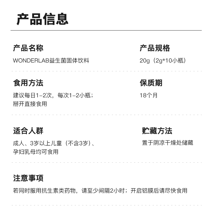 WONDERLAB益生菌固体饮料/1盒(2g*10小瓶)(已过半保)生产日期:25年1月补单专用