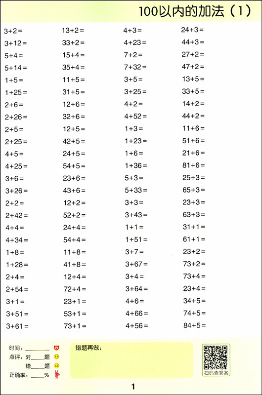 全横式每天100道口算题卡 二年级上册 计时测评】 彩绘版开明出版社