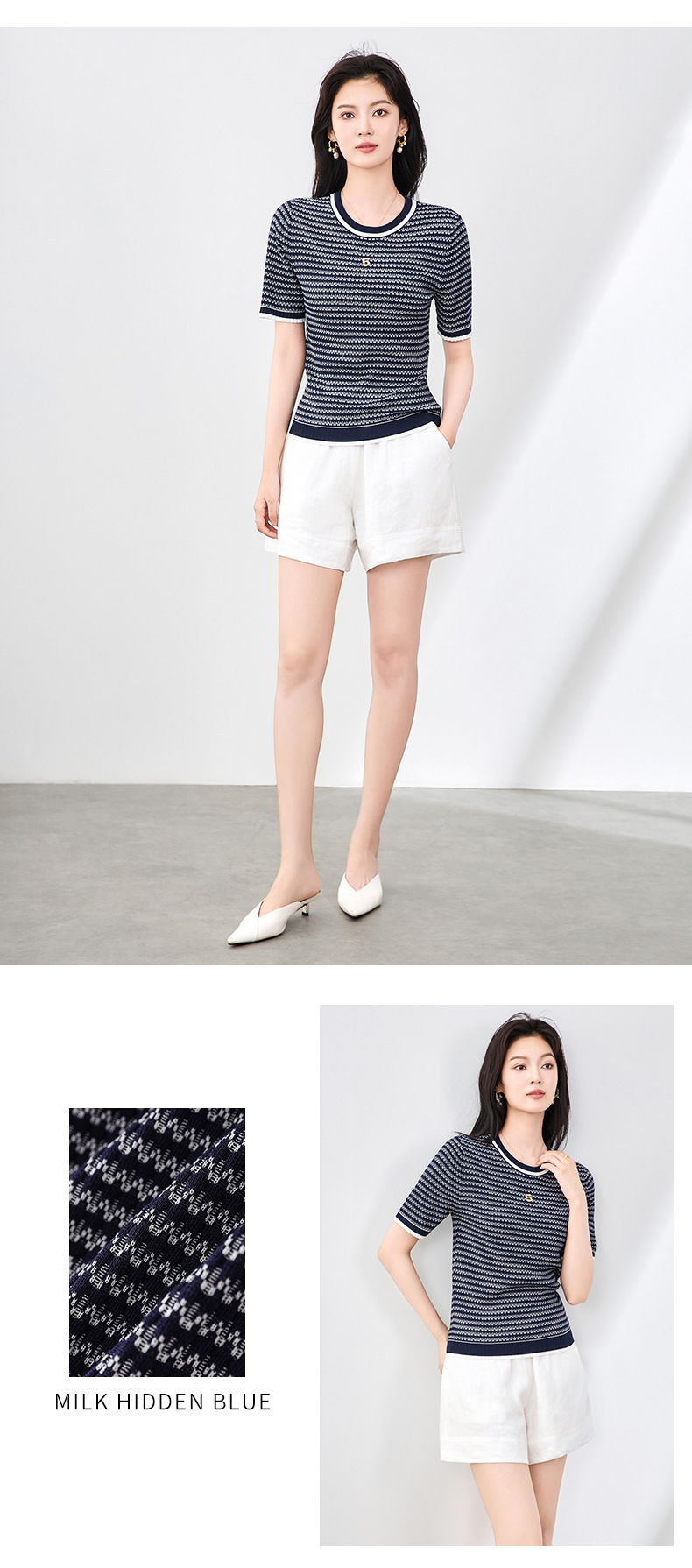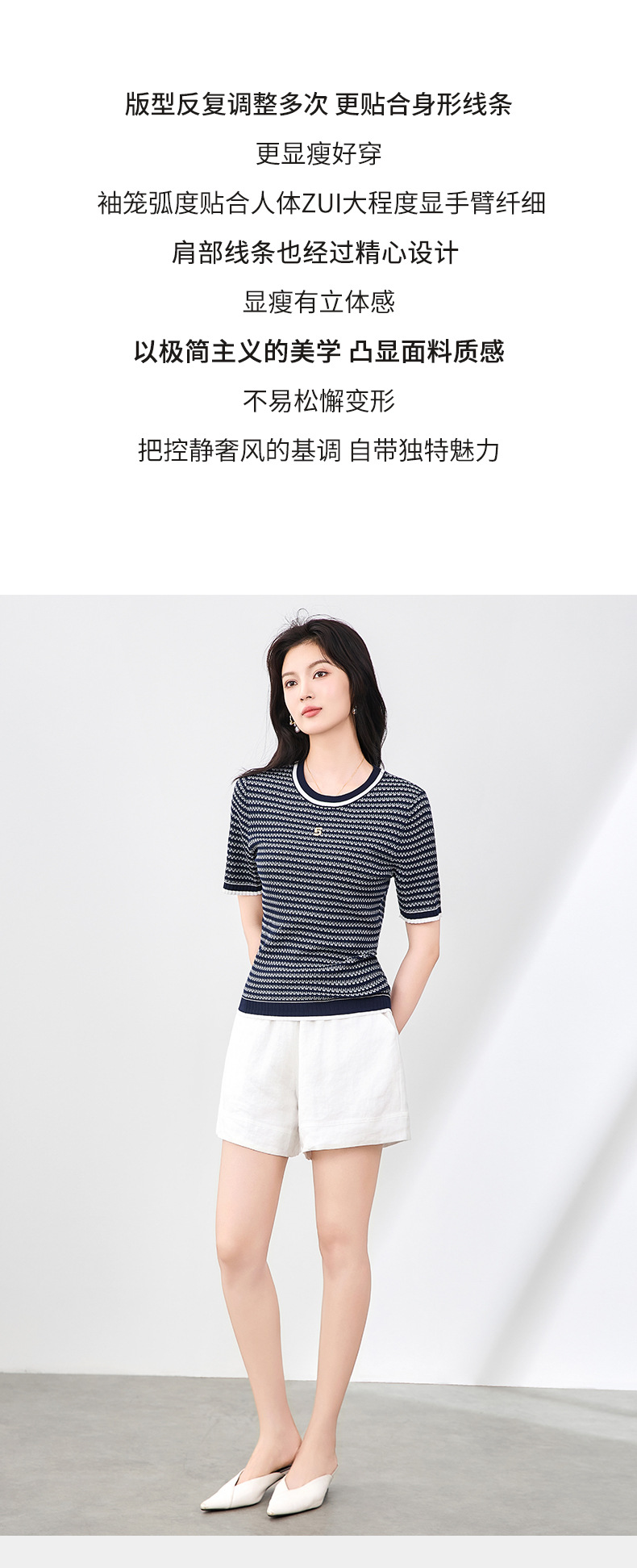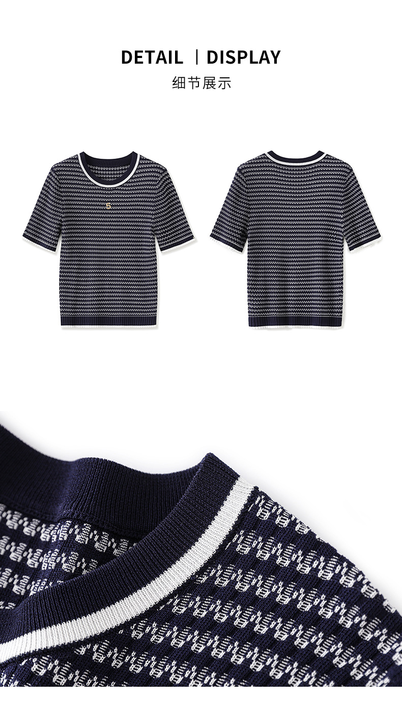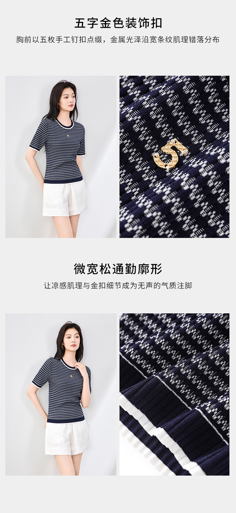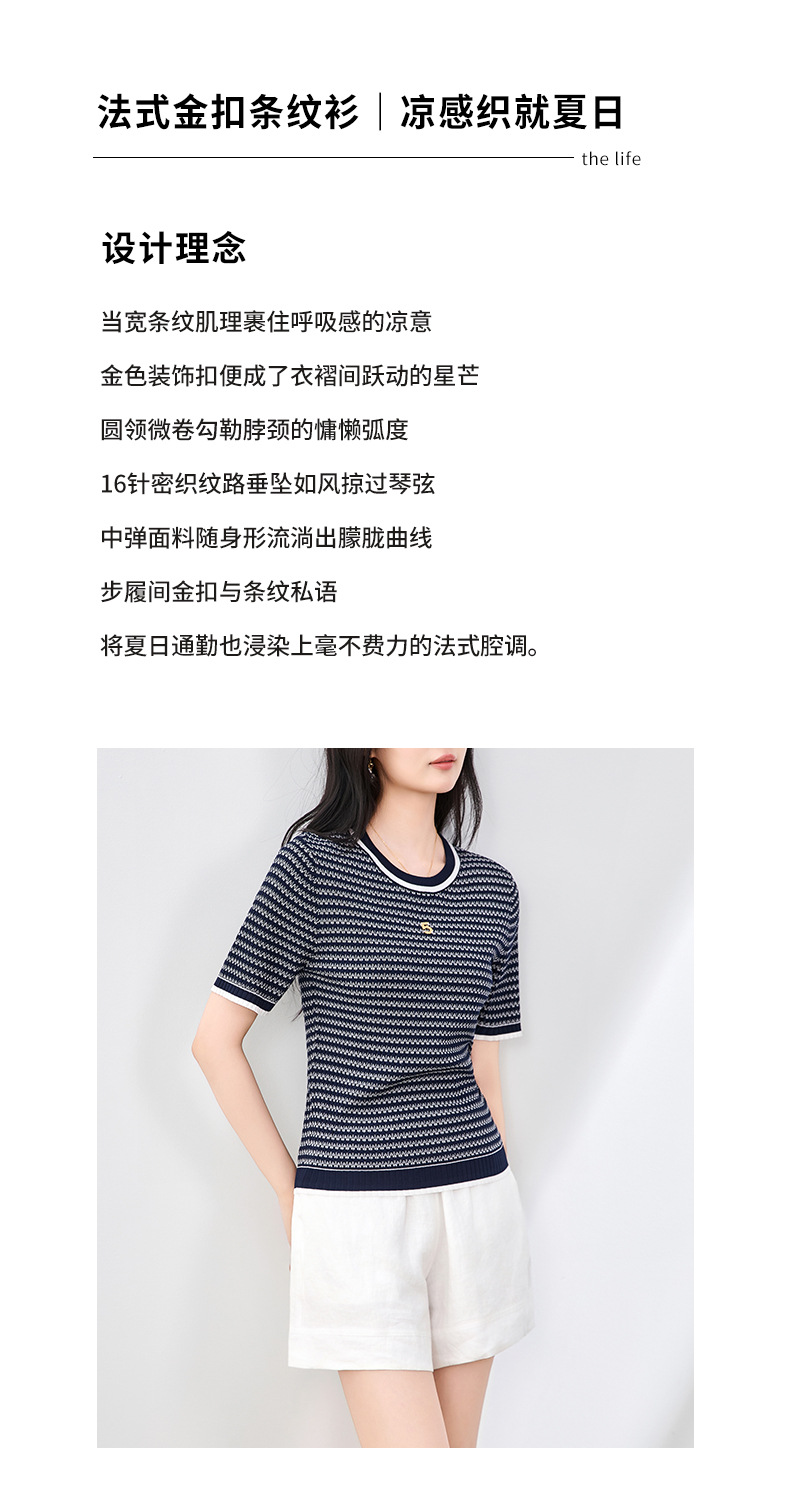 「高货wl」全新升级【铂金会员211/天猫279/差价68】(93509)洛诗琳兰精天丝凉感条纹T恤2025夏季小香风字针织上衣女
