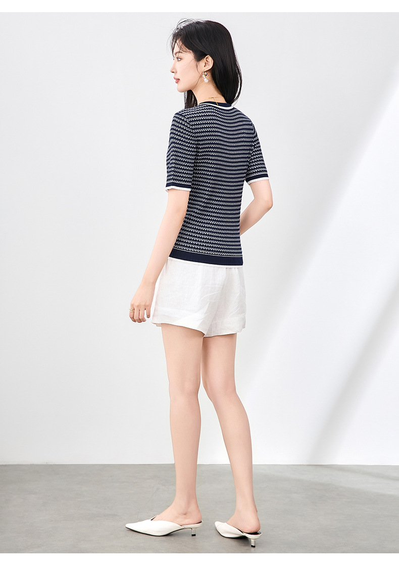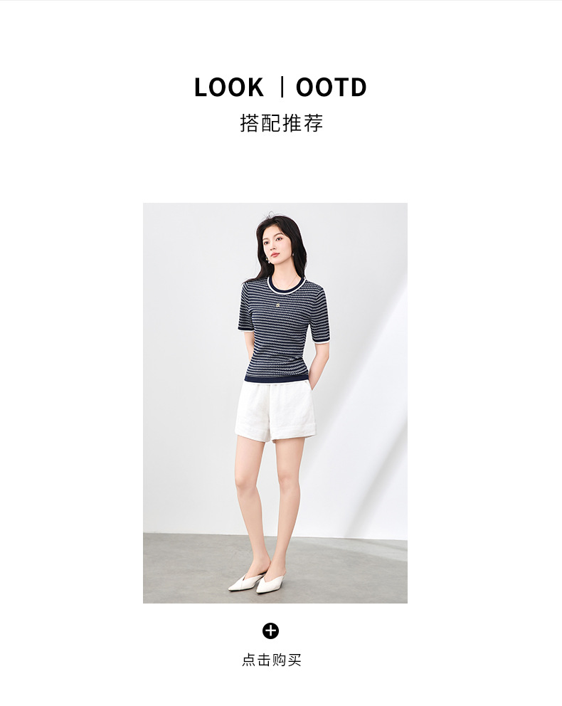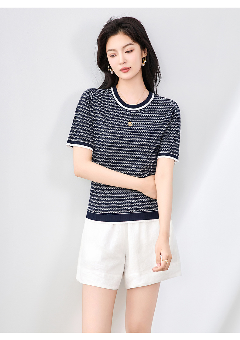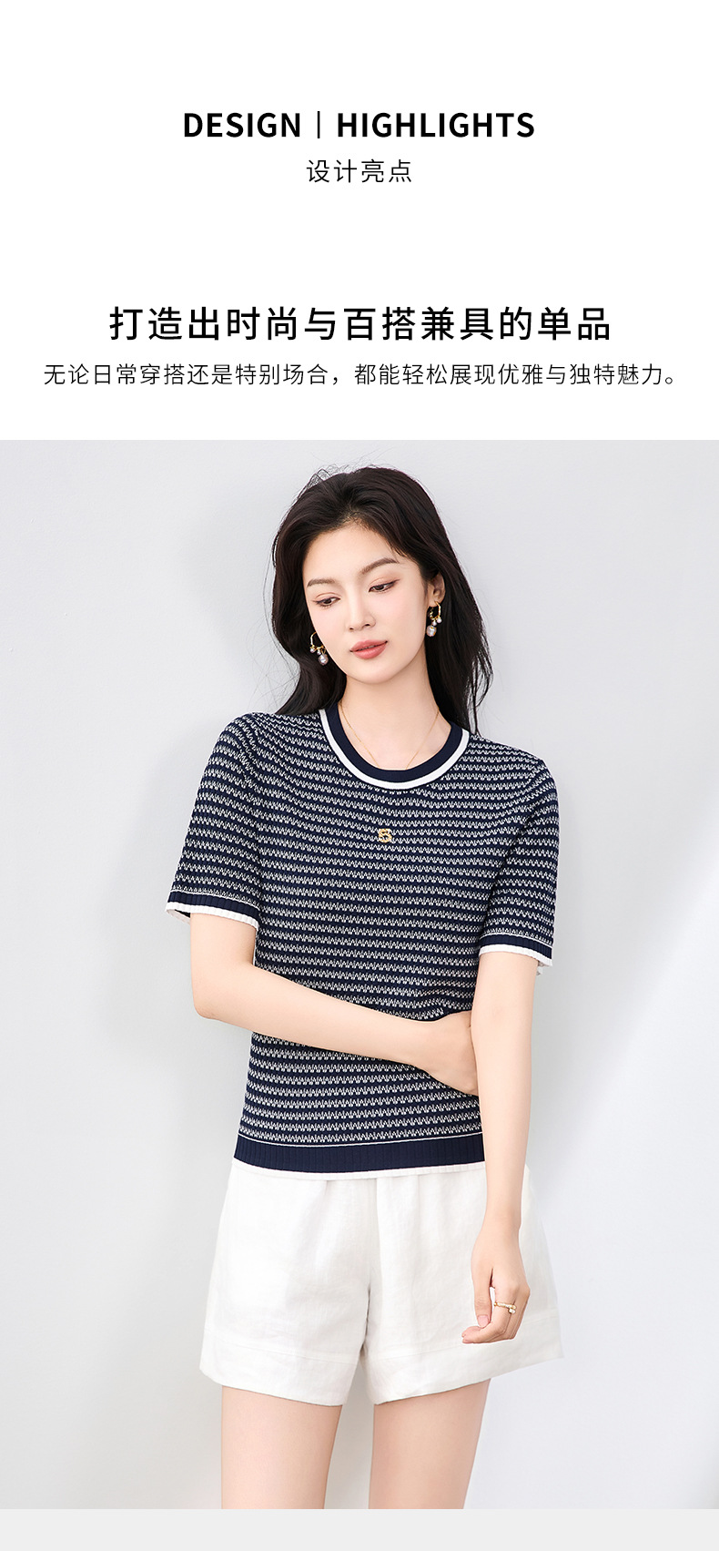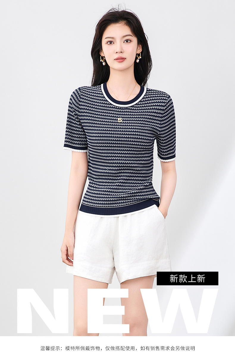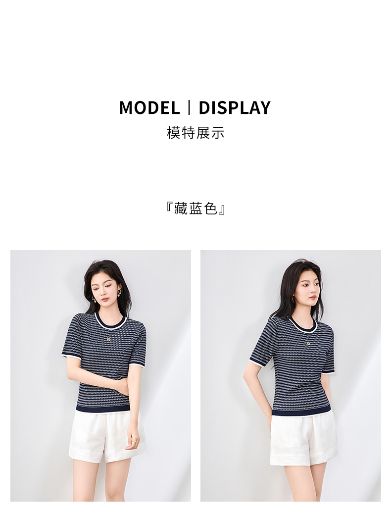 「高货wl」全新升级【铂金会员211/天猫279/差价68】(93509)洛诗琳兰精天丝凉感条纹T恤2025夏季小香风字针织上衣女