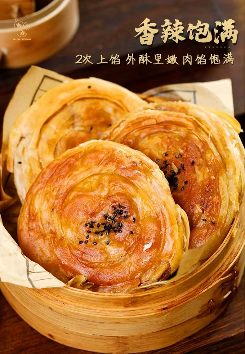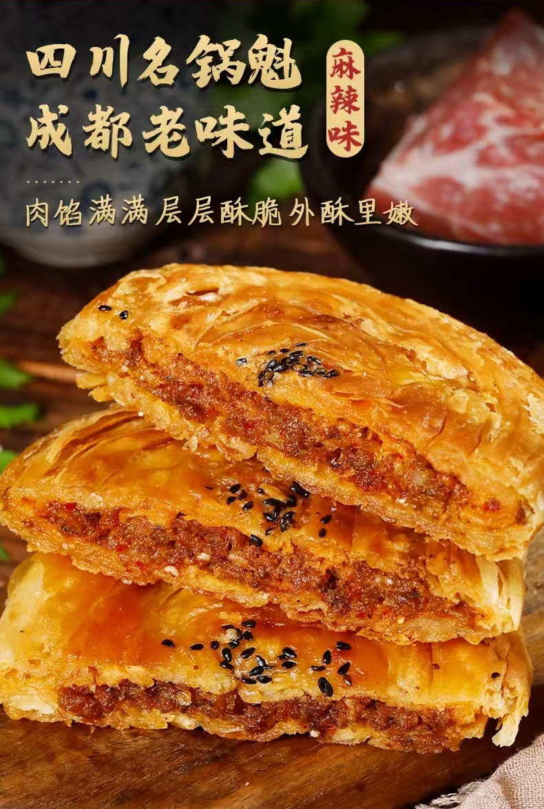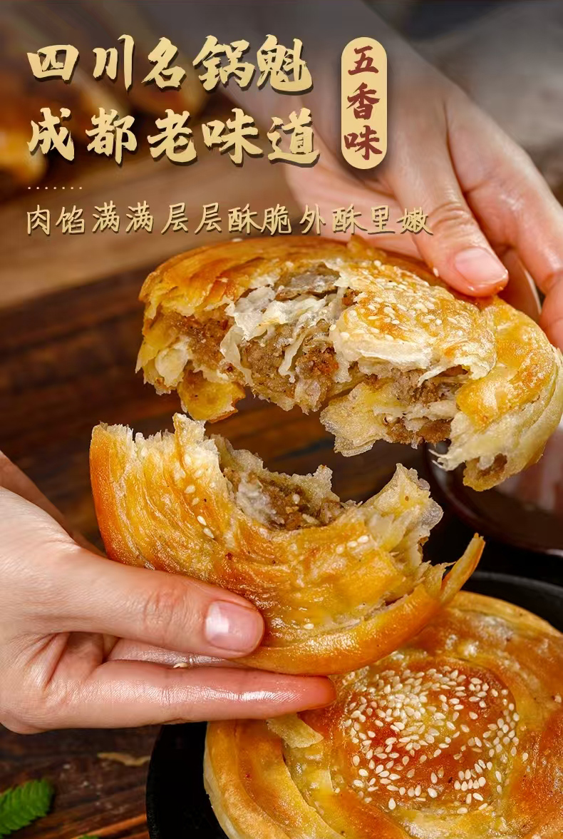 古蜀味道军屯锅魁 非遗传承 馅料满满 外酥里软 层层酥脆