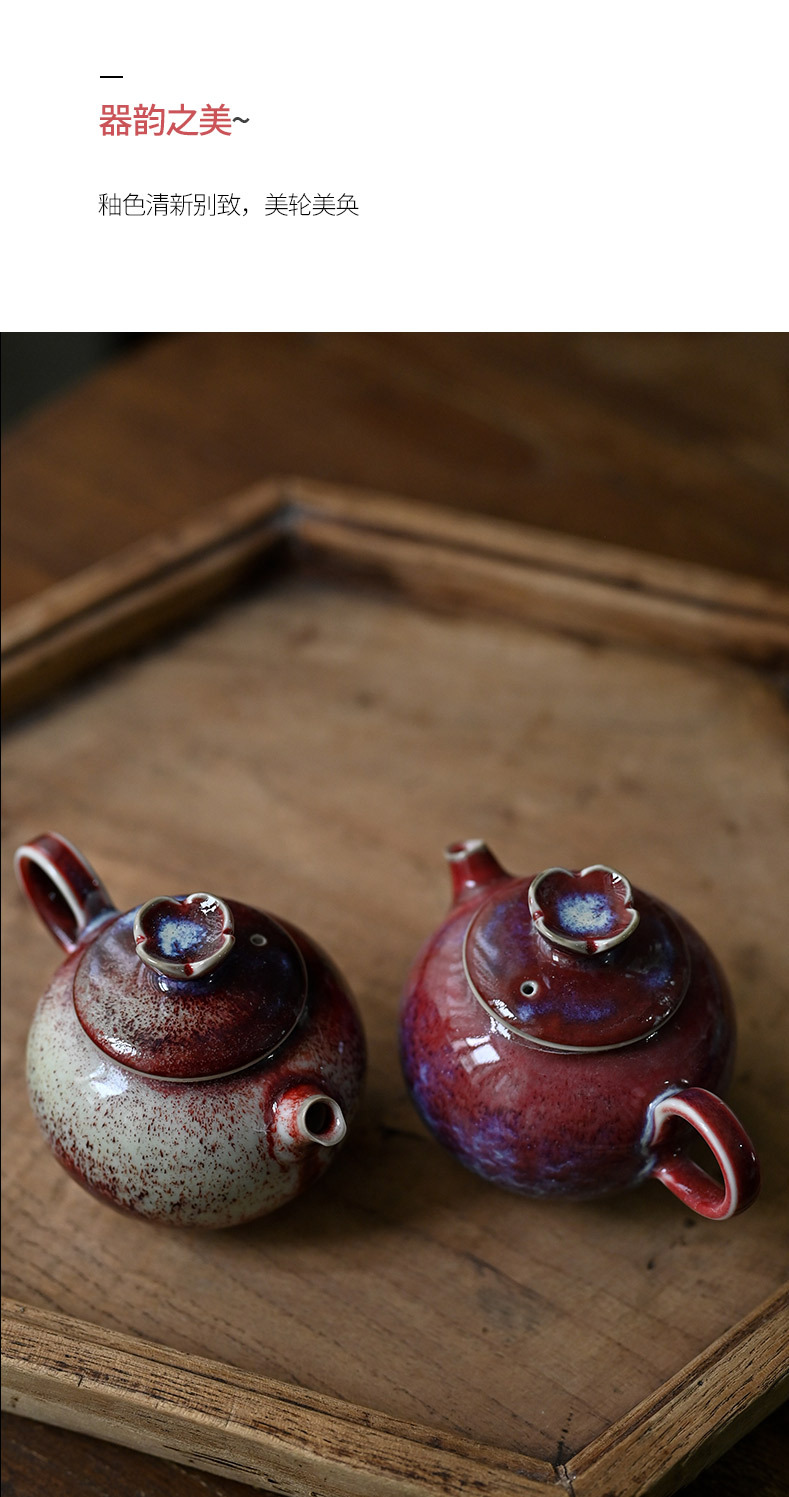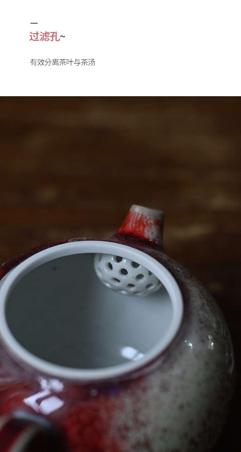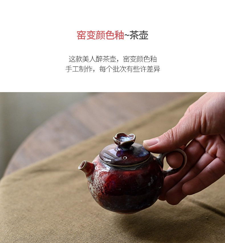 「景德镇手工钧瓷小茶壶」美人醉高温窑变釉球孔茶壶 家用小号白瓷泡茶壶