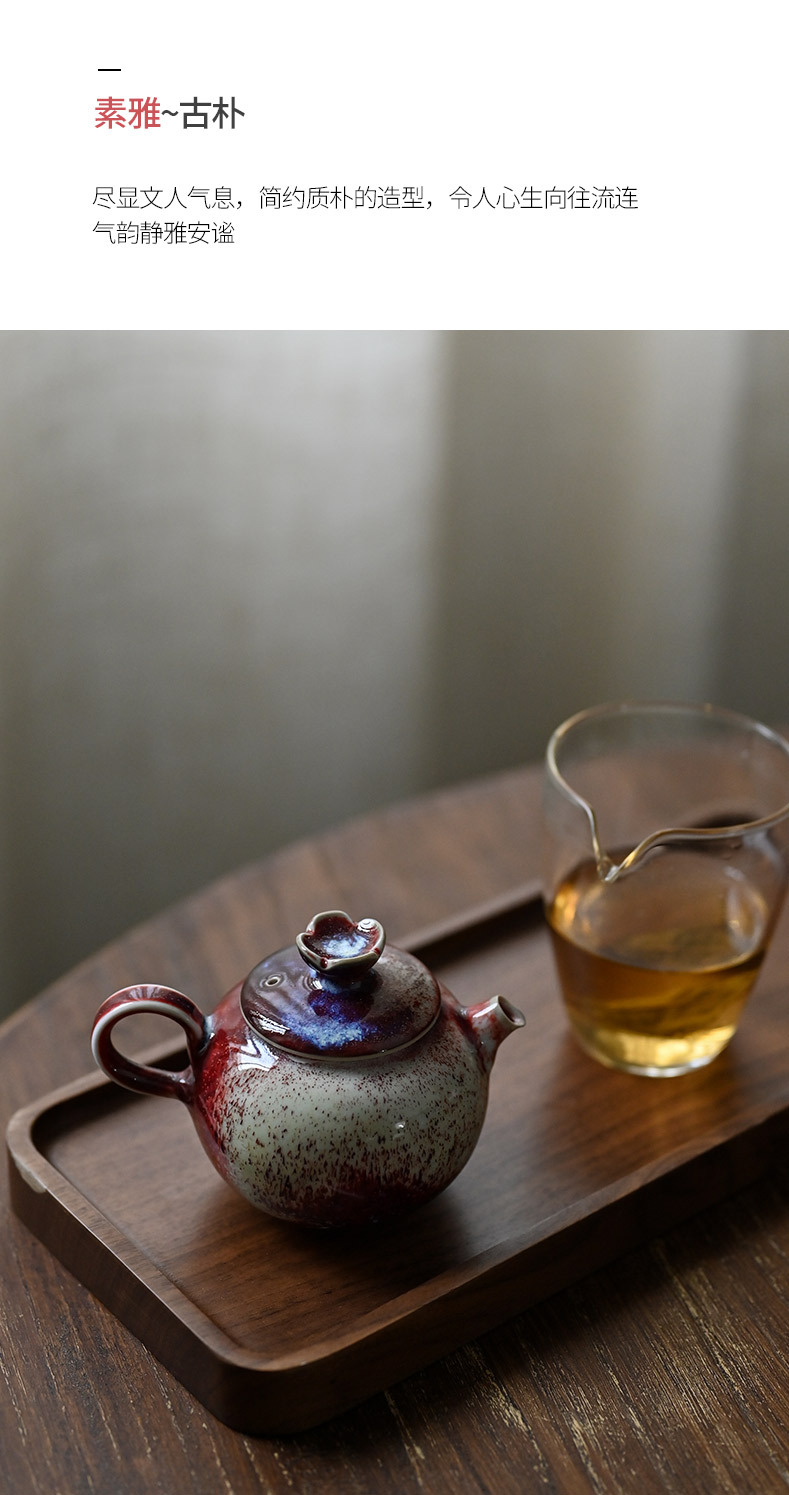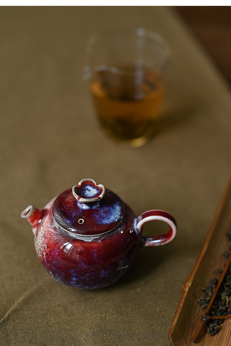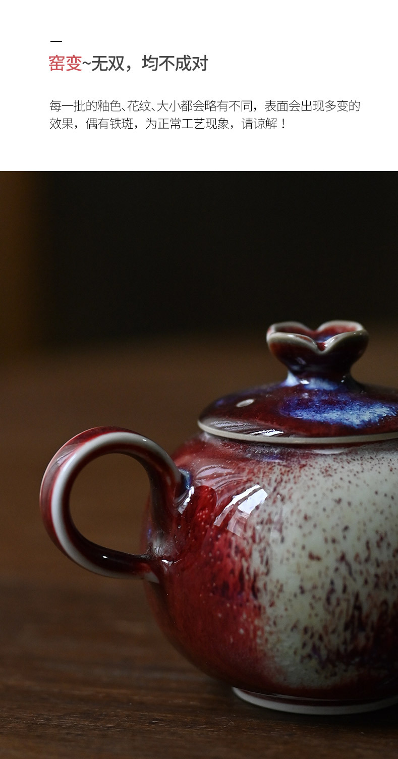 「景德镇手工钧瓷小茶壶」美人醉高温窑变釉球孔茶壶 家用小号白瓷泡茶壶
