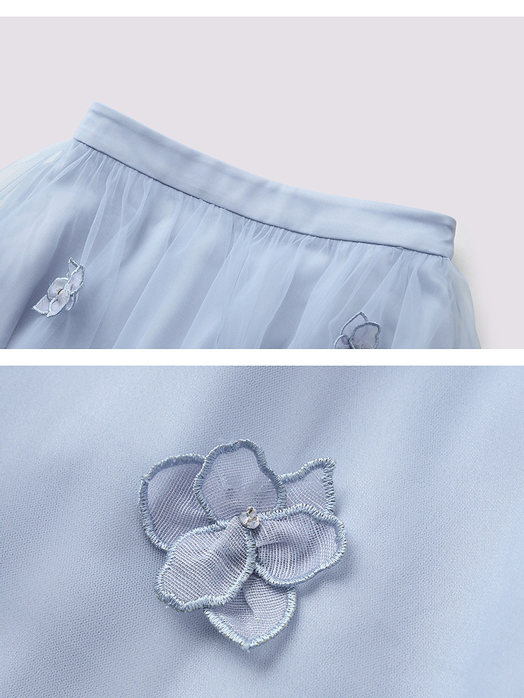 海盐蓝立体花朵半裙立体手工花朵收腰散摆(货号:MF86SK004B0001)