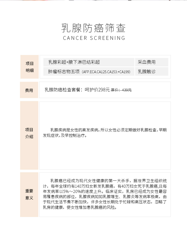 乳腺防癌筛查套餐